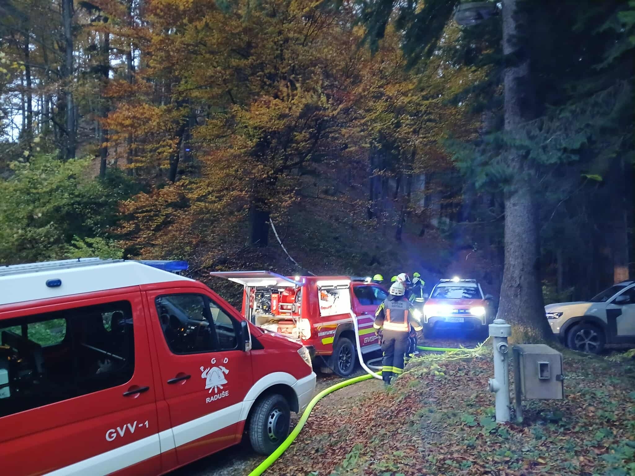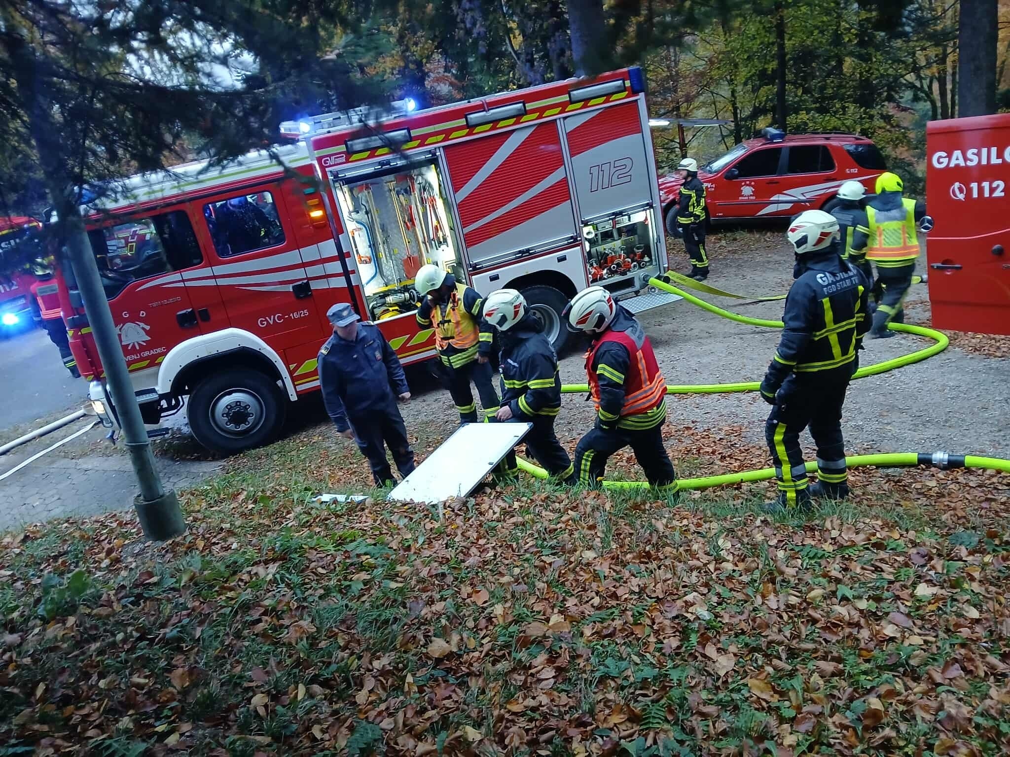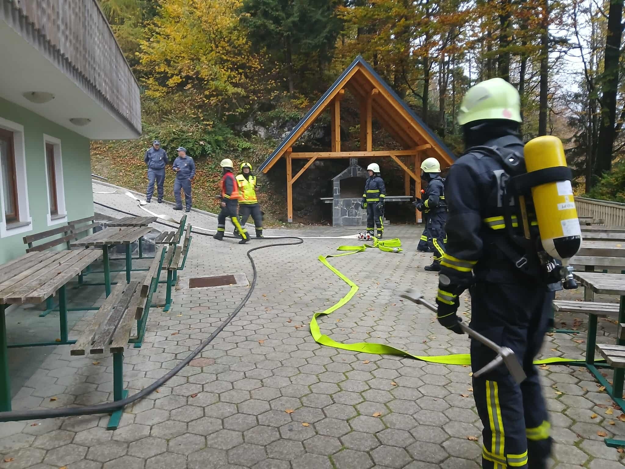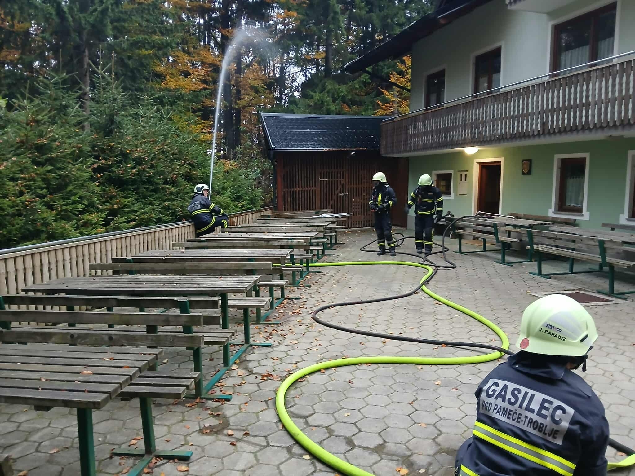 V okviru požarnega meseca oktobra je Prostovoljno gasilsko društvo Pameče-Troblje včeraj organiziralo vajo spodnjega sektorja pri lovski koči Gradišče.