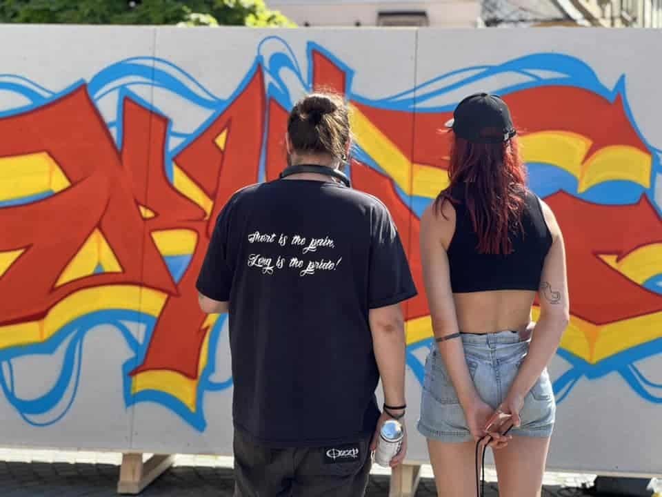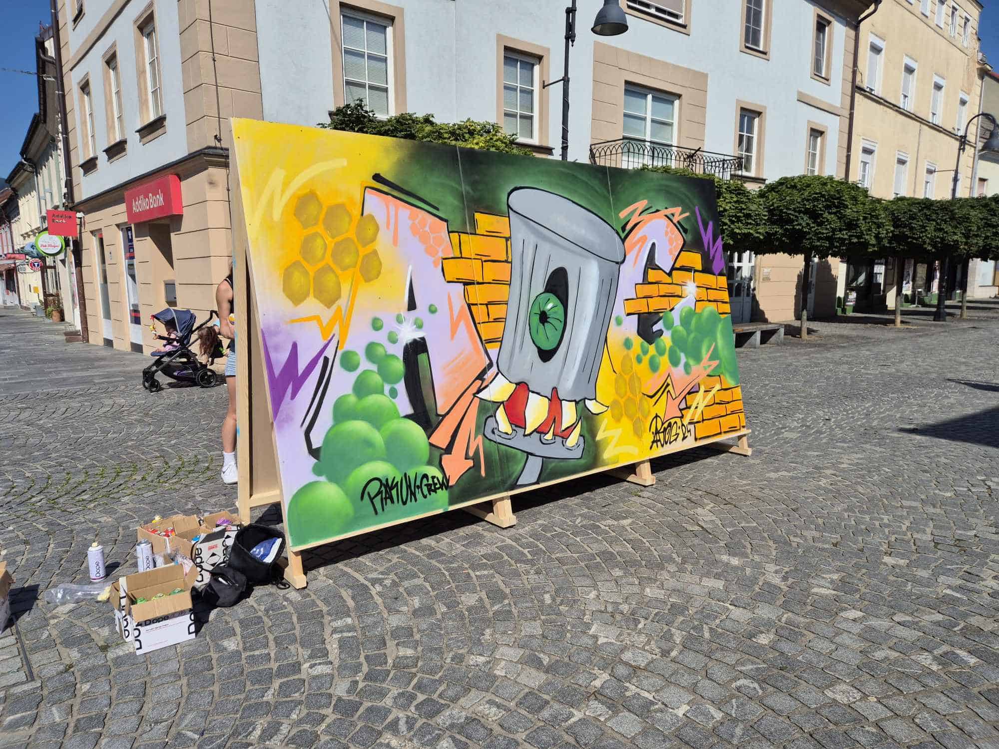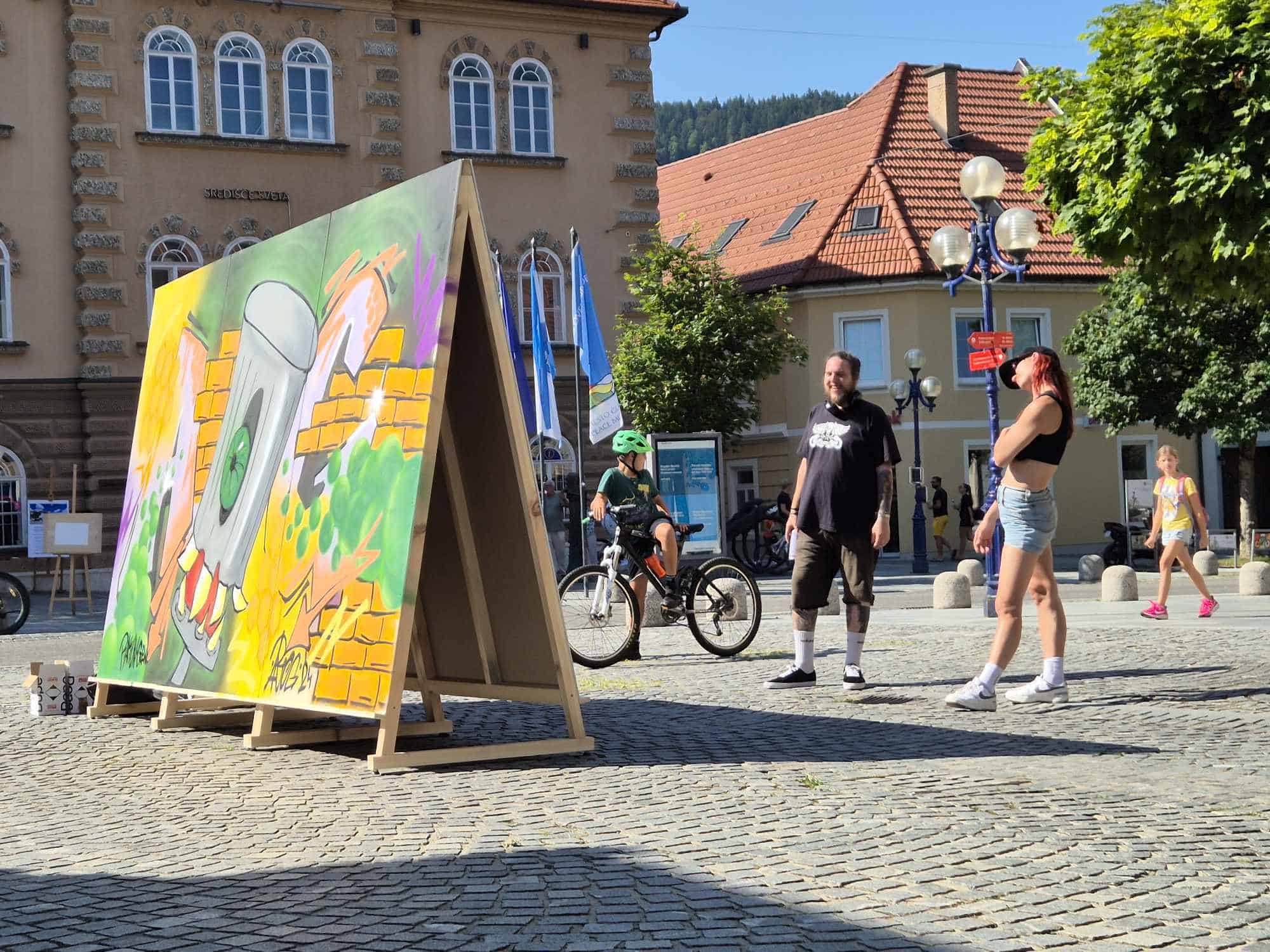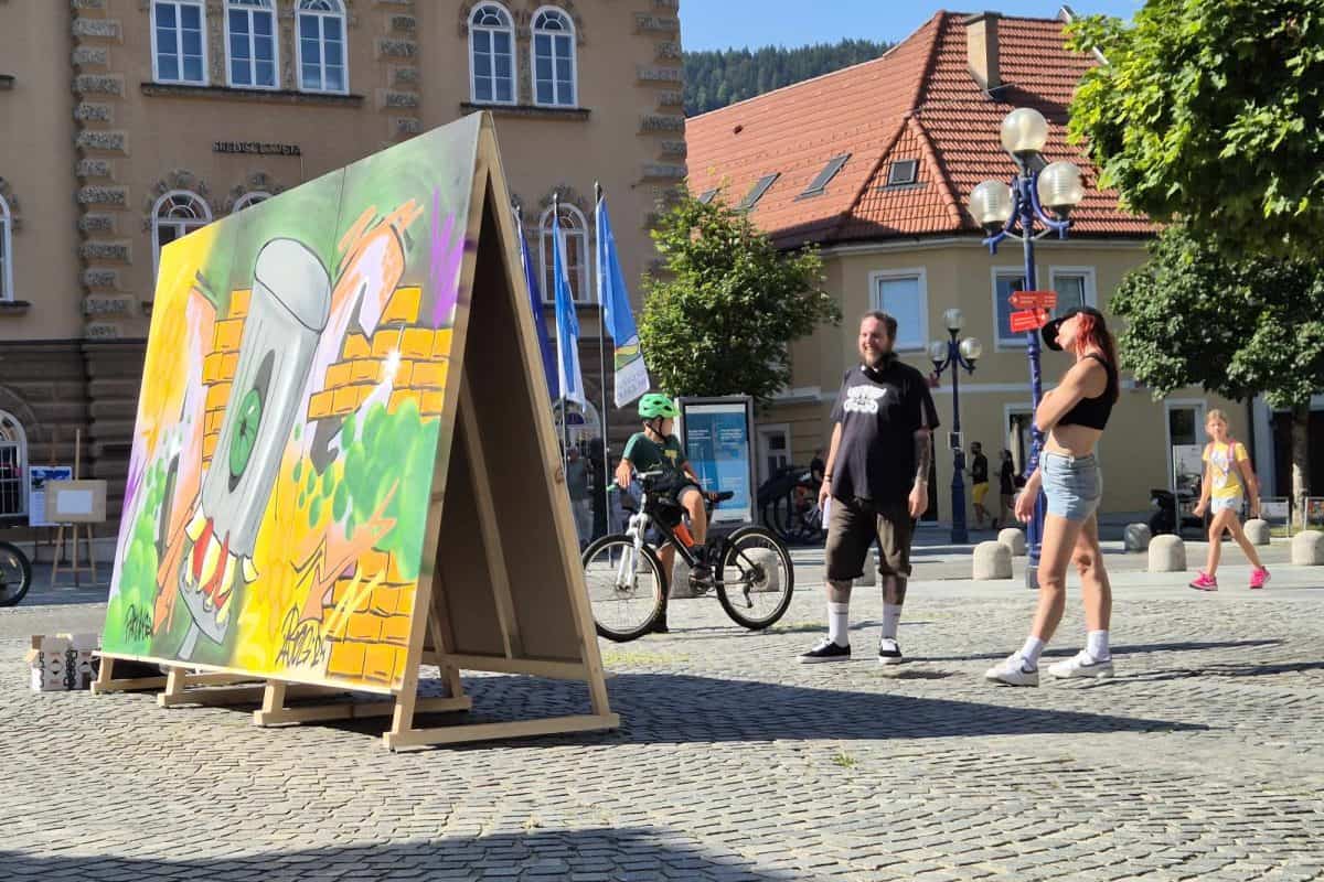 Med sprehodom po mestu so občudovali grafita, ki sta popoldne nastajala pred očmi obiskovalcev, izpod rok Aljaža Roglja in Tilna Časarja, ljubiteljskih umetnikov iz Ljubljane in Tržiča. Njuna dela so pritegnila številne obiskovalce, ki so uživali v procesu ustvarjanja in se navduševali nad končnim rezultatom.