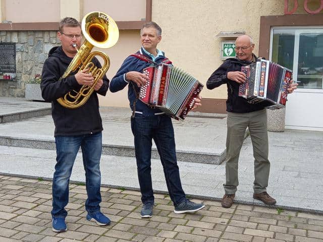 Odprto vajo so izvedli pred Domom borcev v Šentjanžu in s tem pomagali pri promociji ljubiteljske kulture.