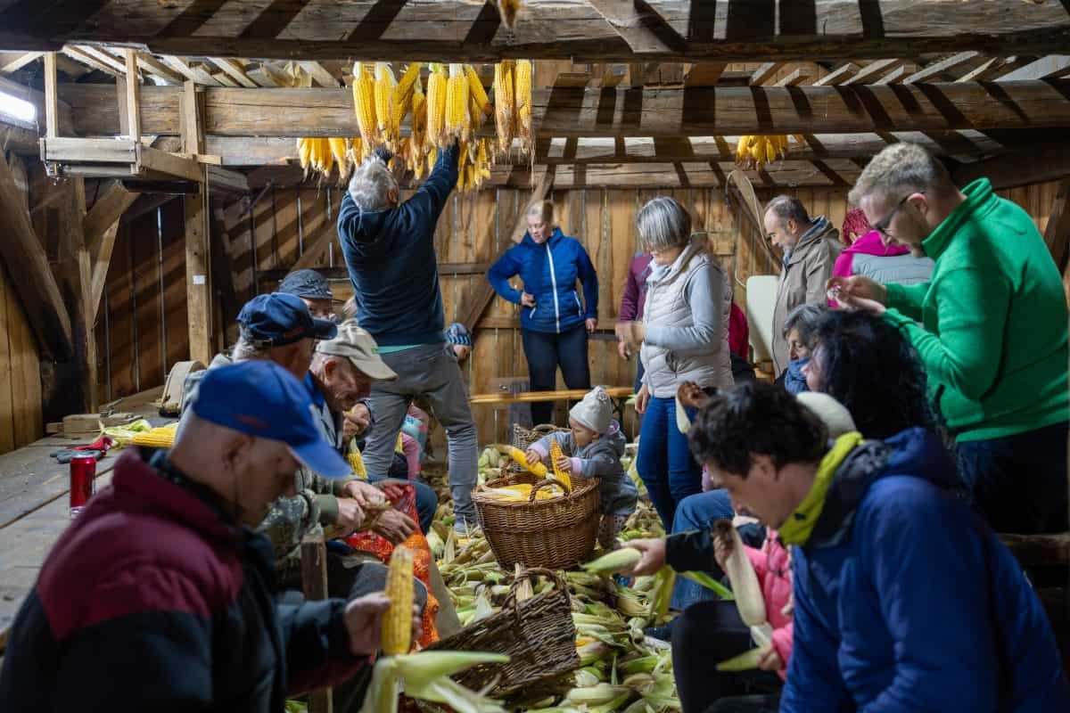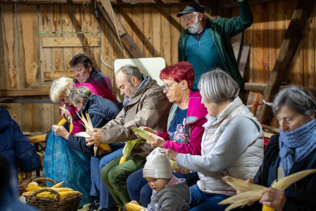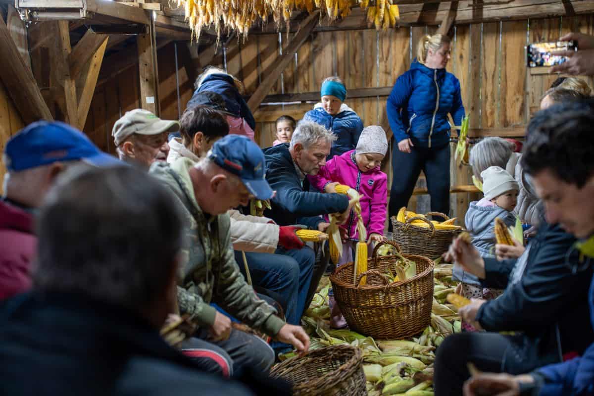 Vzdušje je kljub hladnemu vremenu imelo veder pridih in v obiskovalcih zbudilo nemalo sentimentalnosti in spominov na preteklost. Ob vonju pečenih kostanjev in zvokih šumenja listja, je velik kup koruze vztrajno kopnel, na koncu pa so se "kožuharji" dobre volje poslovili, vse do naslednjega leta.