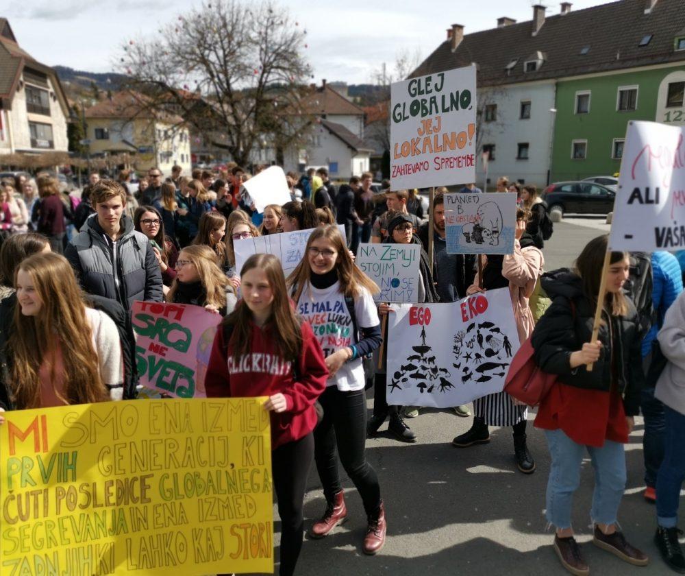 Danes, 15. 3. 2019, ob 11.55, so se mladi po vsem svetu odpravili na proteste, na katerih so od pristojnih zahtevali konkretna dejanja proti segrevanju planeta. Podnebni shodi so potekali v več kot 1650 mestih v več kot 100 državah. Mladi so se na protestni štrajk odpravili tudi v več slovenskih krajih, med drugim tudi na Ravnah na Koroškem. Dijaki Srednje šole Slovenj Gradec in Muta pa so sporočili svoje mnenje in podali zahteve za zmanjševanje podnebnih sprememb tudi preko šolskega Facebook profila.