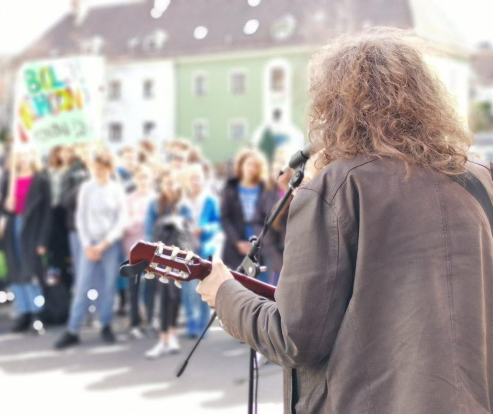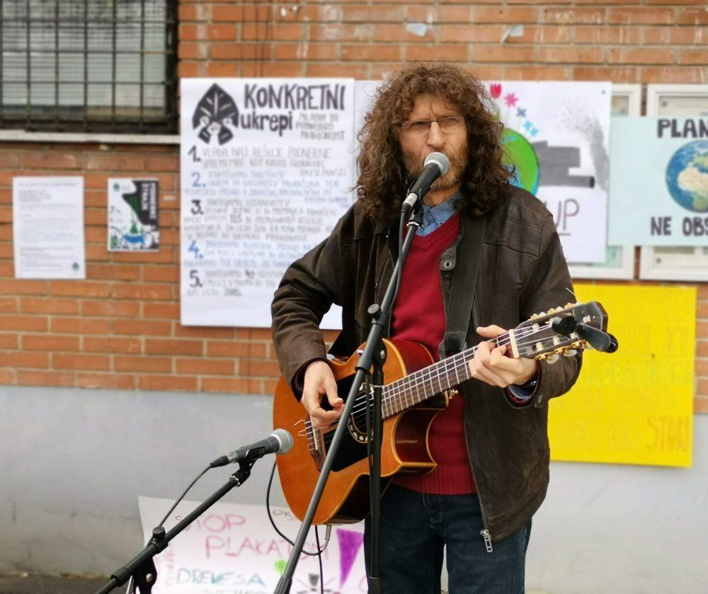 Na Ravnah so se pet pred dvanajsto zbrali mladi in mladi po srcu, ki so s transparenti opozarjali vodilne na sprejetje podnebnih ukrepov. Protestnikom se je na mestnem platoju pred Tušem s kitaro pridružil Adi Smolar, med govorniki pa je bil tudi profesor in mentor dijaške skupnosti ravenske gimnazije Matjaž Burjak.