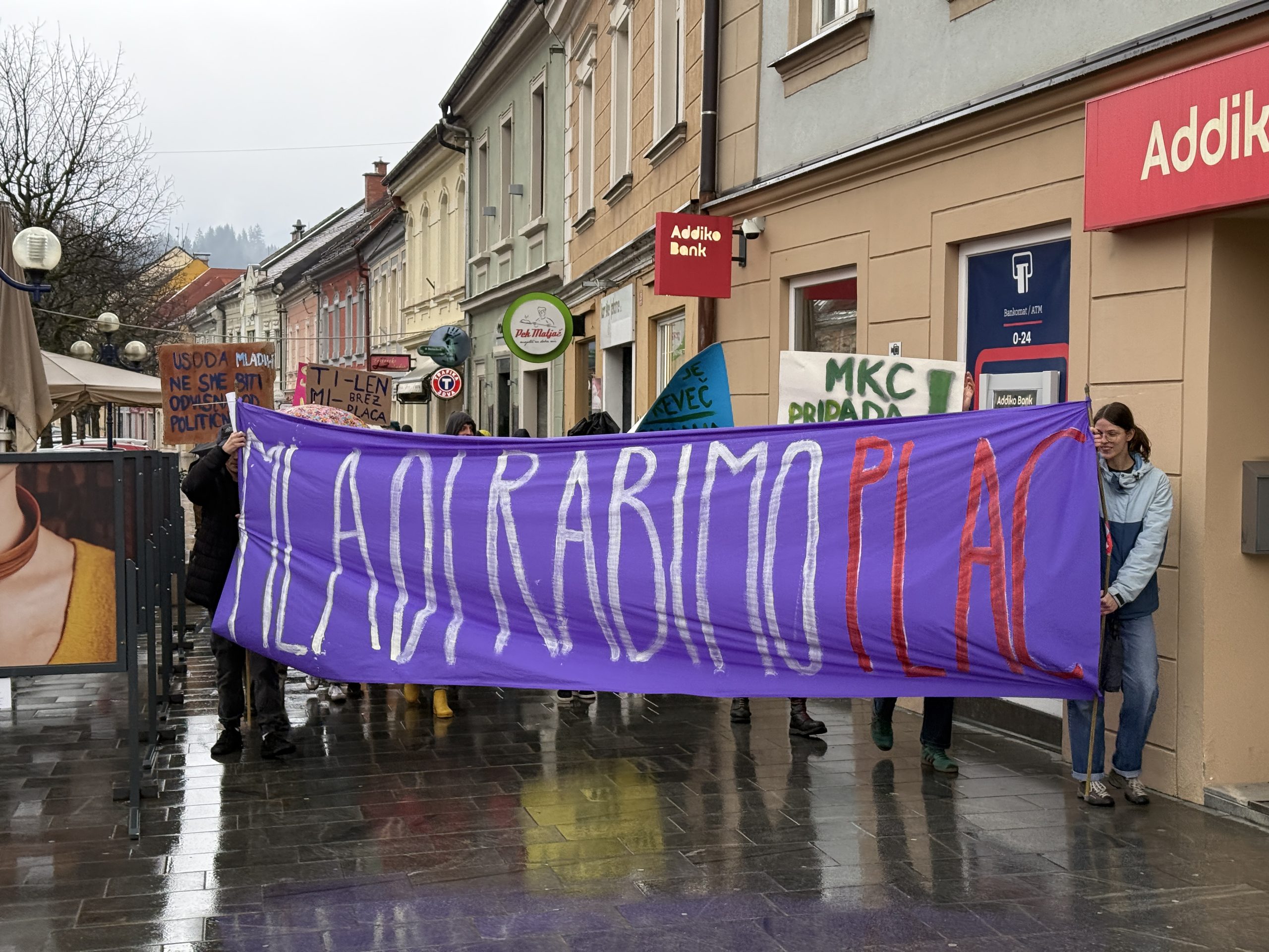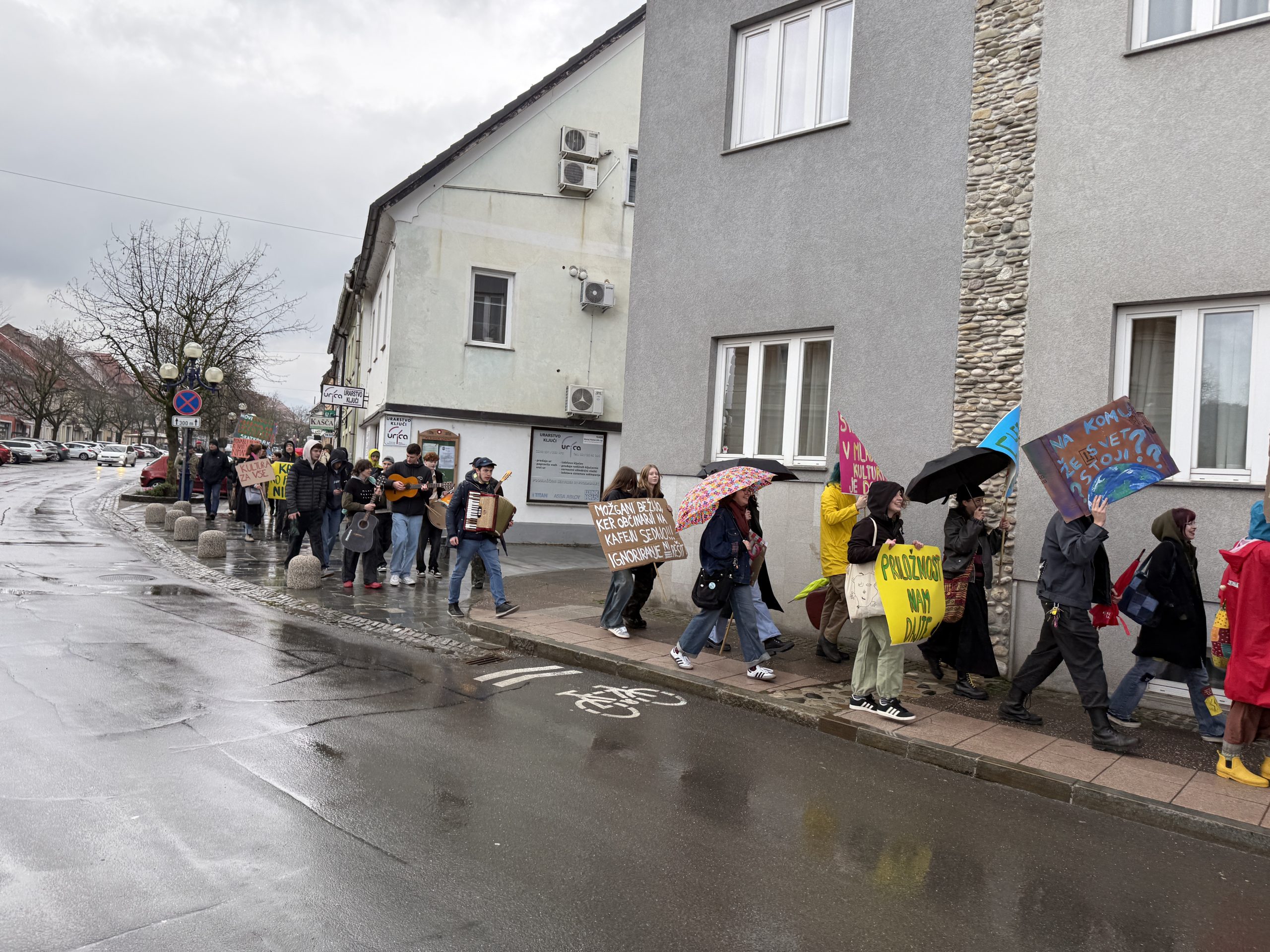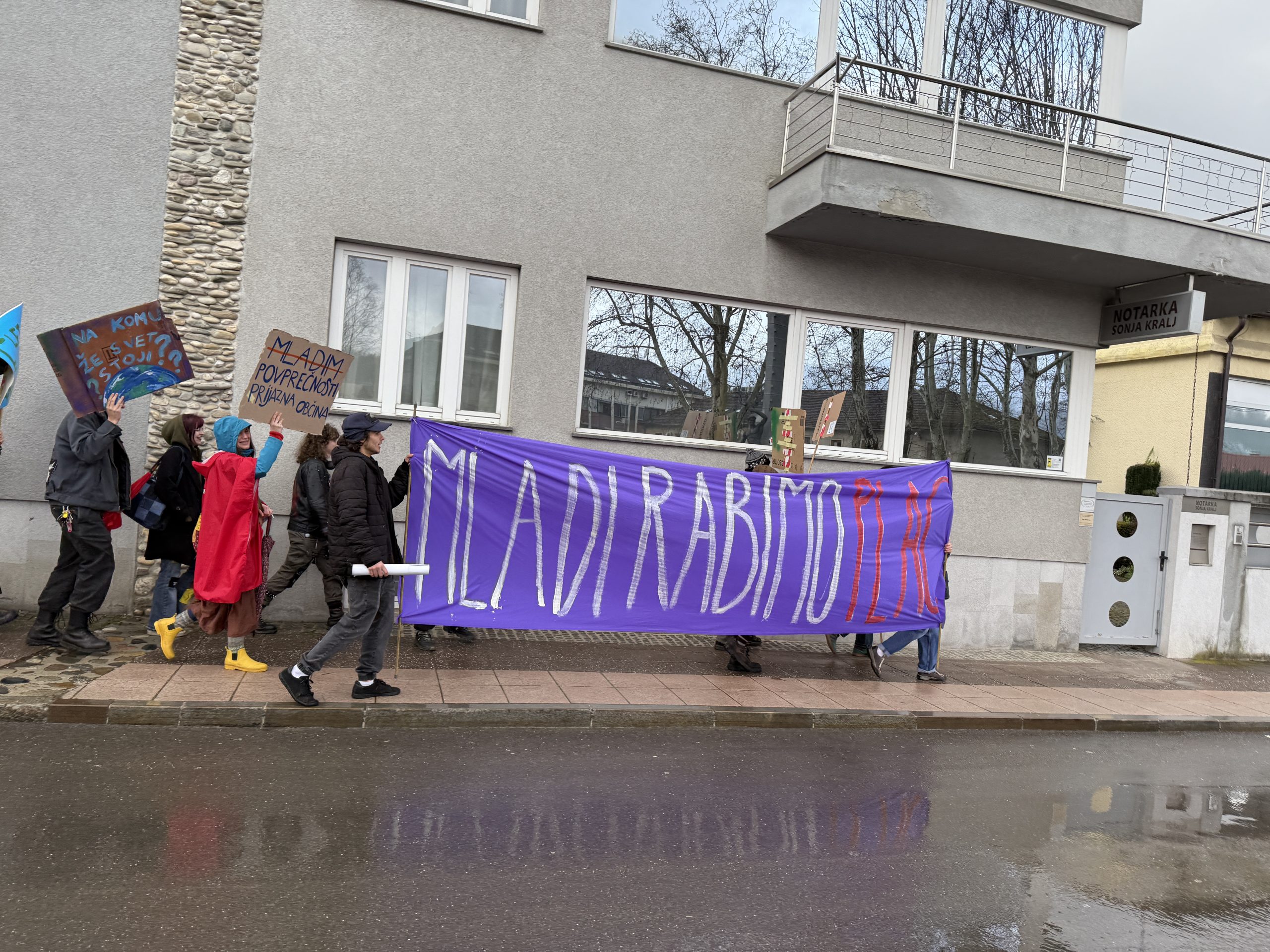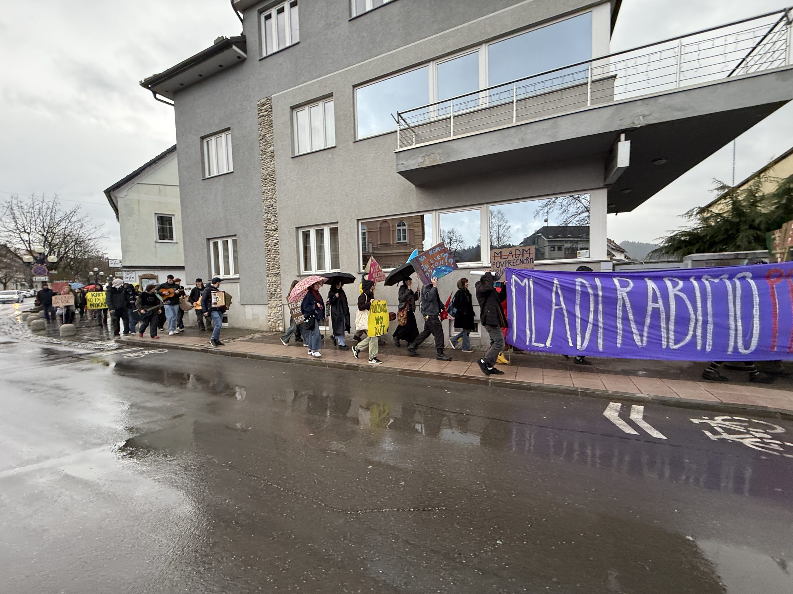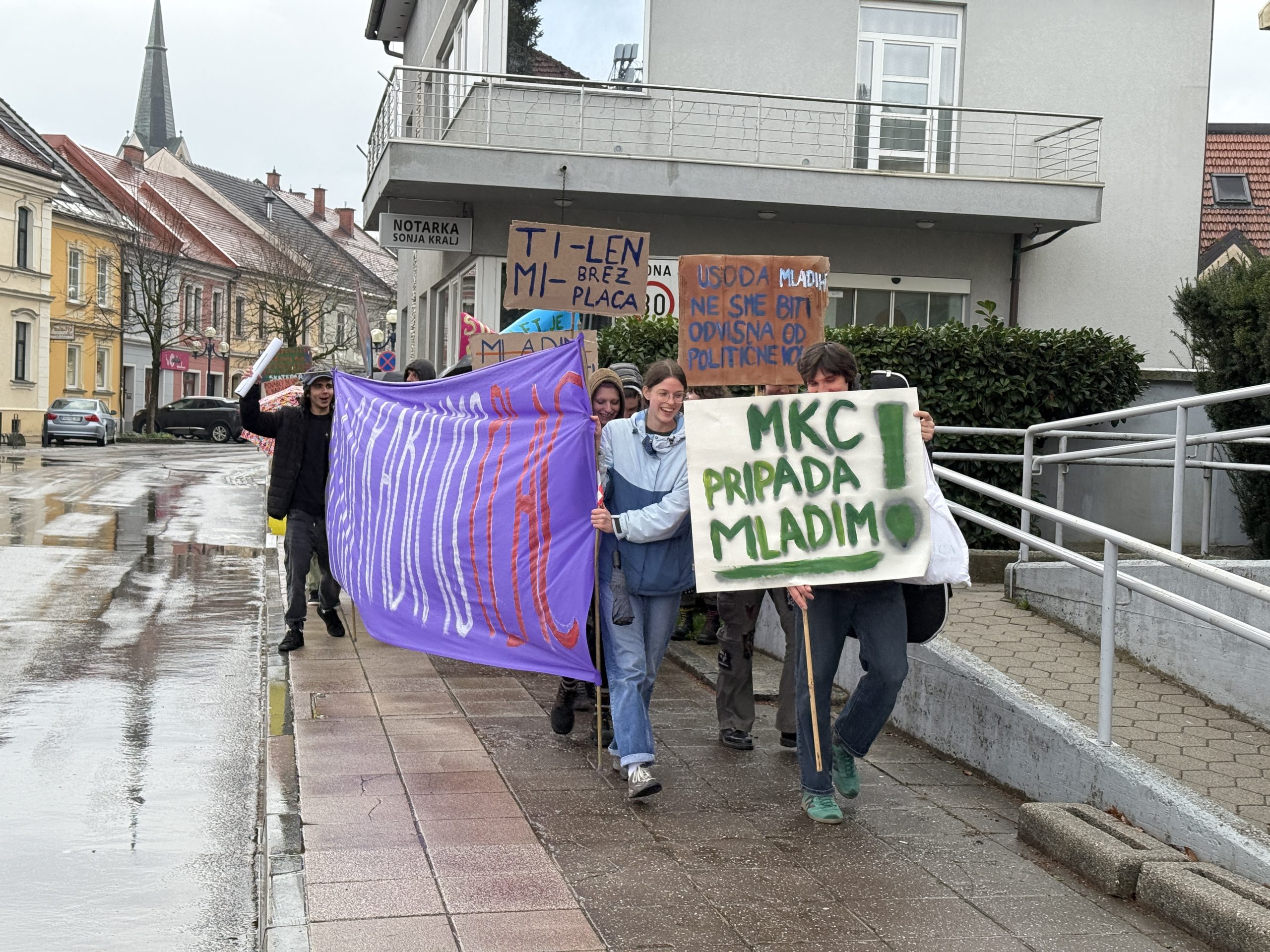 Mladi v Slovenj Gradcu so danes ob 15. uri organizirali protest, s katerim želijo opozoriti na dolga leta čakanja na prostor za druženje in ustvarjanje. Zbor je bil na parkirišču pred staro komunalo, od koder je množica protestnikov krenila skozi mestno jedro do občinske stavbe in zaključila na Glavnem trgu.