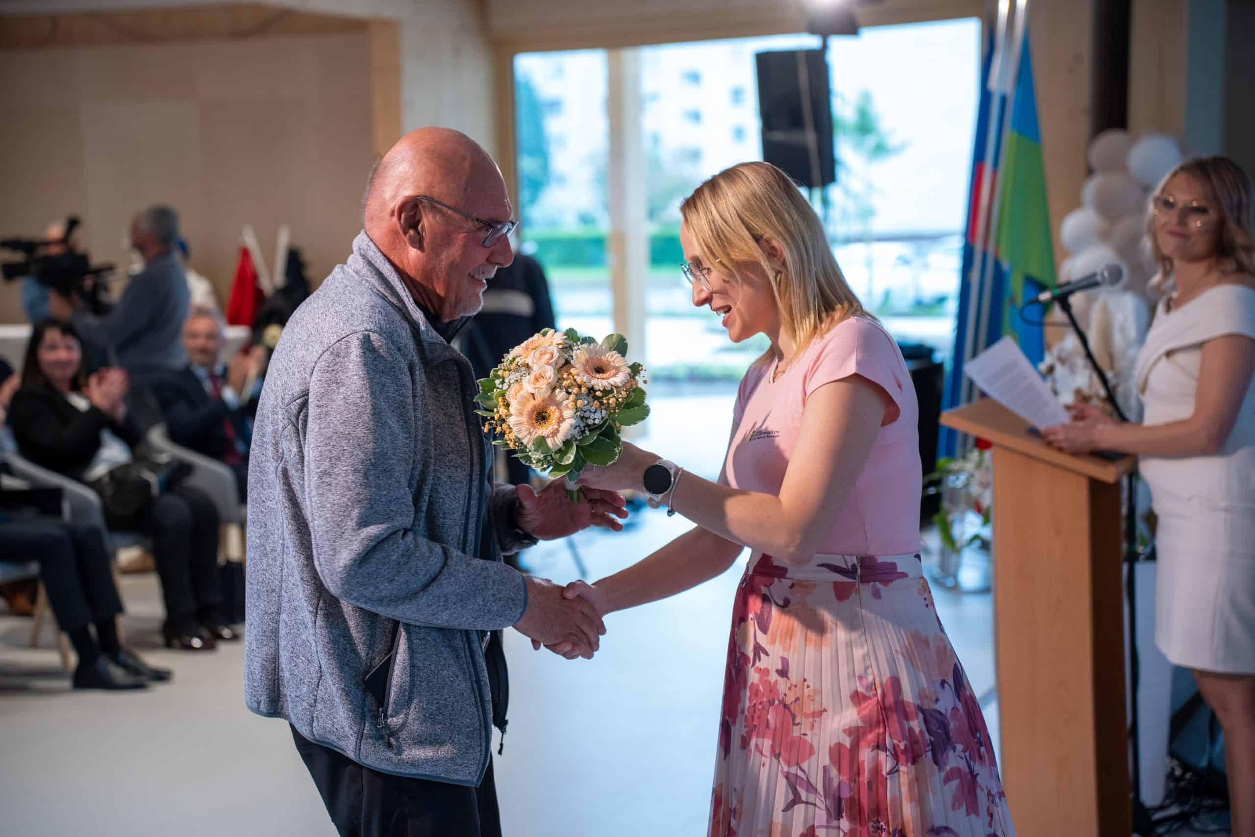 Ob slavnostnem dogodku so spregovorili: župan Občine Ravne na Koroškem dr. Tomaž Rožen, minister za kohezijo in regionalni razvoj Aleksander Jevšek, arhitektka Maruša Zorec ter vodja KO-RA centra Maja Pučelj Brunec. Kot osrednja govornica dogodka je navzoče nagovorila direktorica Koroškega doma starostnikov Katja Pavlinič Šoba. Med drugimi so bili na dogodku prisotni tudi poslanec državnega zbora RS Janez Cigler Kralj; poslanka Alenka Helb ter Klemen Jerinc, vodja Sektorja za upravljanje izvajalskih organizacij, Direktorat za starejše, dolgotrajno oskrbo in deinstitucionalizacijo.