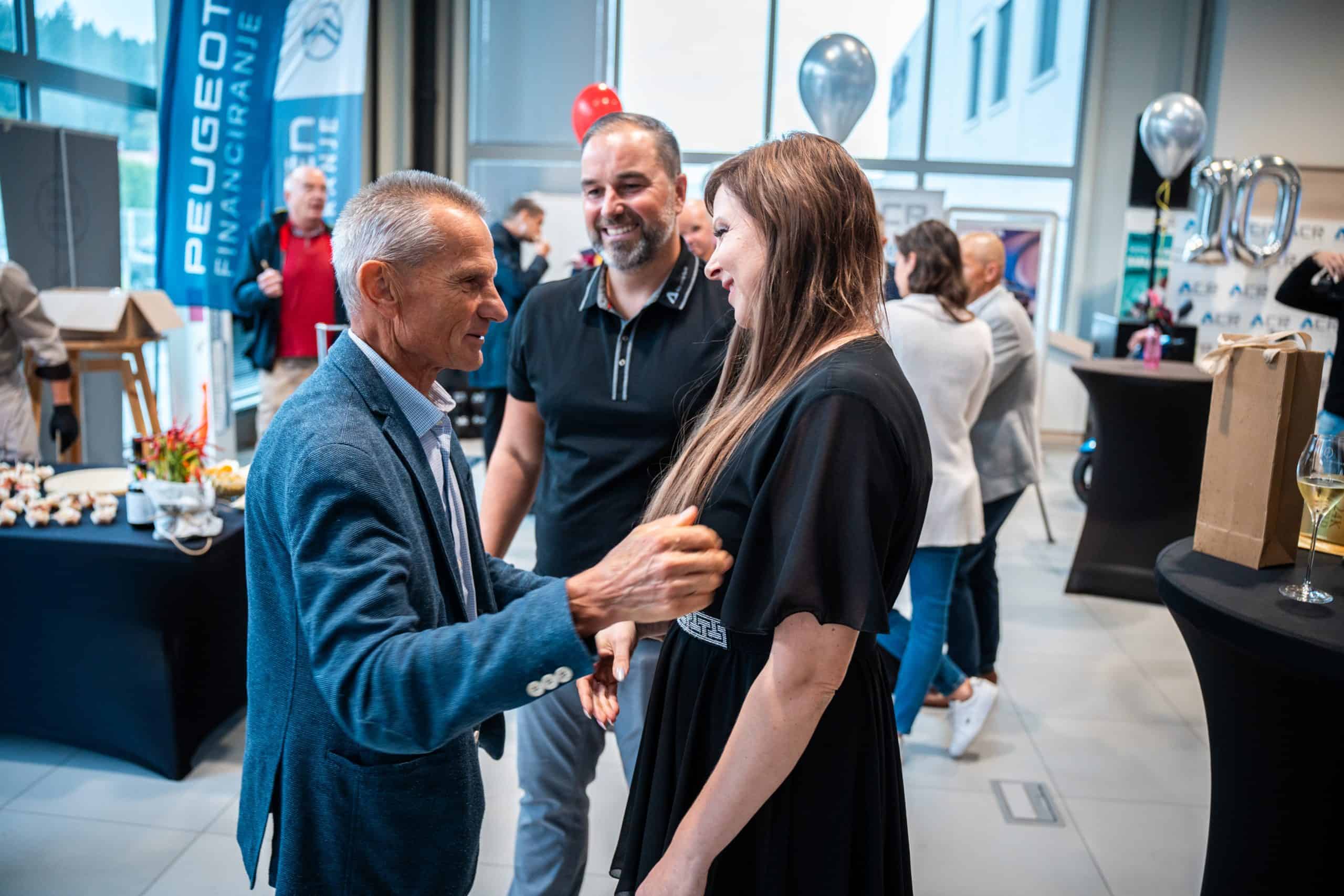 Posebej je izpostavil: »Minilo je 10 let odkar se je pojavila možnost, da na Ravnah oziroma na Koroškem odprem podjetje in z veliko poguma in podporo družine, predvsem žene Tatjane in najinih staršev, ter z izkazanim zaupanjem s strani znamke Peugeot, začnem pisati novo poglavje svojega življena. Priznam, ni bilo lahko, a s pravo ekipo, ki je ob meni, in z naraščajočim zaupanjem kupcev, strank in poslovnih partnerjev, smo postali družina. Skupaj rastemo, se podpiramo in izobražujemo. Danes smo podjetje z bogatimi izkušnjami, z jasno vizijo, zagnanostjo in znanjem. In kot taki, uresničenje moje poslovne želje, za kar sem iskreno hvaležen. V prihodnost stopamo na trdnih temeljih izkušenj in še bolj pogumno, saj večamo nabor znamk in pod okrilje zastopstev, poleg znamke Peugeot in Citroen, na novo z velikim veseljem v prihodnosti sprejemamo kakovostni znamki Fiat in Jeep.«