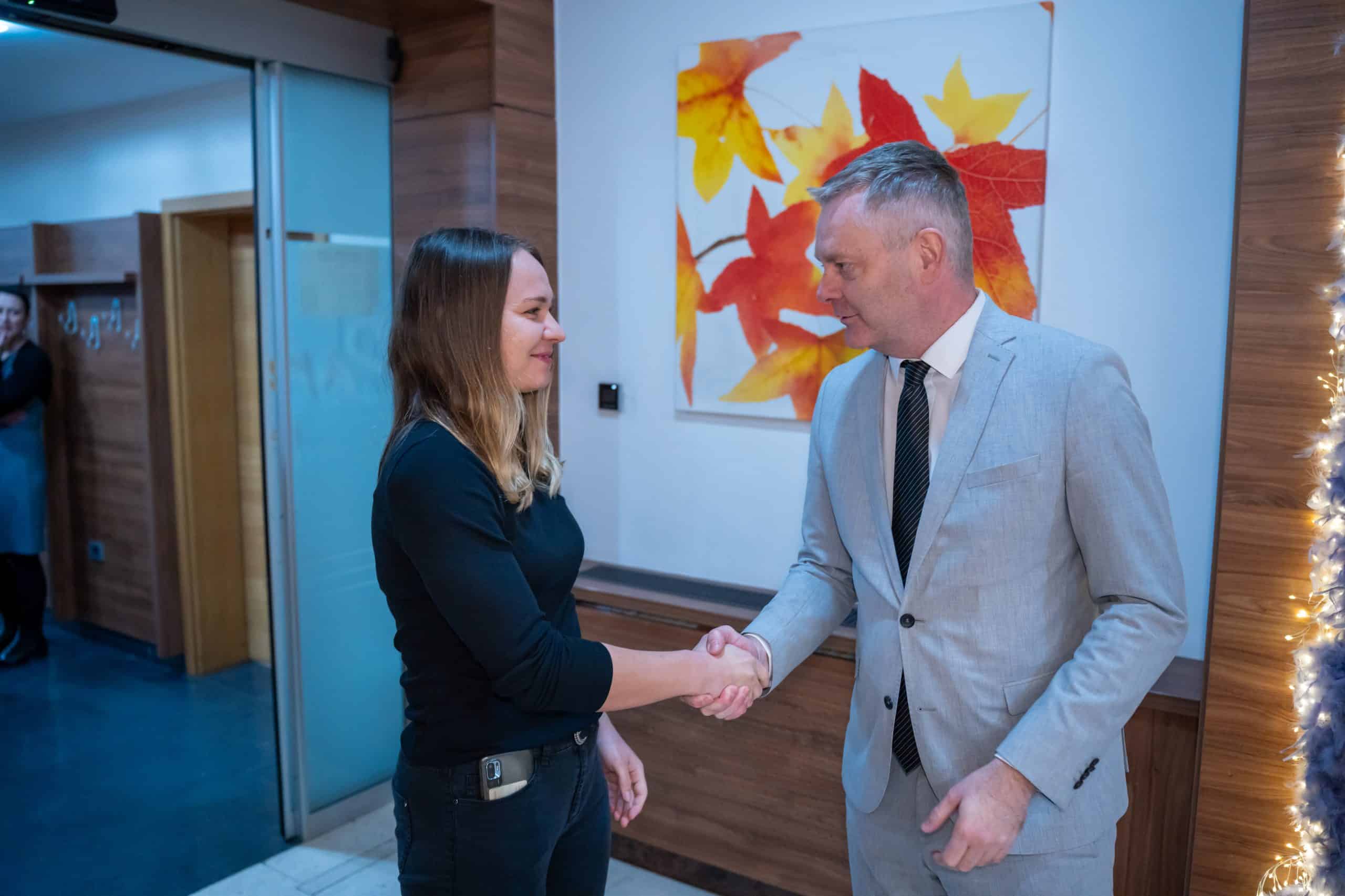 Na sprejemu so bili prisotni seveda sodelavci občinske uprave MO Slovenj Gradec, med njimi tudi direktorica Darja Vrčkovnik. Prav tako sta se ga udeležila podžupan dr. Peter Pungartnik in podžupanja Martina Šisernik.