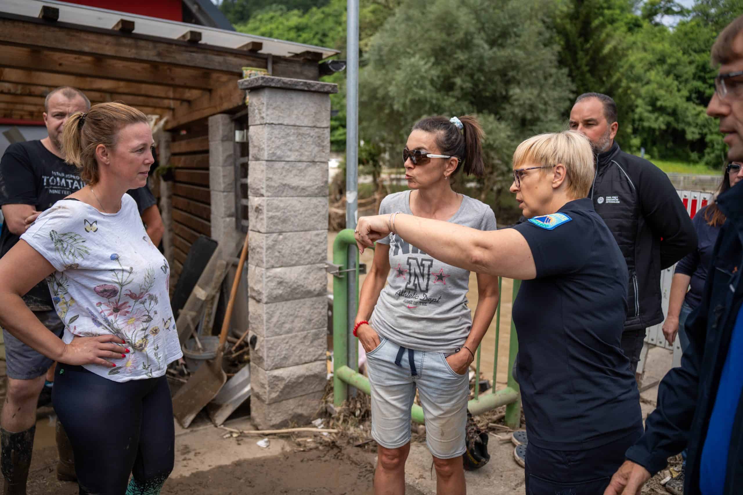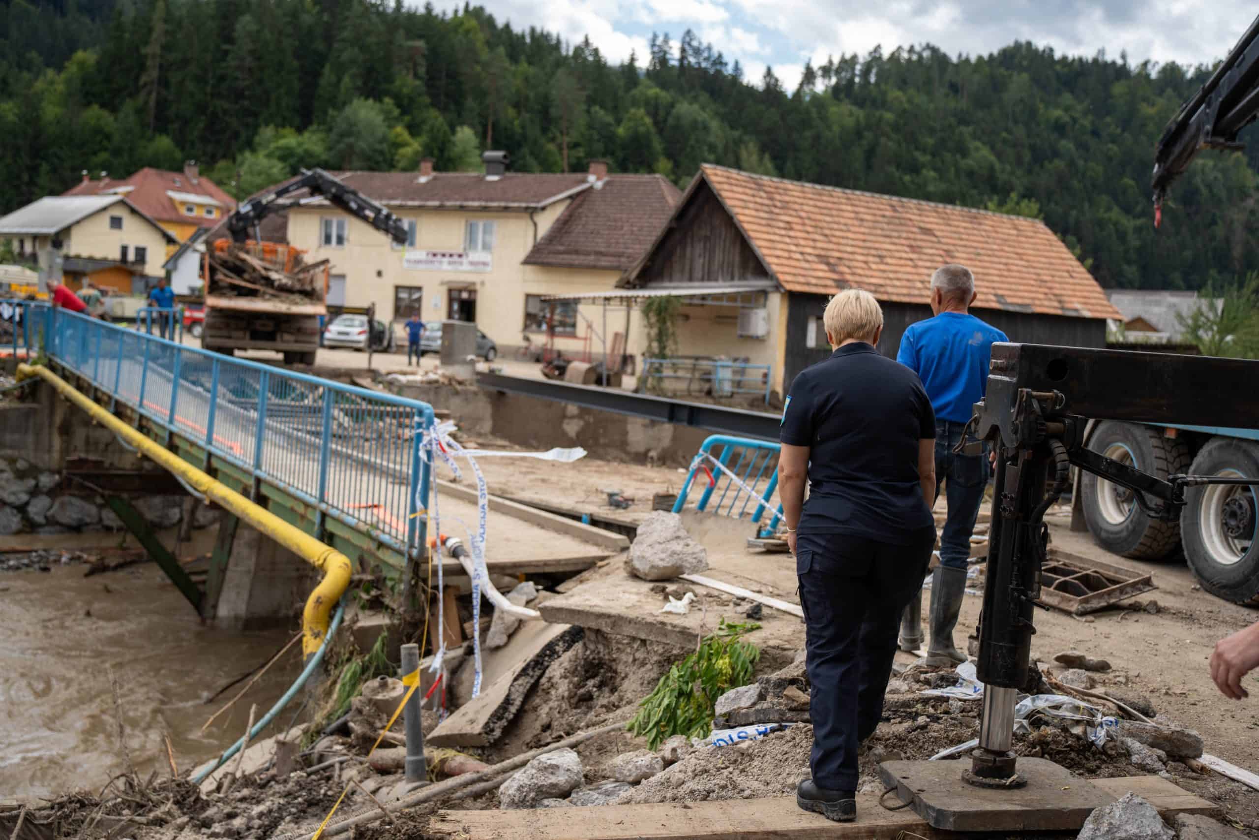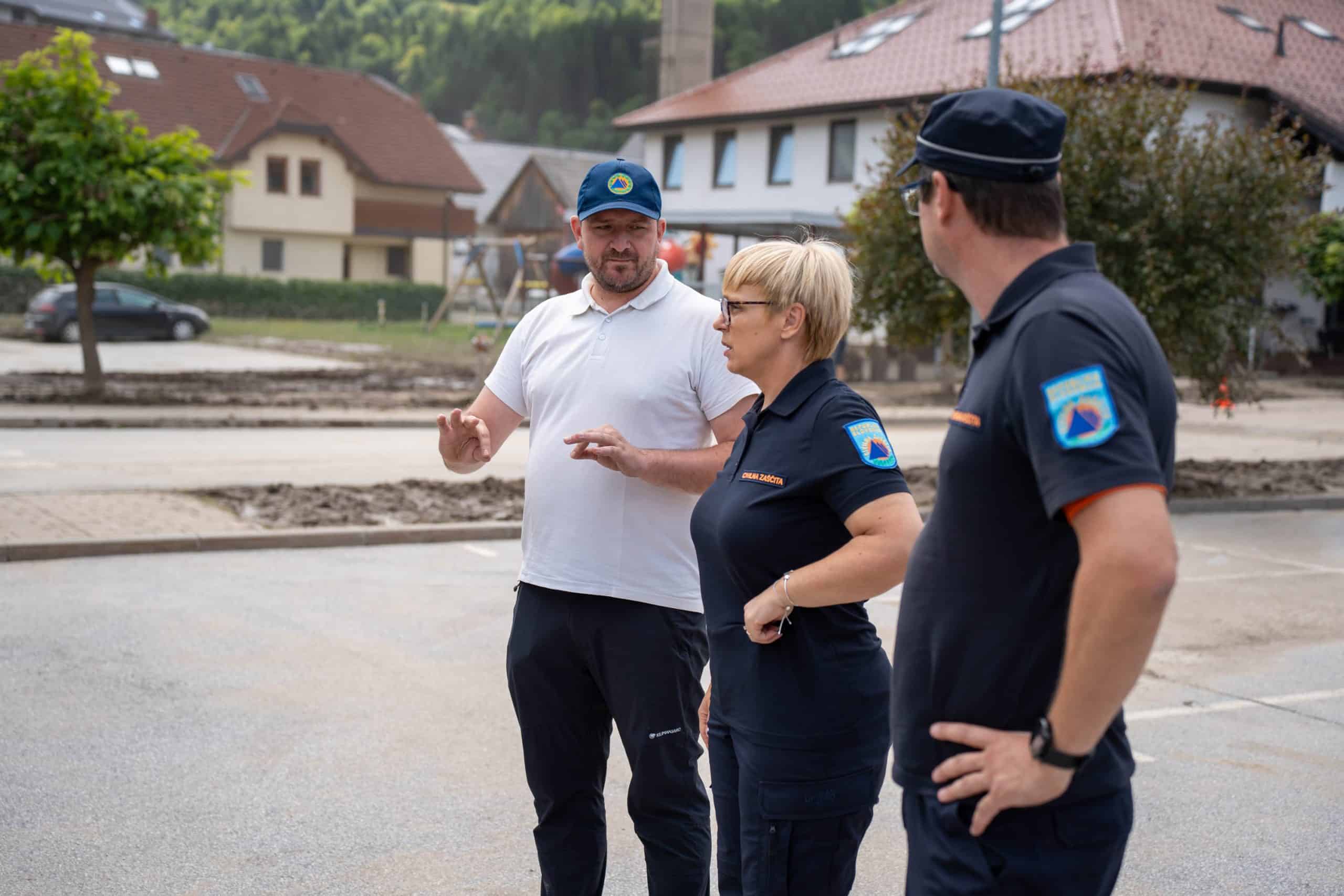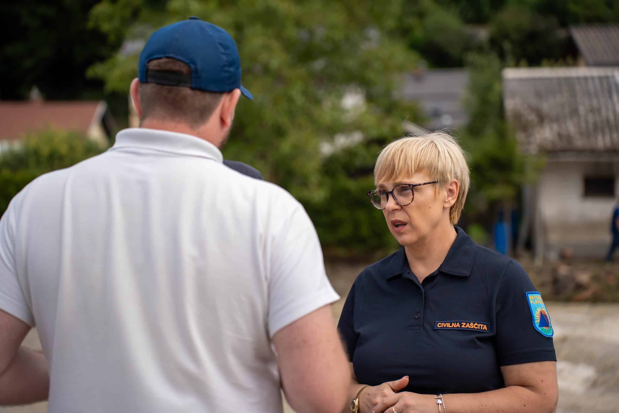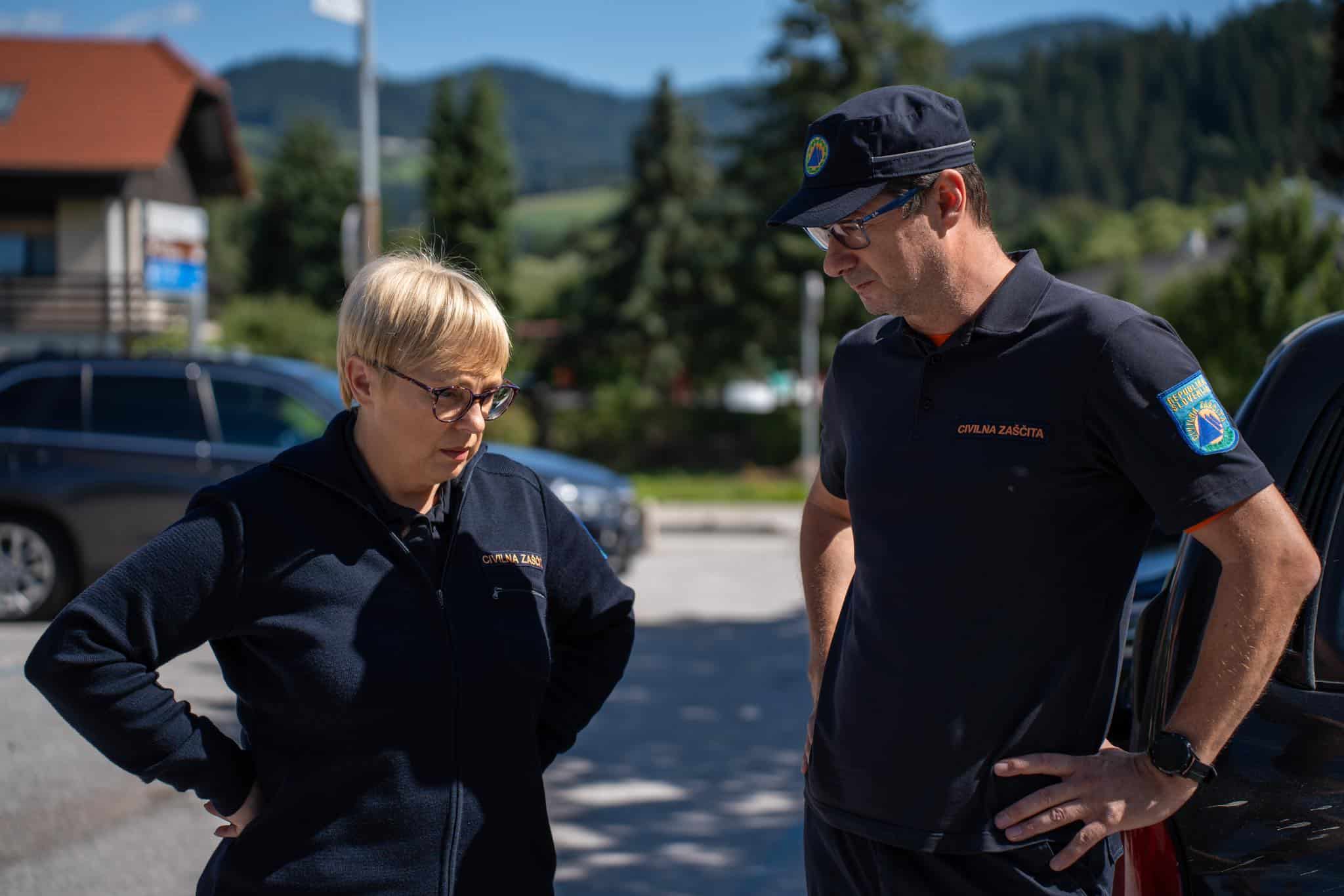 Na Ravnah na Koroškem se je srečala s prebivalkami in prebivalci, predstavniki lokalnih skupnosti, Civilne zaščite in gasilci in si ogledala posledice hudih poplav, ki so močno prizadele našo regijo. V spremstvu župana dr. Tomaža Rožena, podžupana Petra Stočka, poveljnika Branka Kakerja, dela CZ Štaba Občine Ravne je pozdravila tudi mnoge prostovoljce in si ogledala stanje.