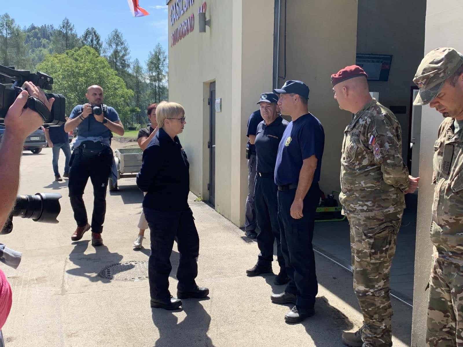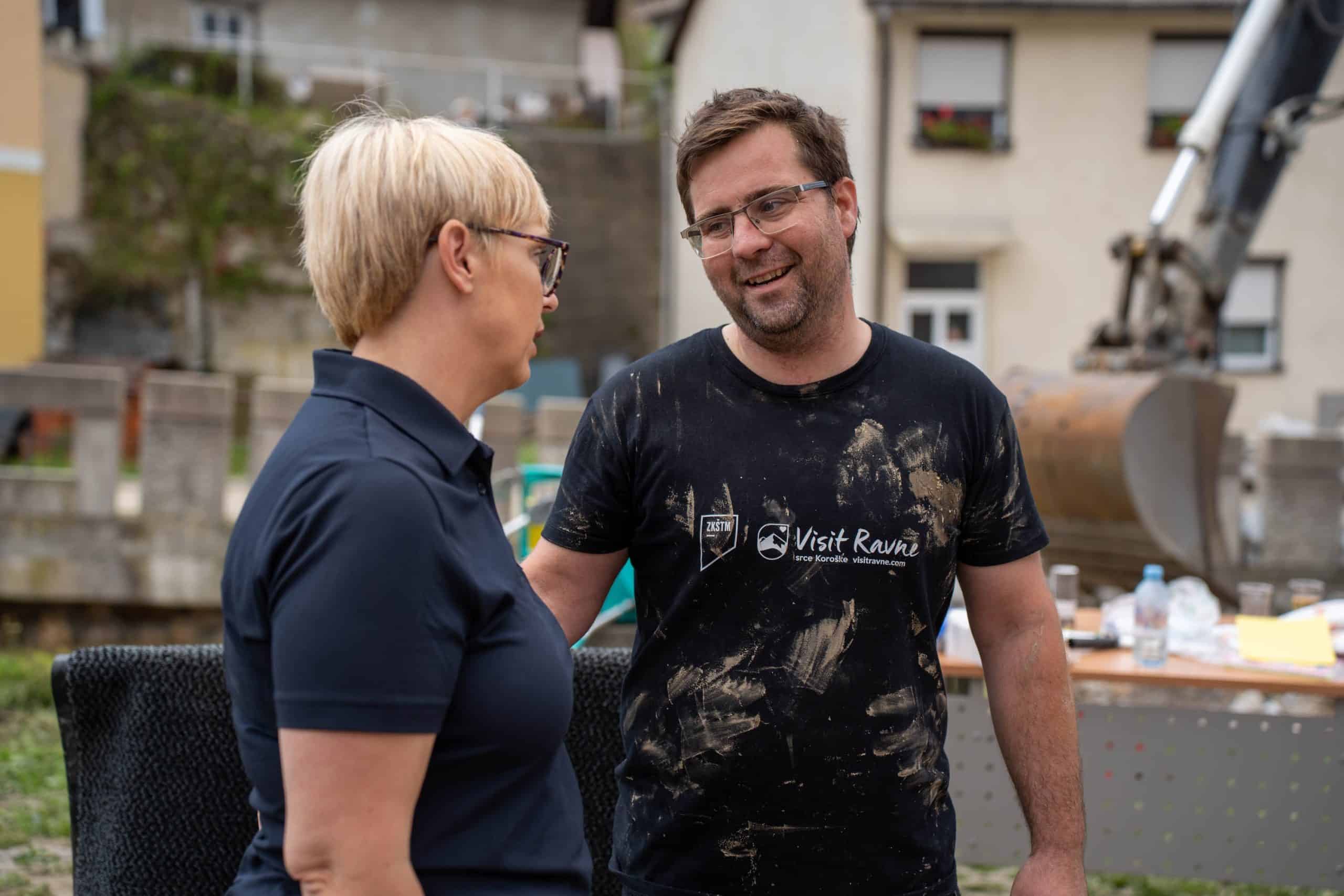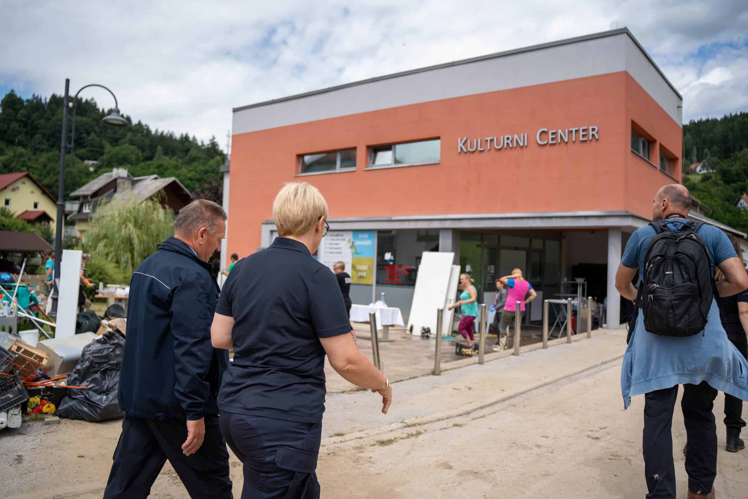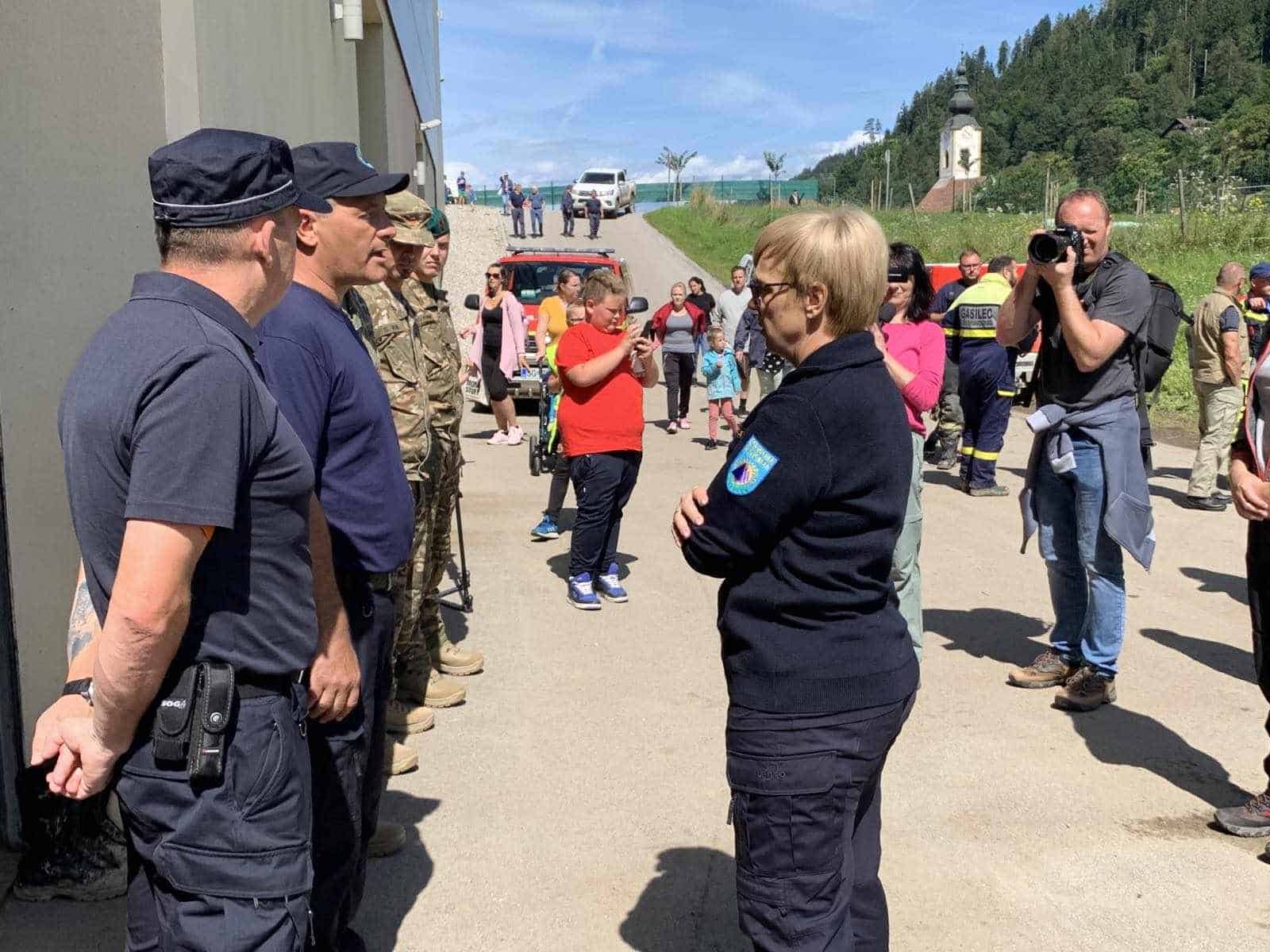 Na Ravnah na Koroškem se je srečala s prebivalkami in prebivalci, predstavniki lokalnih skupnosti, Civilne zaščite in gasilci in si ogledala posledice hudih poplav, ki so močno prizadele našo regijo. V spremstvu župana dr. Tomaža Rožena, podžupana Petra Stočka, poveljnika Branka Kakerja, dela CZ Štaba Občine Ravne je pozdravila tudi mnoge prostovoljce in si ogledala stanje.