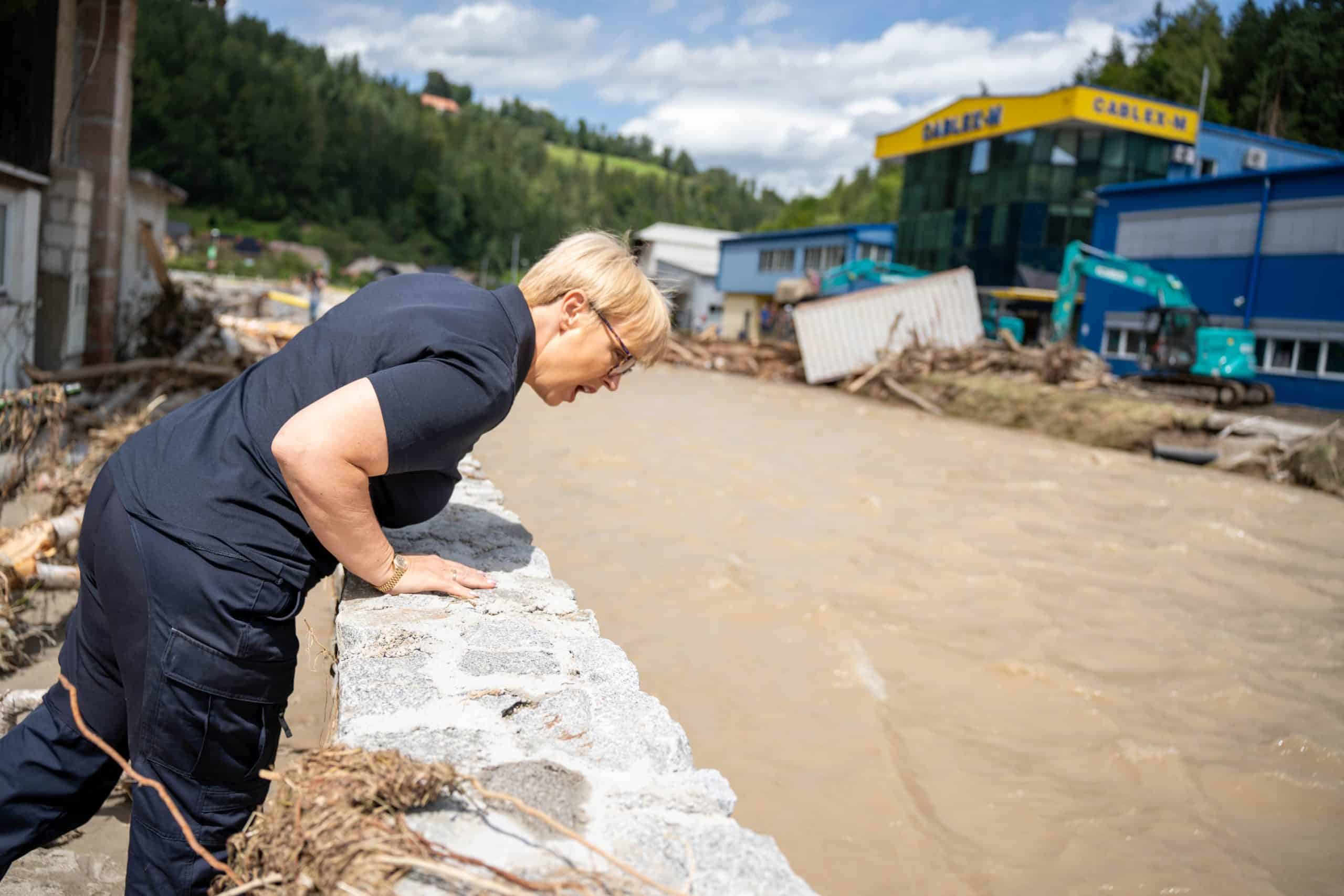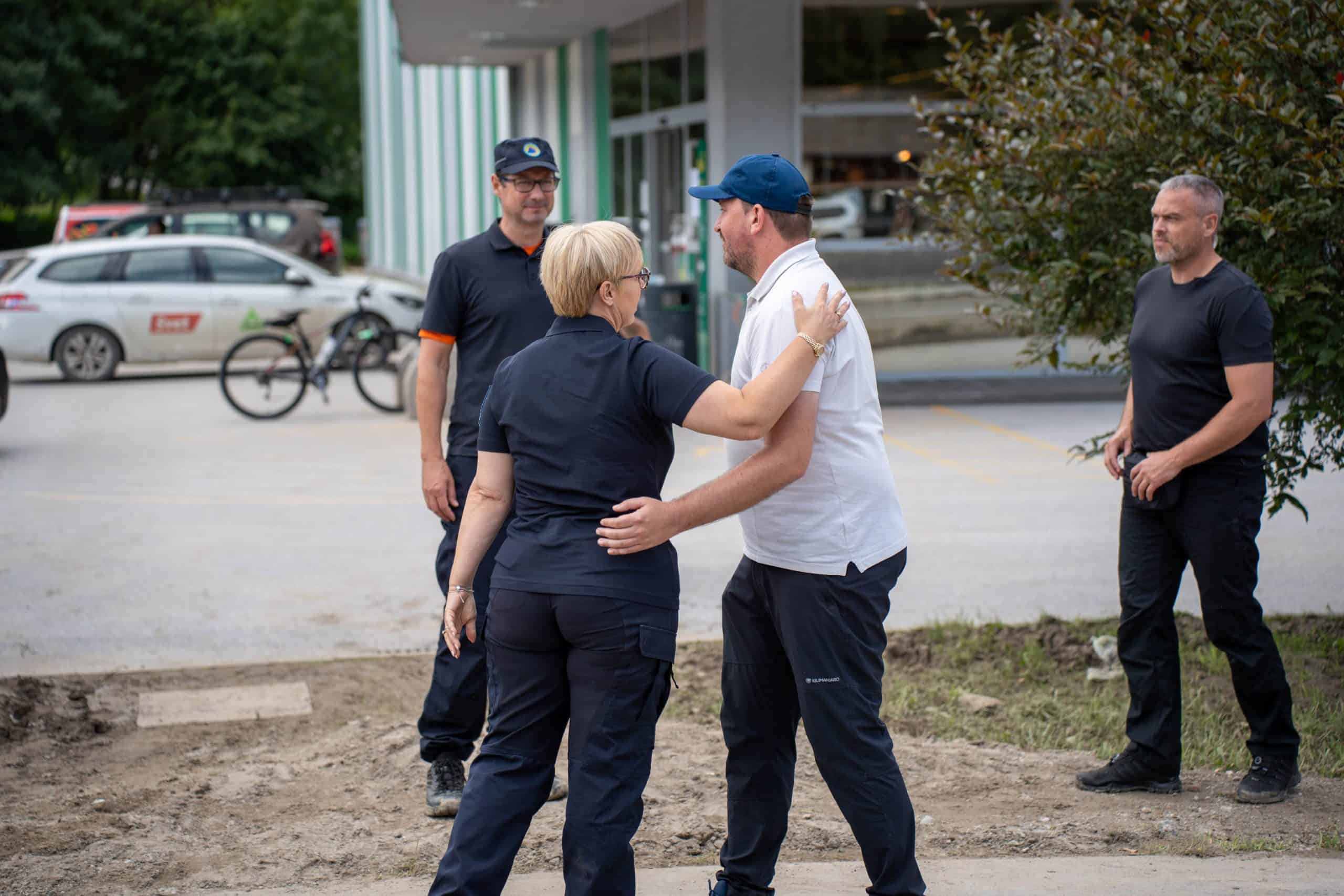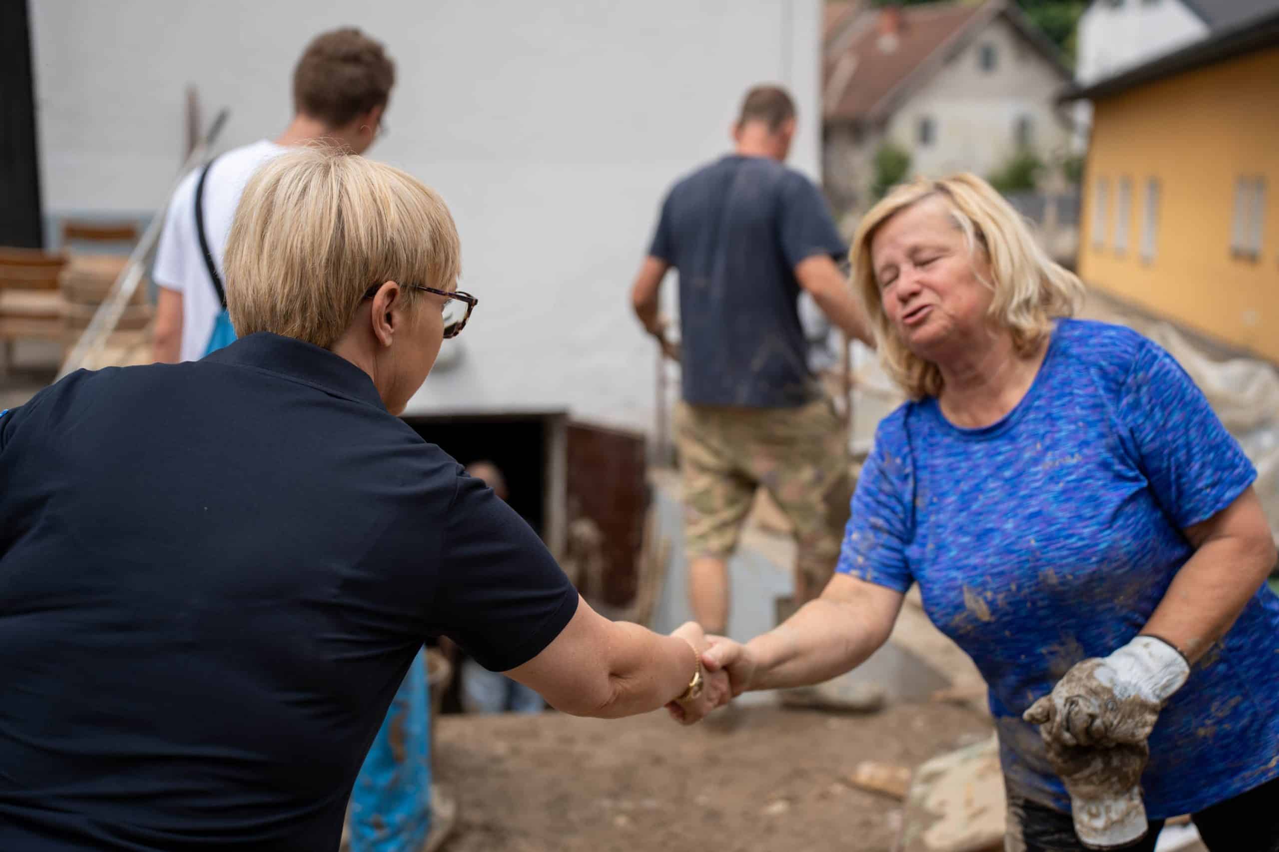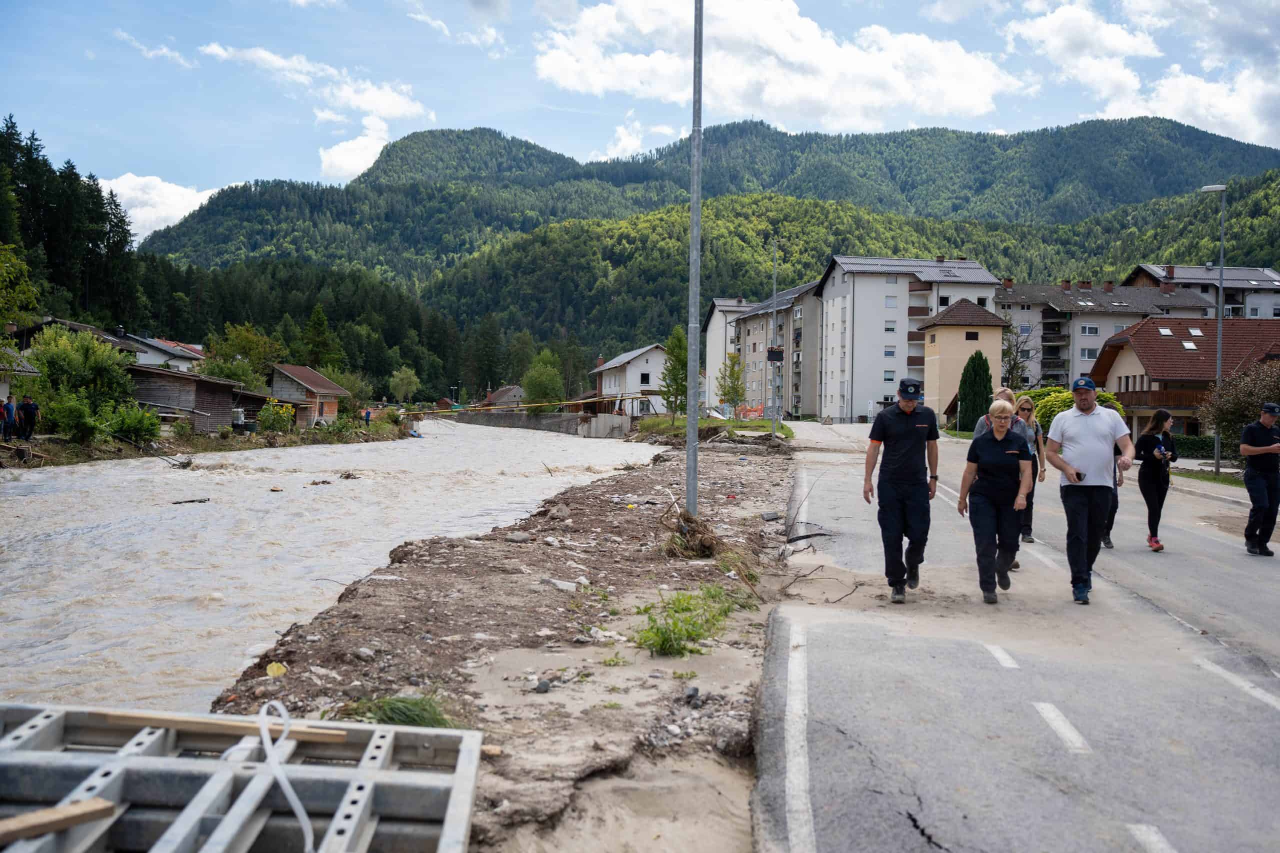 Na Ravnah na Koroškem se je srečala s prebivalkami in prebivalci, predstavniki lokalnih skupnosti, Civilne zaščite in gasilci in si ogledala posledice hudih poplav, ki so močno prizadele našo regijo. V spremstvu župana dr. Tomaža Rožena, podžupana Petra Stočka, poveljnika Branka Kakerja, dela CZ Štaba Občine Ravne je pozdravila tudi mnoge prostovoljce in si ogledala stanje.