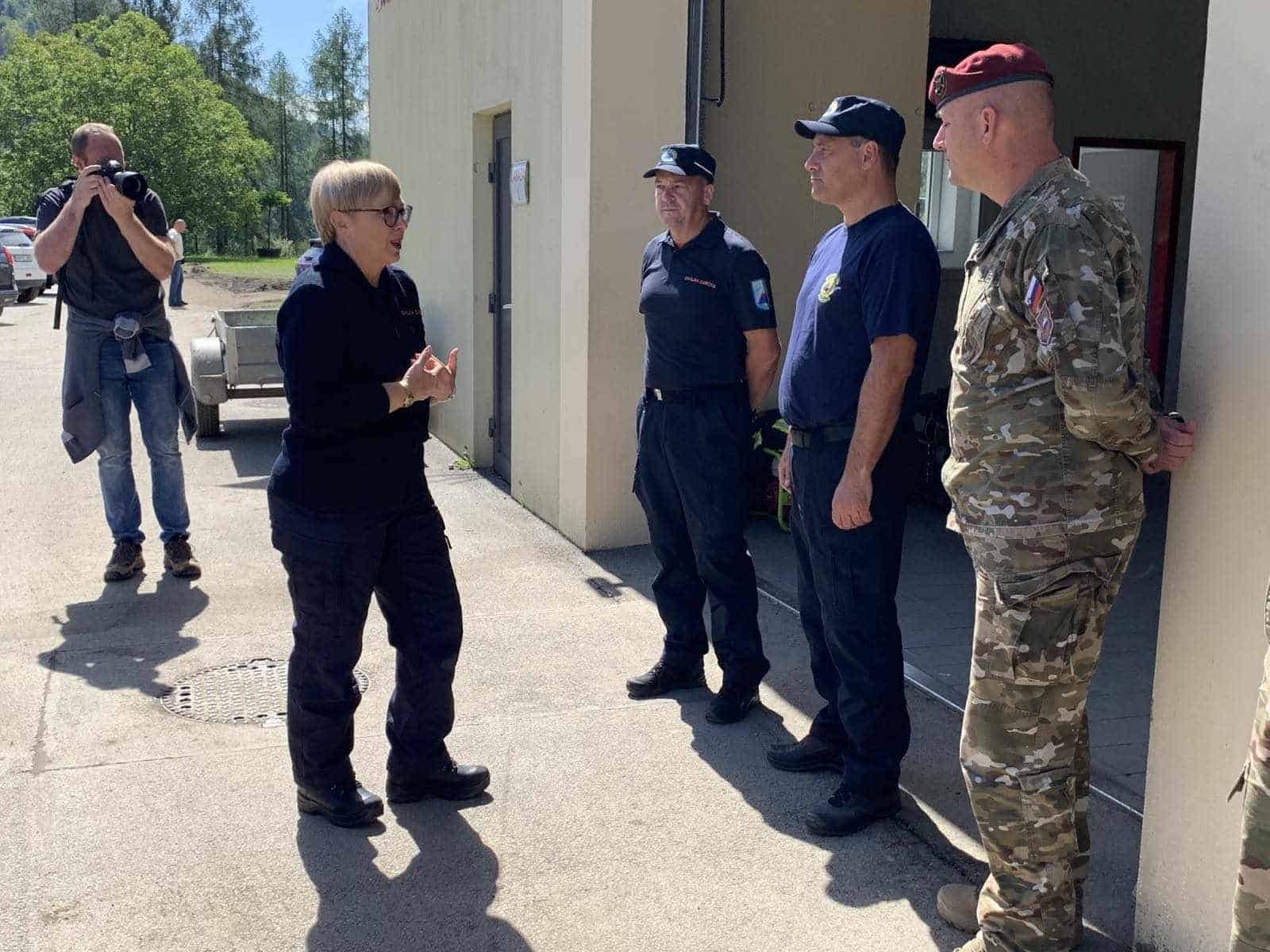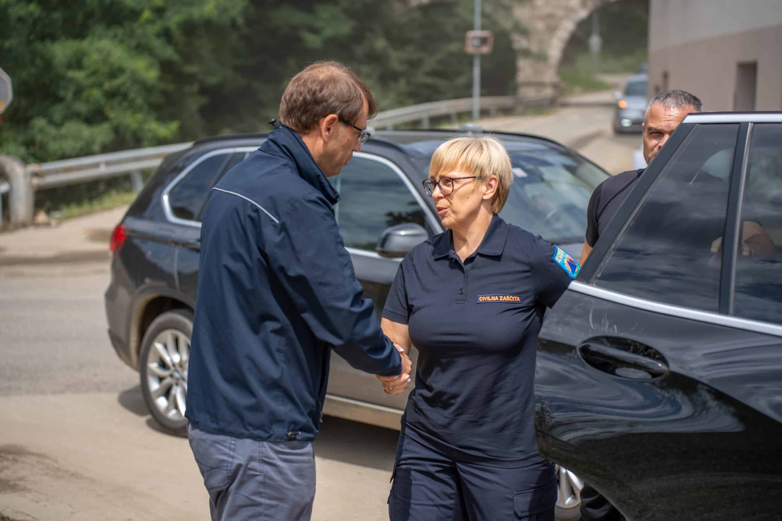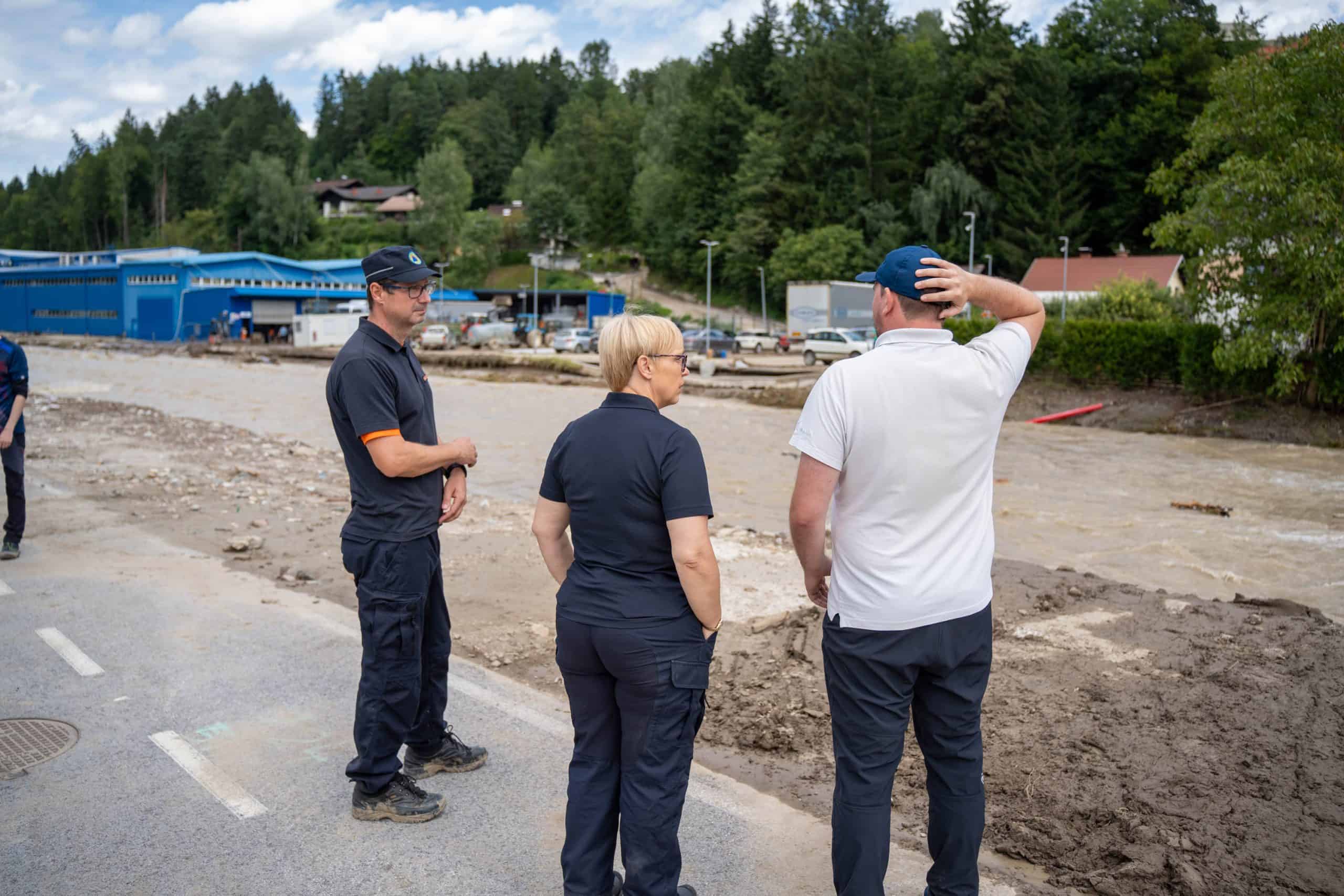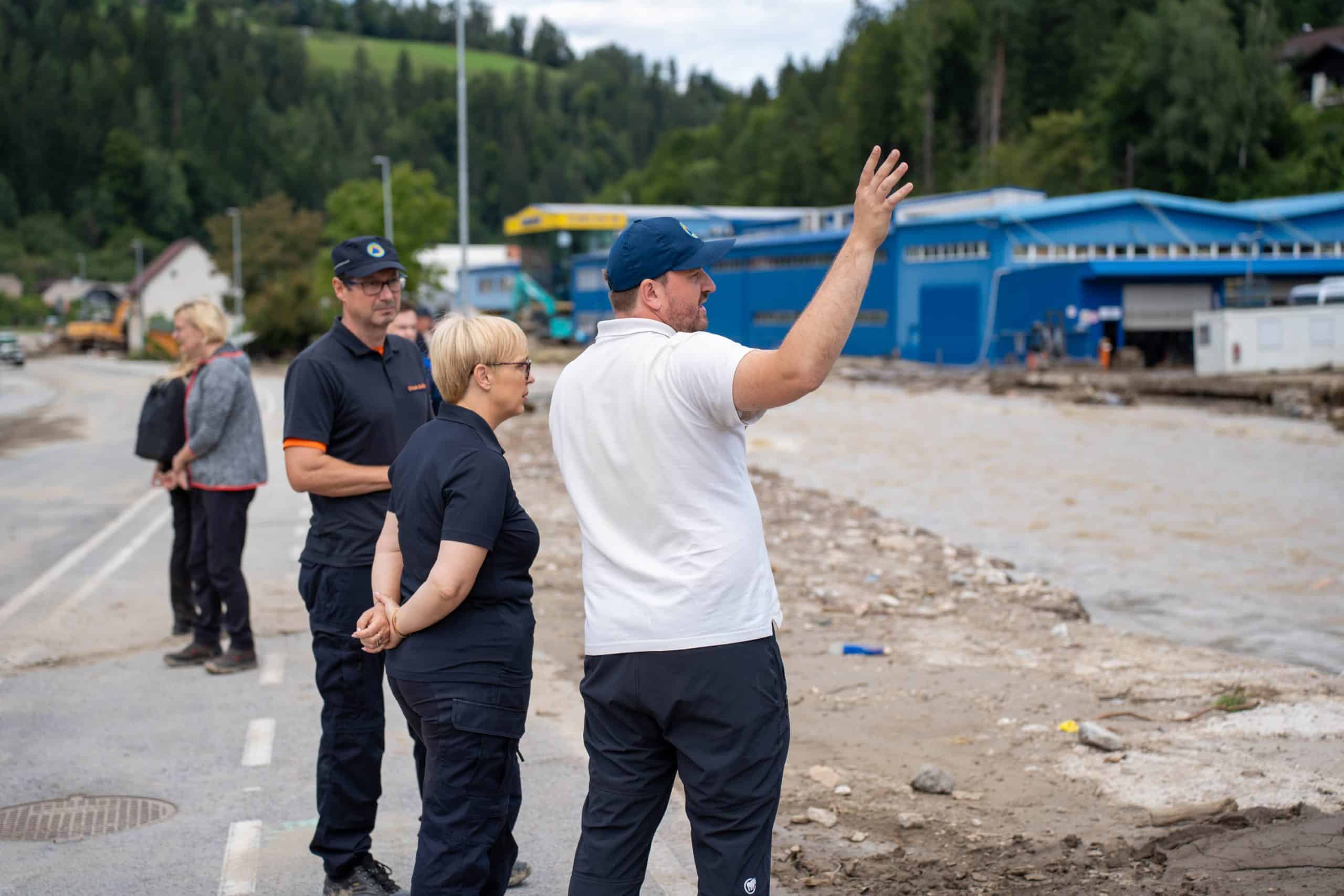 Obisk Črne na Koroškem jo je šokiral, razsežnosti strašnega neurja pa si je ogledala tudi v Občini Prevalje, Tam jo je s svojo ekipo sprejel župan dr. Matic Tasič. Pot je nadaljevala v Občino Mežica, kjer jo je sprejel tamkajšnji župan Mark Maze.