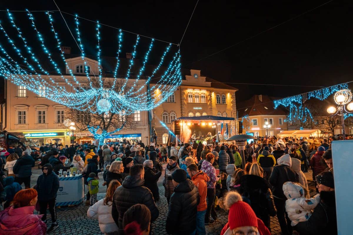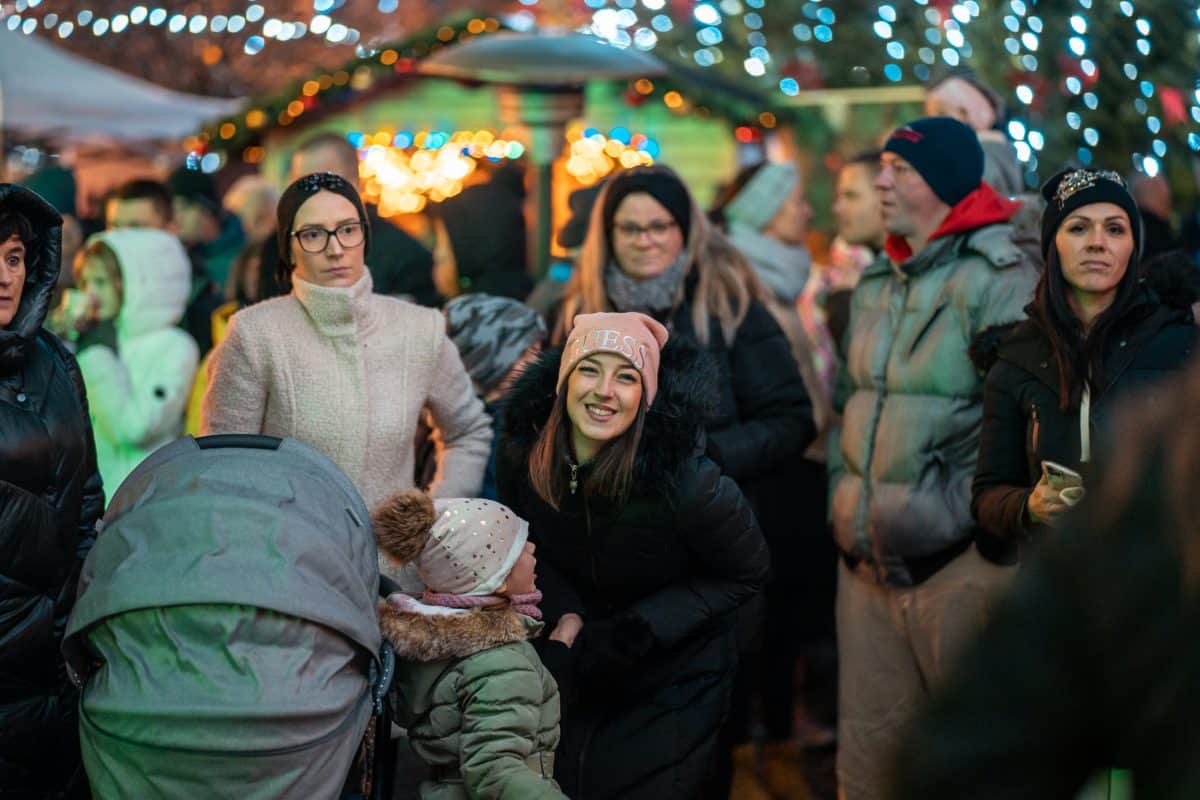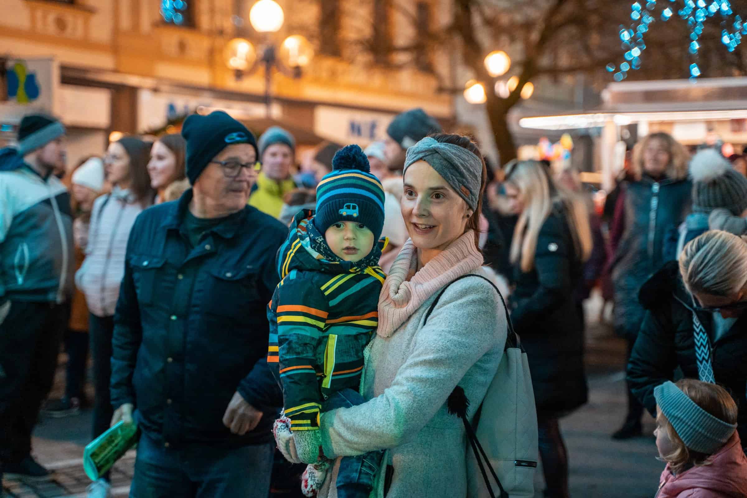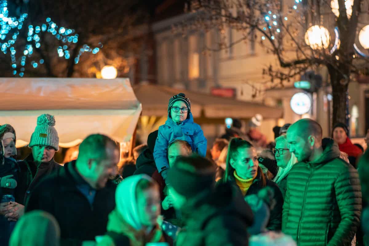 Na Glavnem trgu v Slovenj Gradcu je bilo danes živahno. Kljub nizkim temperaturam se je na prižigu luči zbralo več sto ljudi, ki so se ogreli ob odličnih zvokih skupine DaDžem in toplih napitkih bližnjih gostiln. Manjkala ni tudi odlična ponudba hrane.