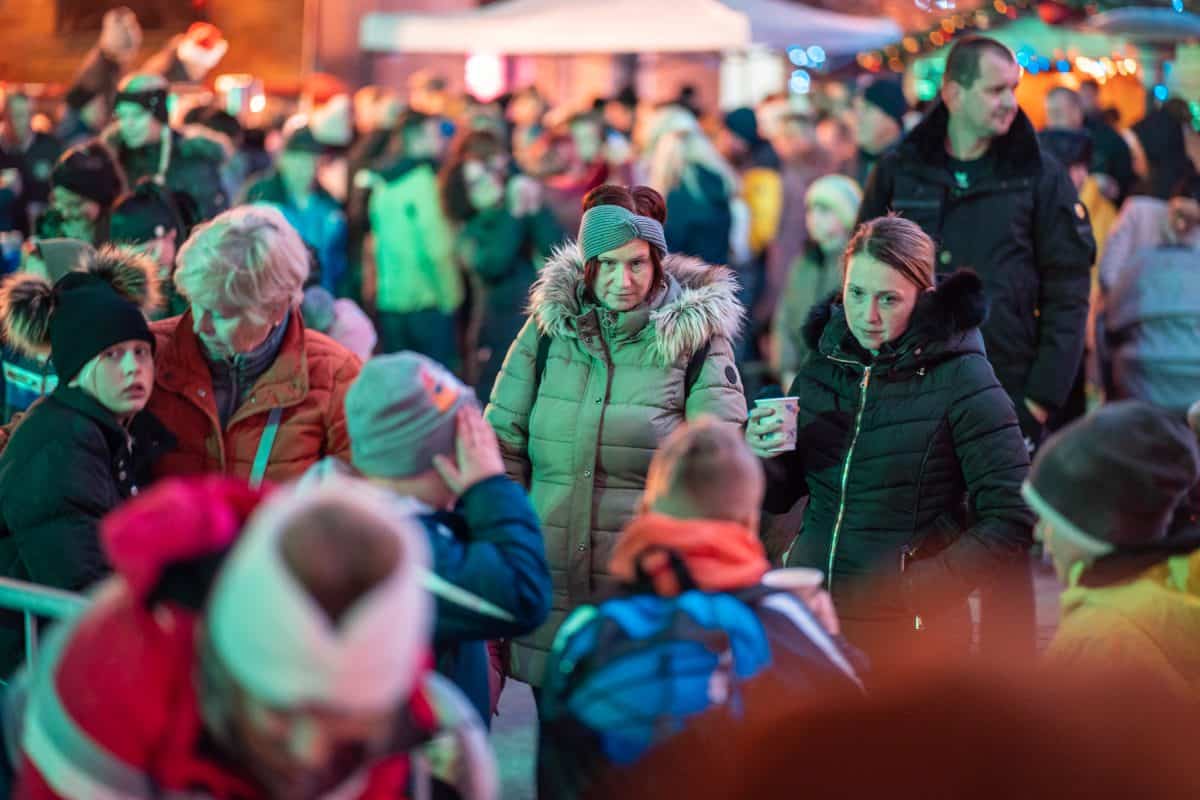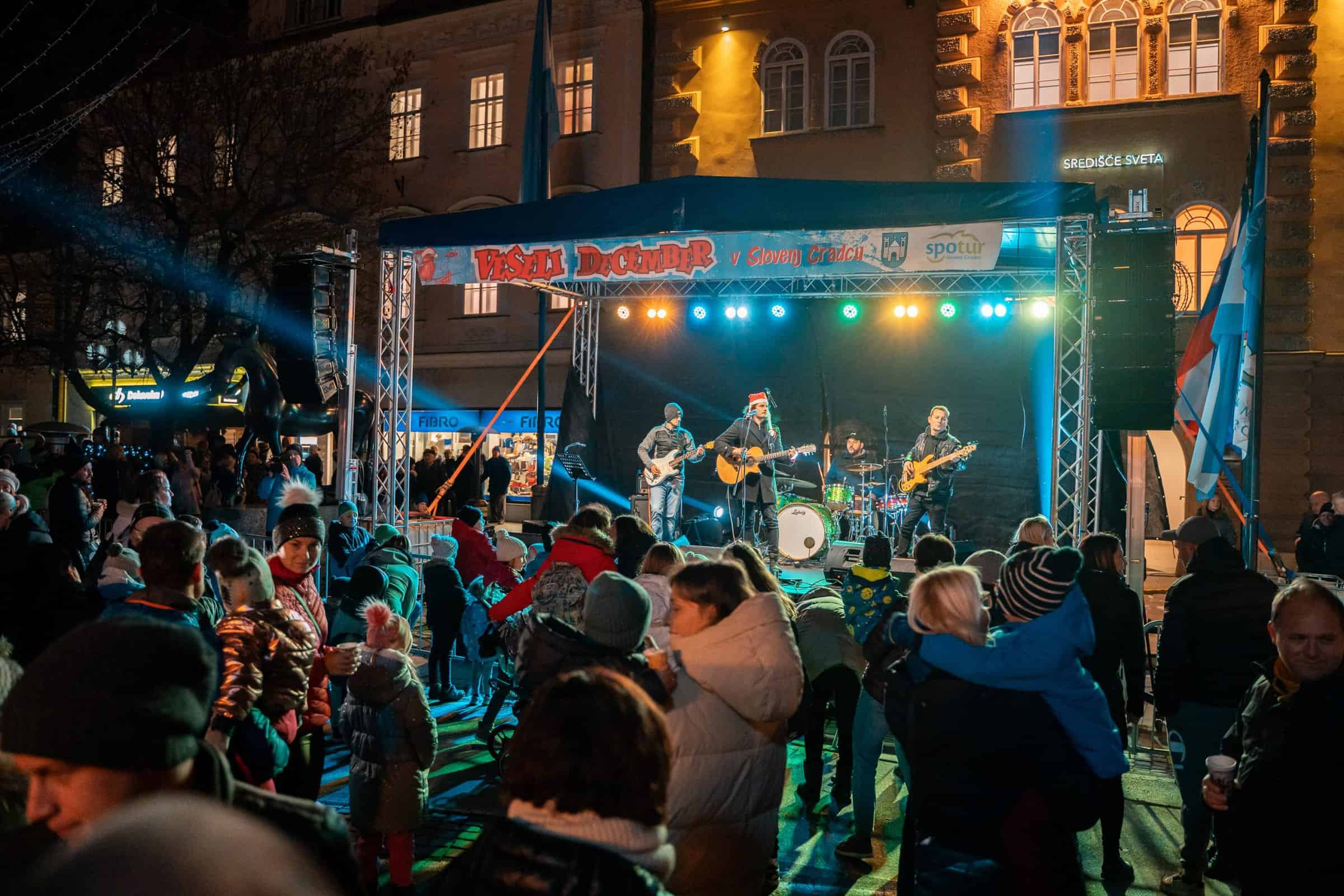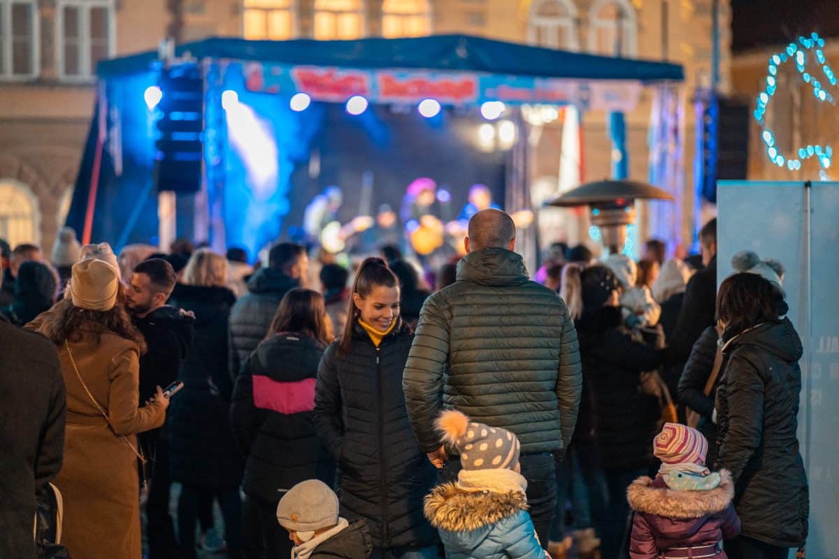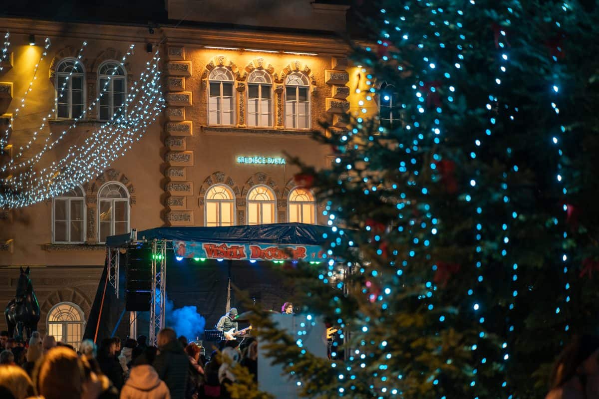 Na Glavnem trgu v Slovenj Gradcu je bilo danes živahno. Kljub nizkim temperaturam se je na prižigu luči zbralo več sto ljudi, ki so se ogreli ob odličnih zvokih skupine DaDžem in toplih napitkih bližnjih gostiln. Manjkala ni tudi odlična ponudba hrane.