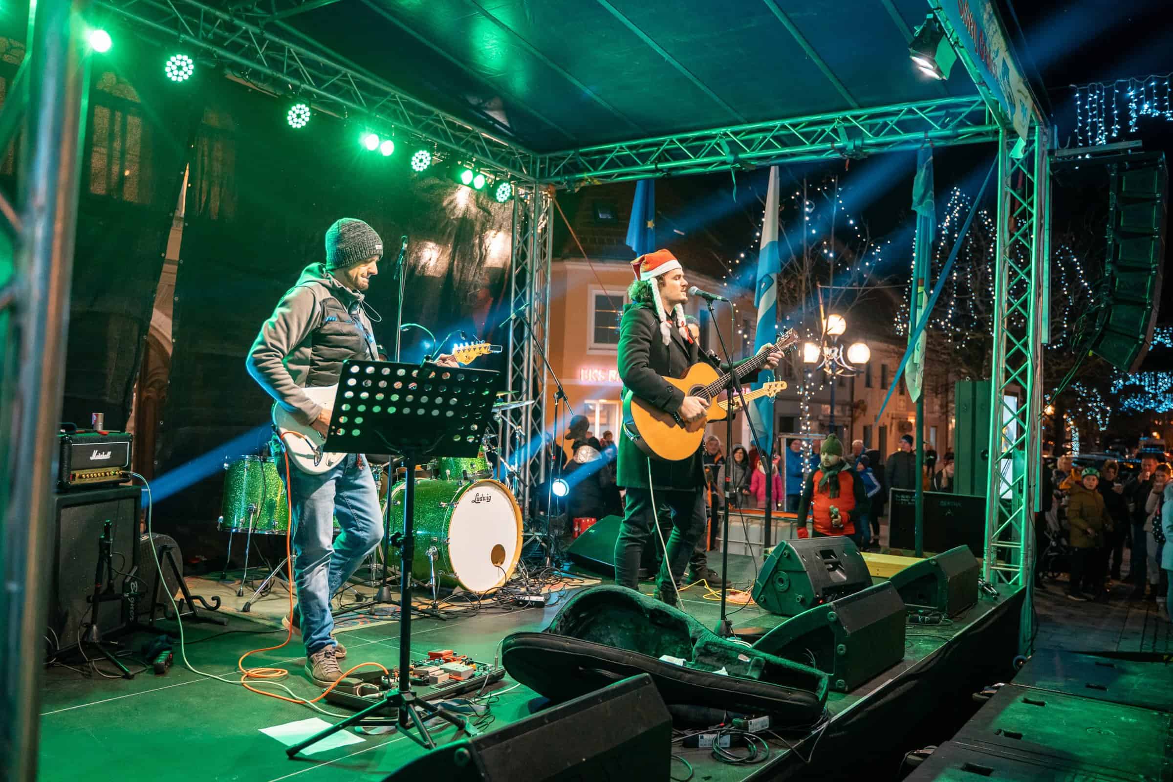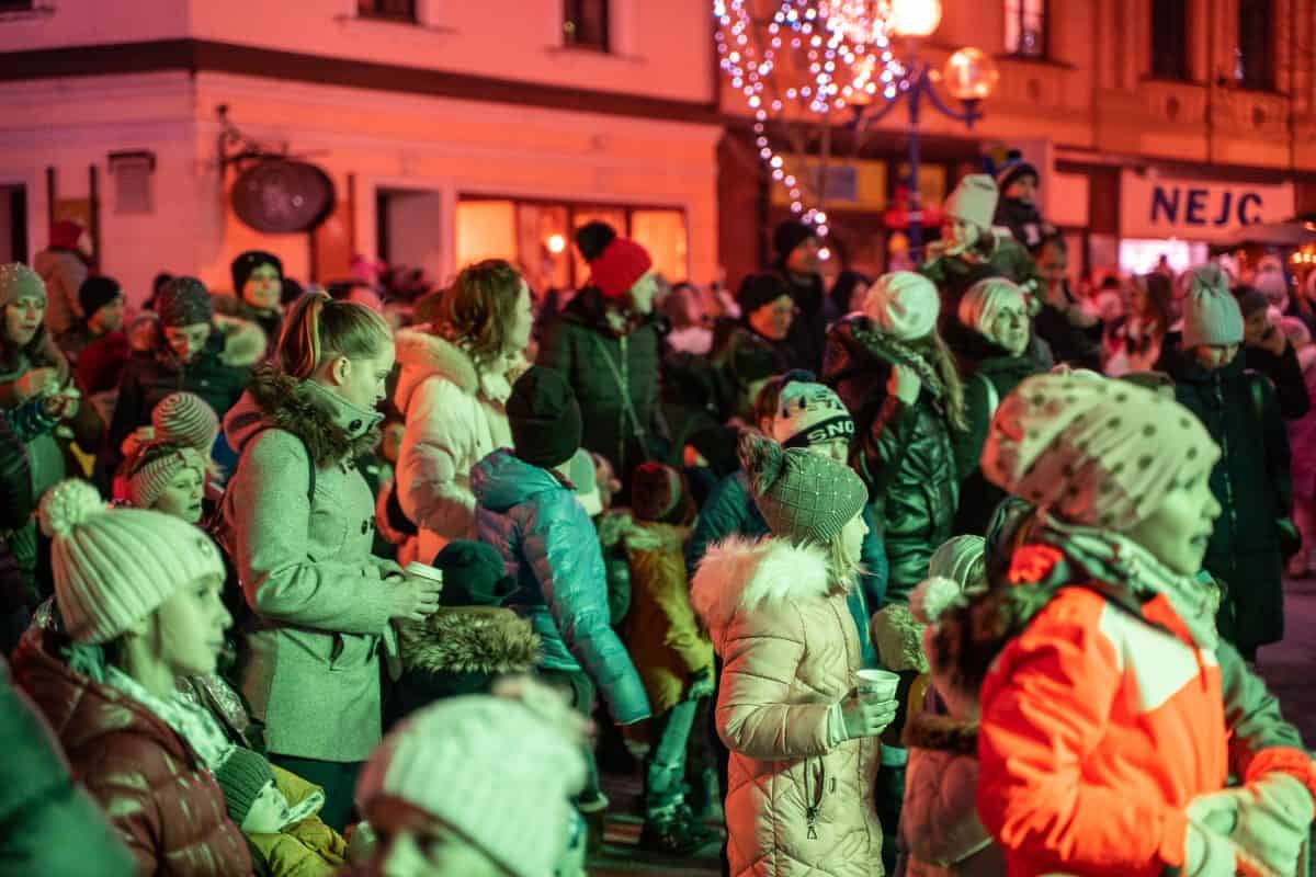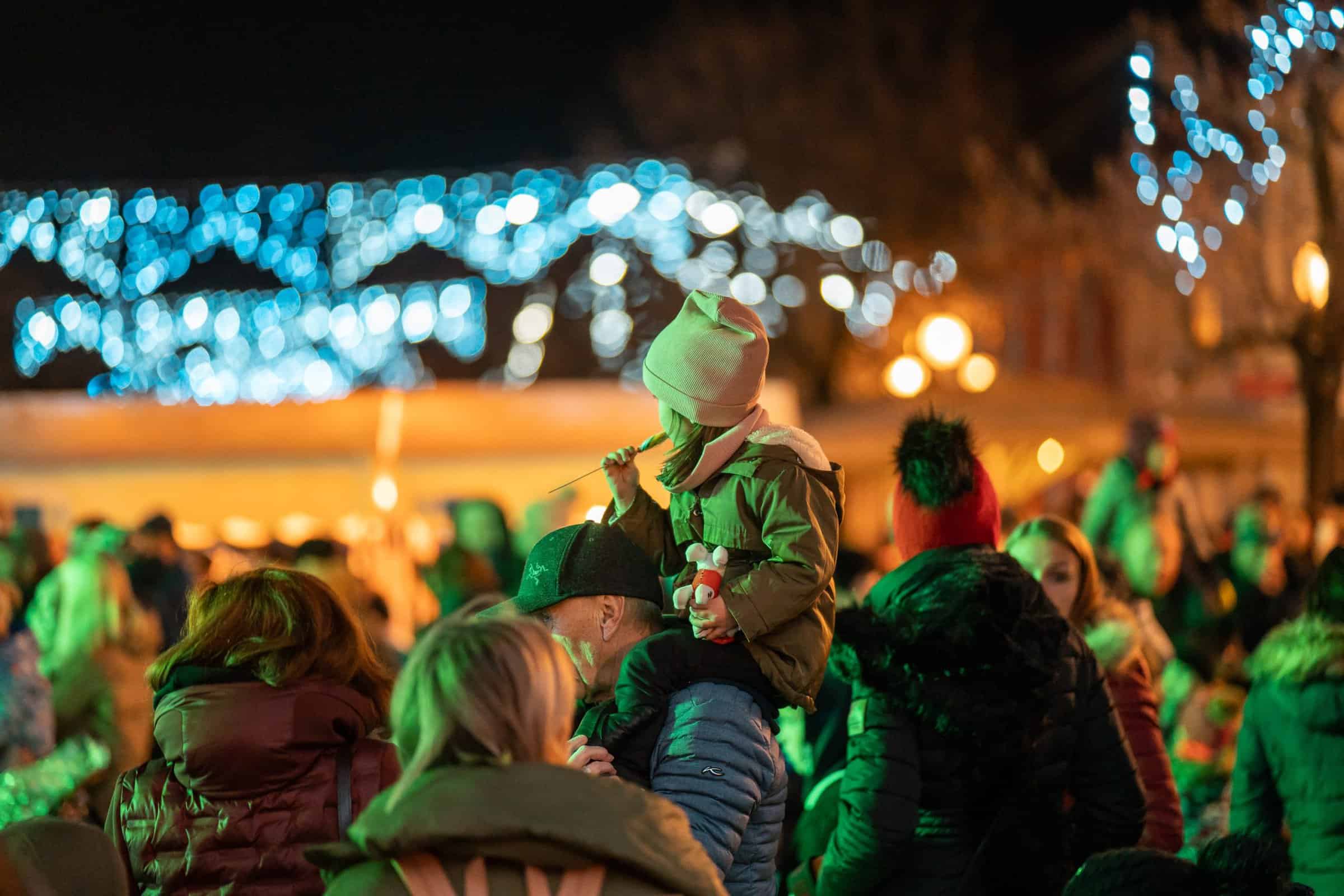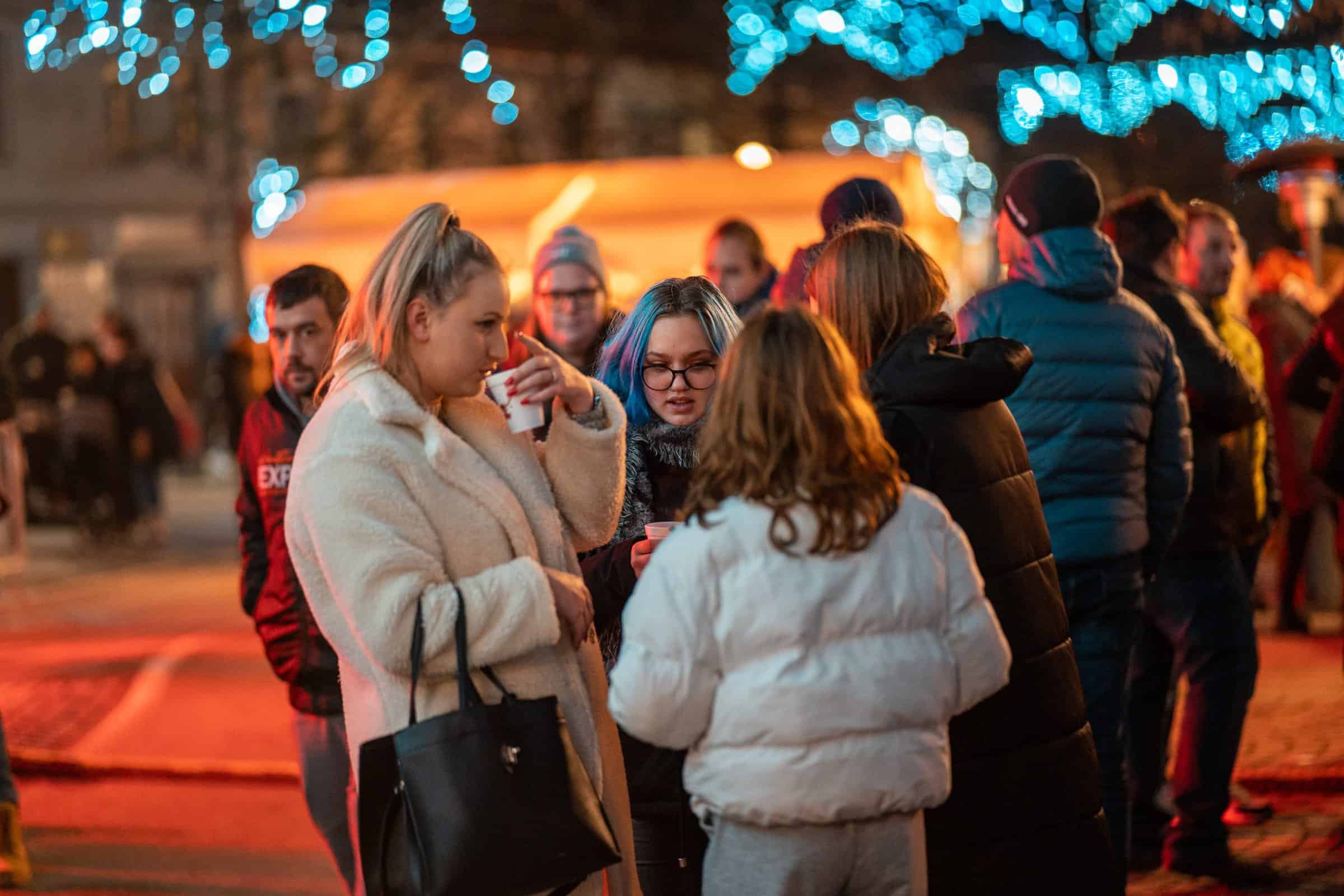 Na Glavnem trgu v Slovenj Gradcu je bilo danes živahno. Kljub nizkim temperaturam se je na prižigu luči zbralo več sto ljudi, ki so se ogreli ob odličnih zvokih skupine DaDžem in toplih napitkih bližnjih gostiln. Manjkala ni tudi odlična ponudba hrane.