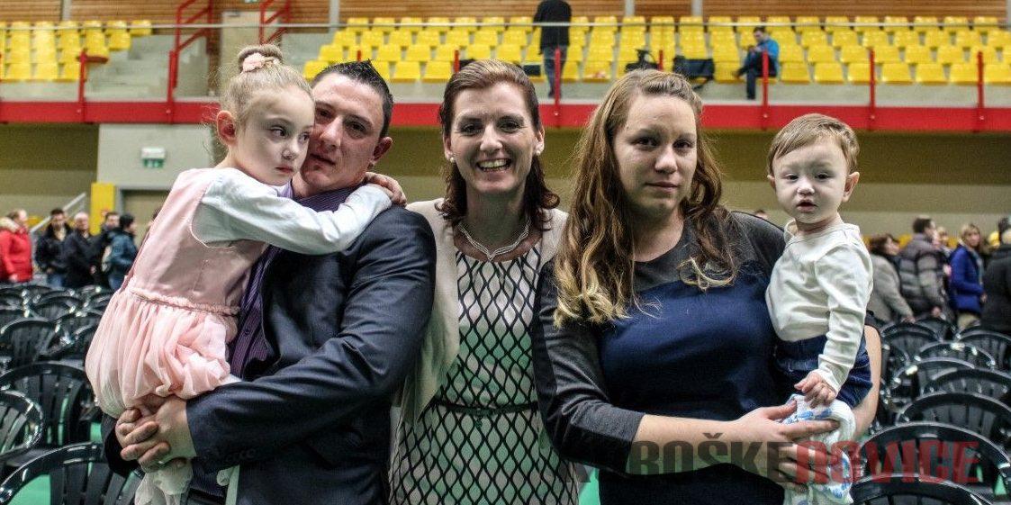 [caption id="attachment_48816" align="aligncenter" width="1123"] Družina Voglič v družbi soorganizatorke koncerta, humanitarke Anike Popič[/caption]