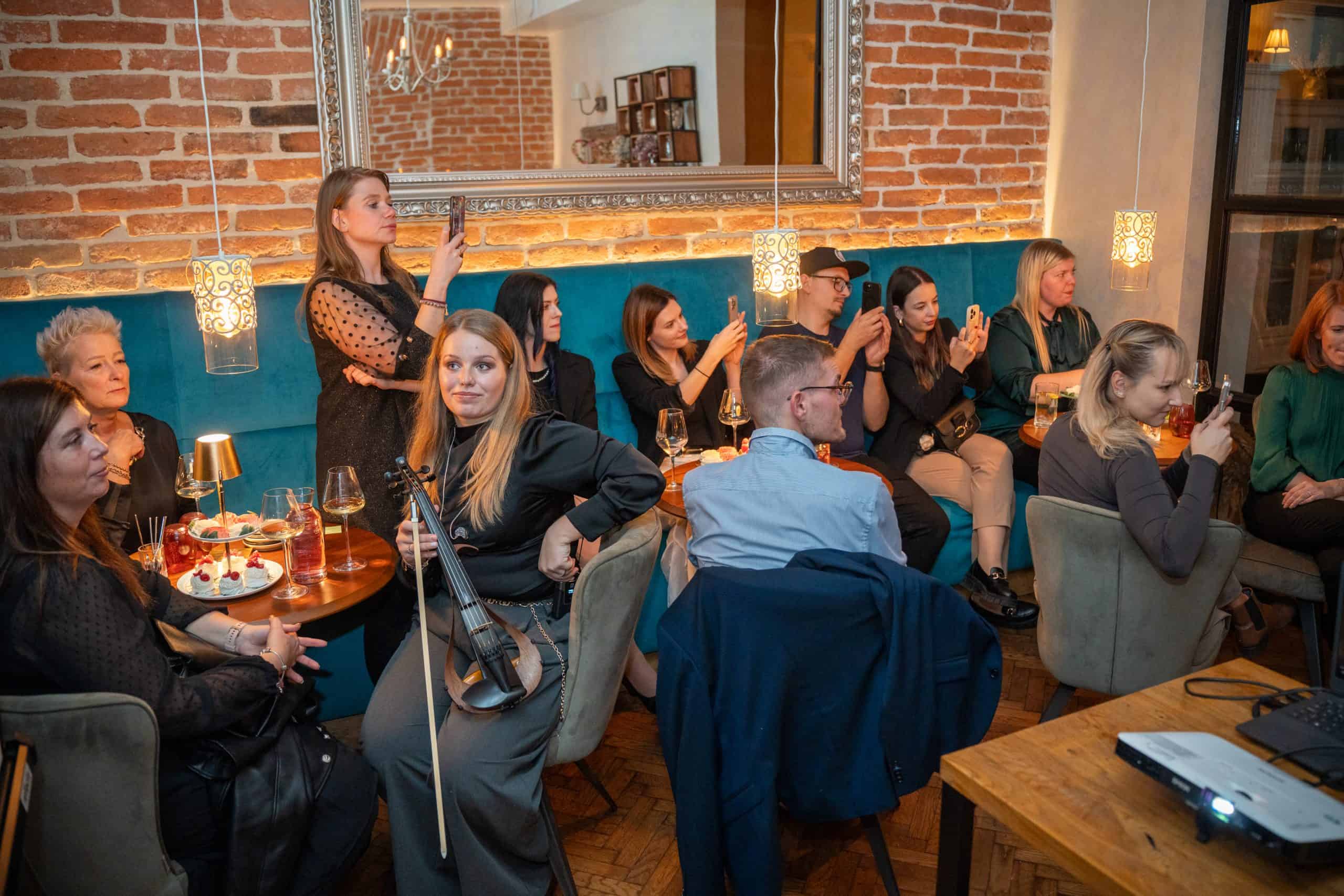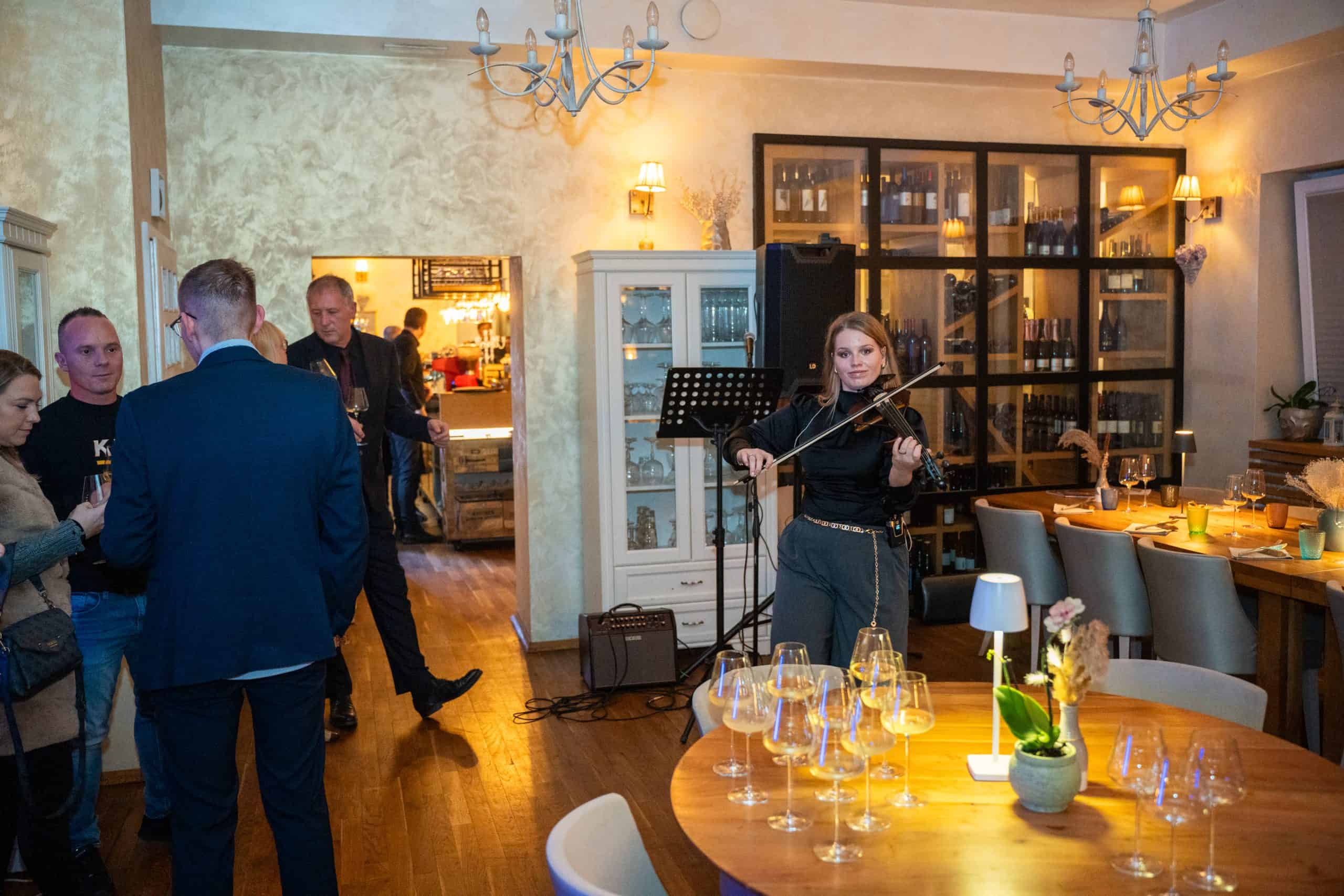 Za vzdušje in glasbeno spremljavo sta poskrbela Žana z violino in Aljaž na kitari, za nekaj fotografskih spominov pa SelfieKufer. Po koncu predstavitev so gostitelji poskrbeli še za odlično kulinarično razvajanje brbončic. Povabljence so postregli z jedmi, ki so bile del Tedna restavracij in tako pokazali raznolikost, dovršenost in vrhunske kreacije svojega kolektiva.