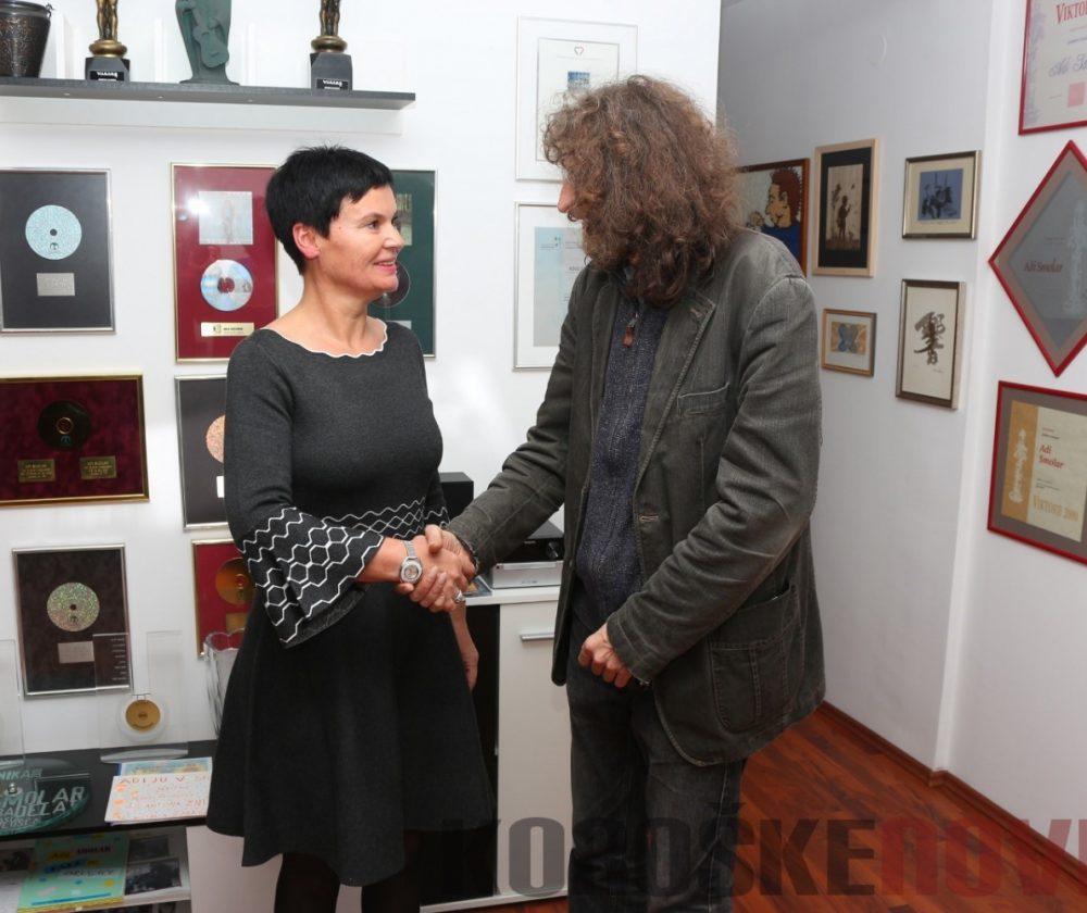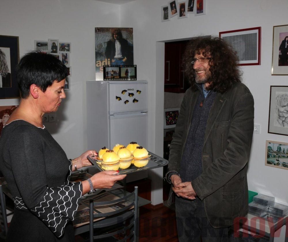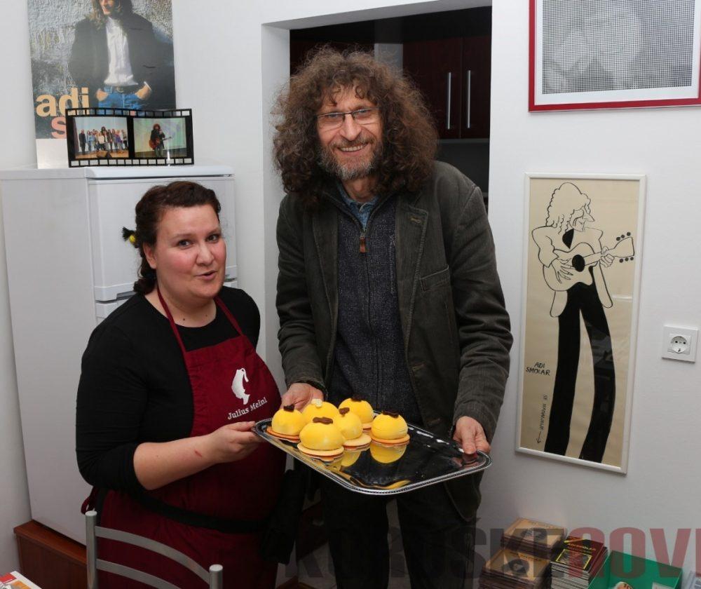 Na uradnem odprtju sobe se mu je pridružila tudi koroška glasbenica Dunja Vrhovnik, ki je zapela nekaj priredb njegovih skladb, pri pesmi Bognedaj, da bi crknu televizor, pa se ji je na odru pridružil tudi Adi, ki je nam potem še sam zaigral nekaj njegovih hitov.