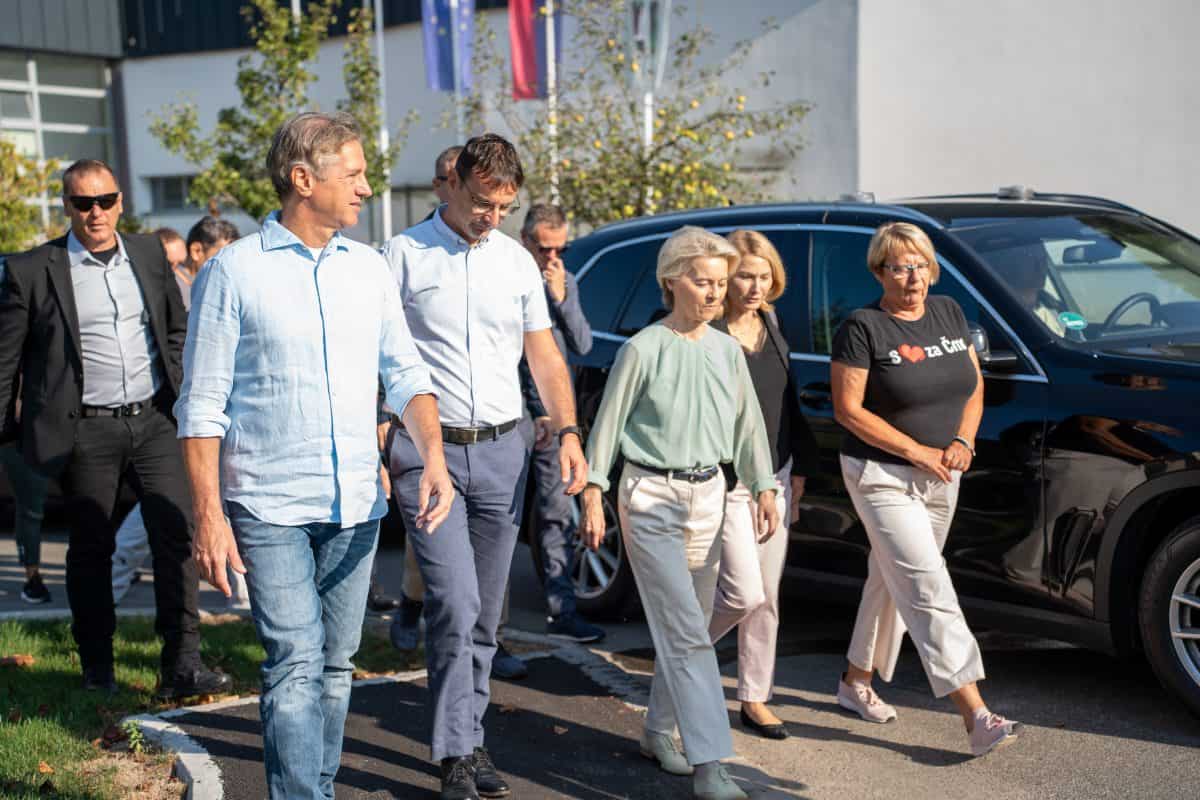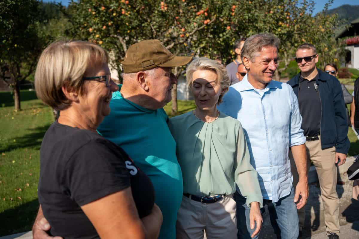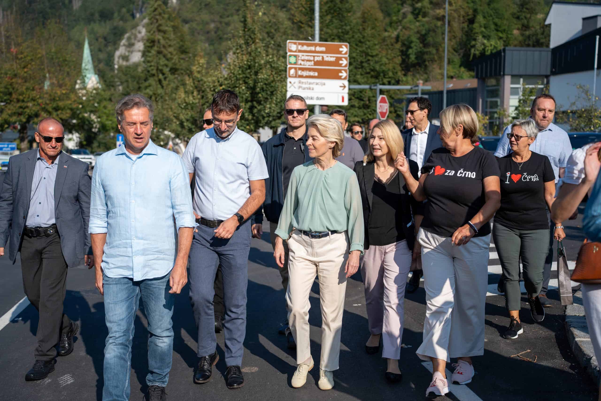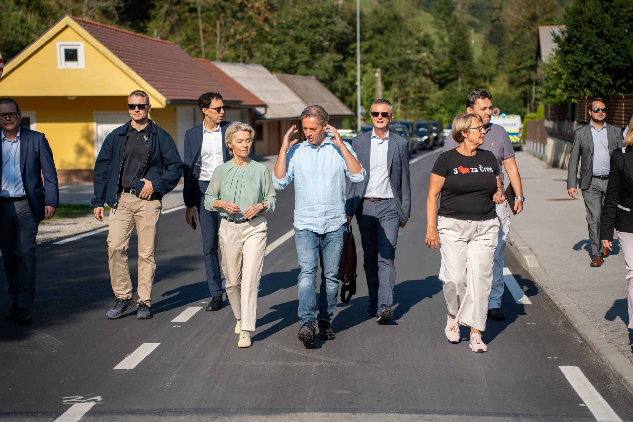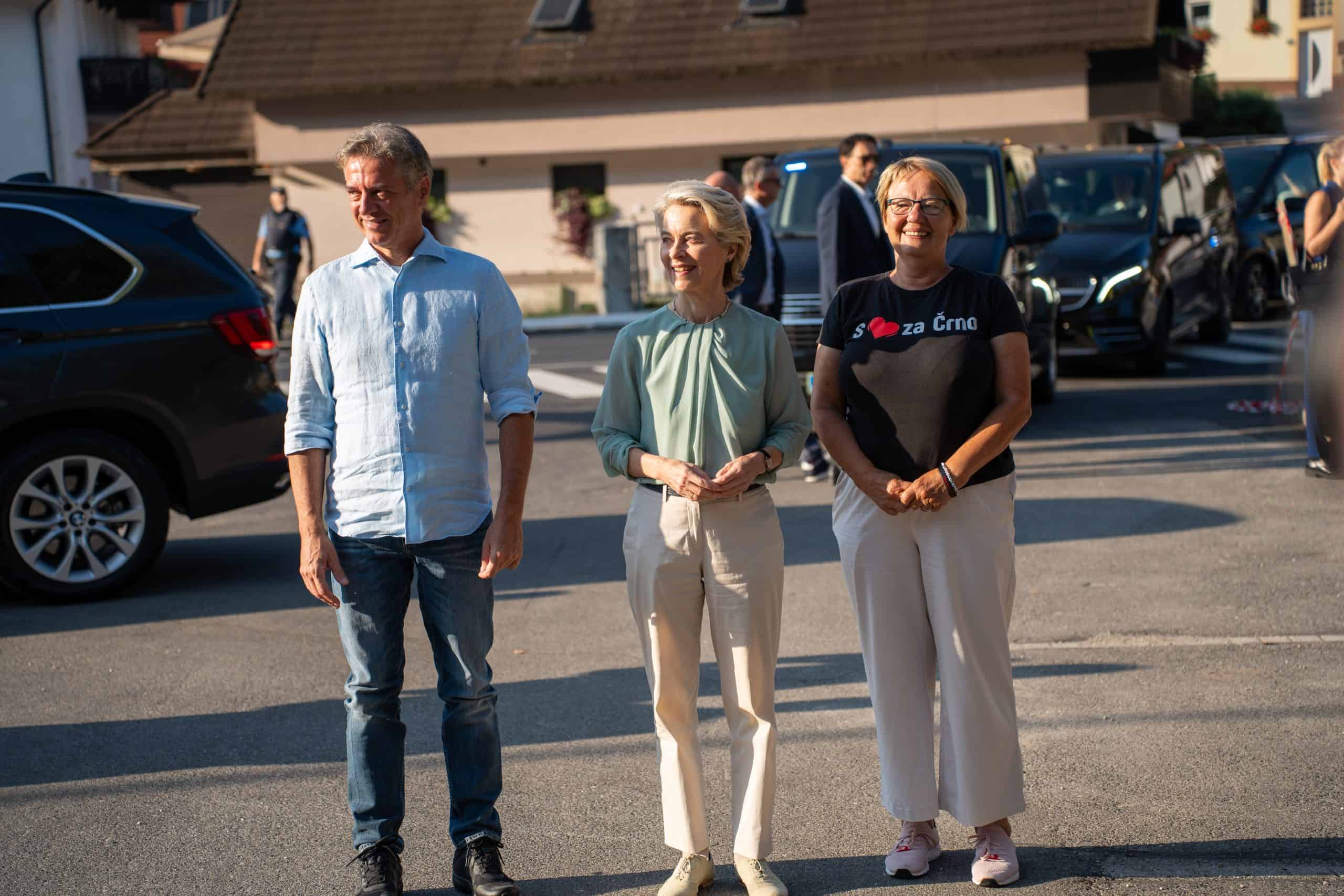 "V živo se spomnim lanskega obiska, upostošenja, uničenja, blata, ki je zakrival vse ...," je uvodoma dejala predsednica Evropske komisije, Ursula Von der Leyen, ki je lani Črno obiskala le nekaj dni po katastrofalnih poplavah. "Druga stvar, ki se je spomnim, je izjemna solidarnost Slovencev in prebivalccev Črne, ki so se skupaj borili," je nadaljevala.