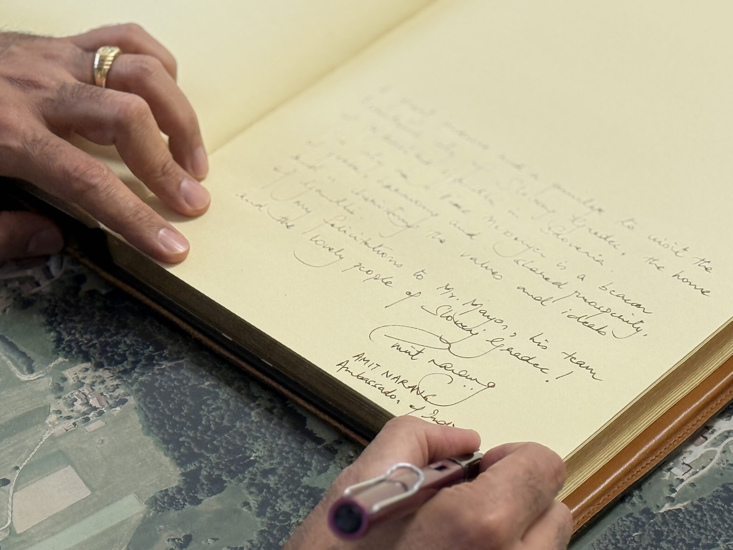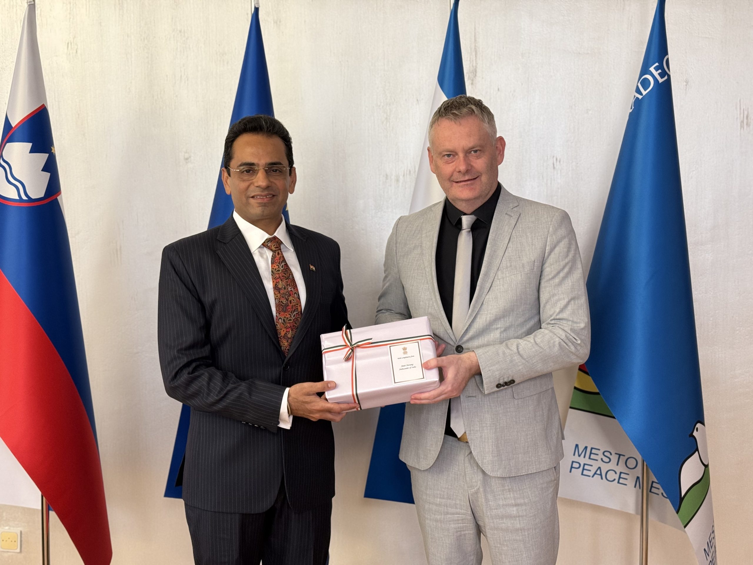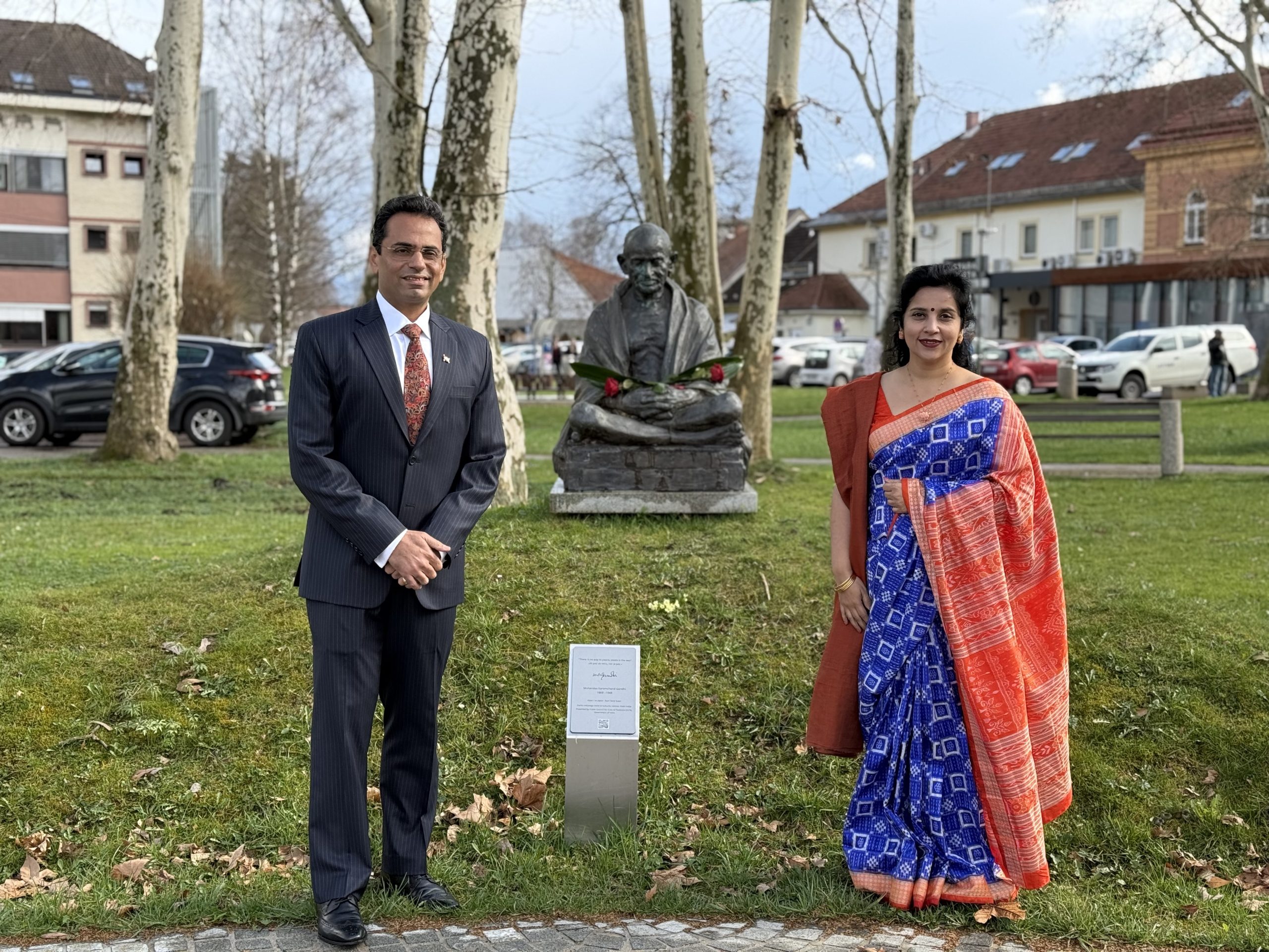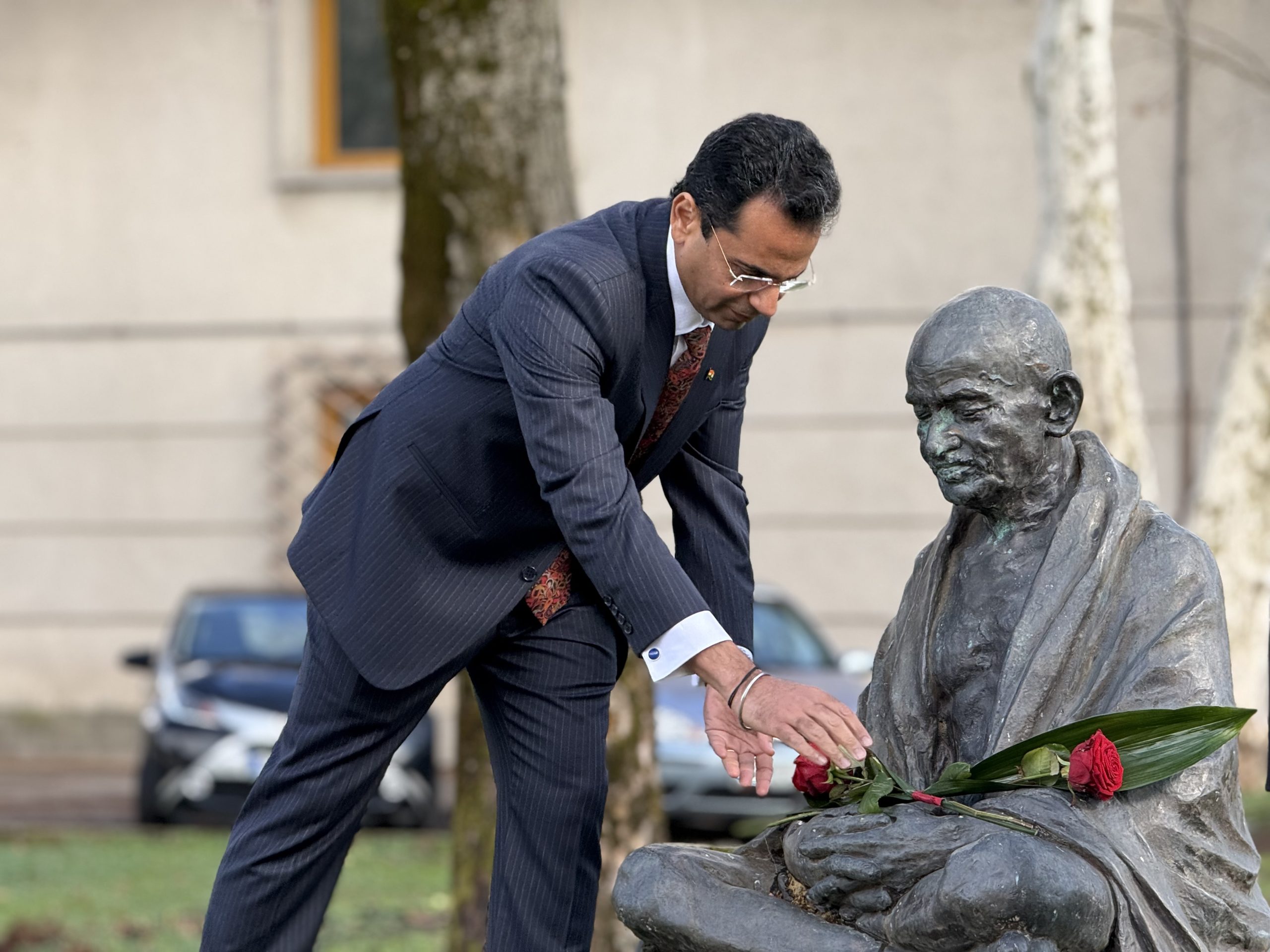 Dogodek je bil še posebej slovesen zaradi prisotnosti njegove ekscelence, indijskega veleposlanika v Sloveniji Amit Naranga, ki je prvič obiskal Slovenj Gradec – skupaj z družino. V uvodu je poudaril, kako poseben je ta trenutek zanj osebno in za Indijo: »Slovenj Gradec je dom Mahatme Gandhija v Sloveniji. Njegov doprsni kip tukaj je večni opomnik na to, kako univerzalni in večni so nauki tega velikega sina človeštva. Dejstvo, da še danes navdihuje mlade prebivalce te prelepe države, je globoko ganljivo in navdaja vsakega Indijca s ponosom.«