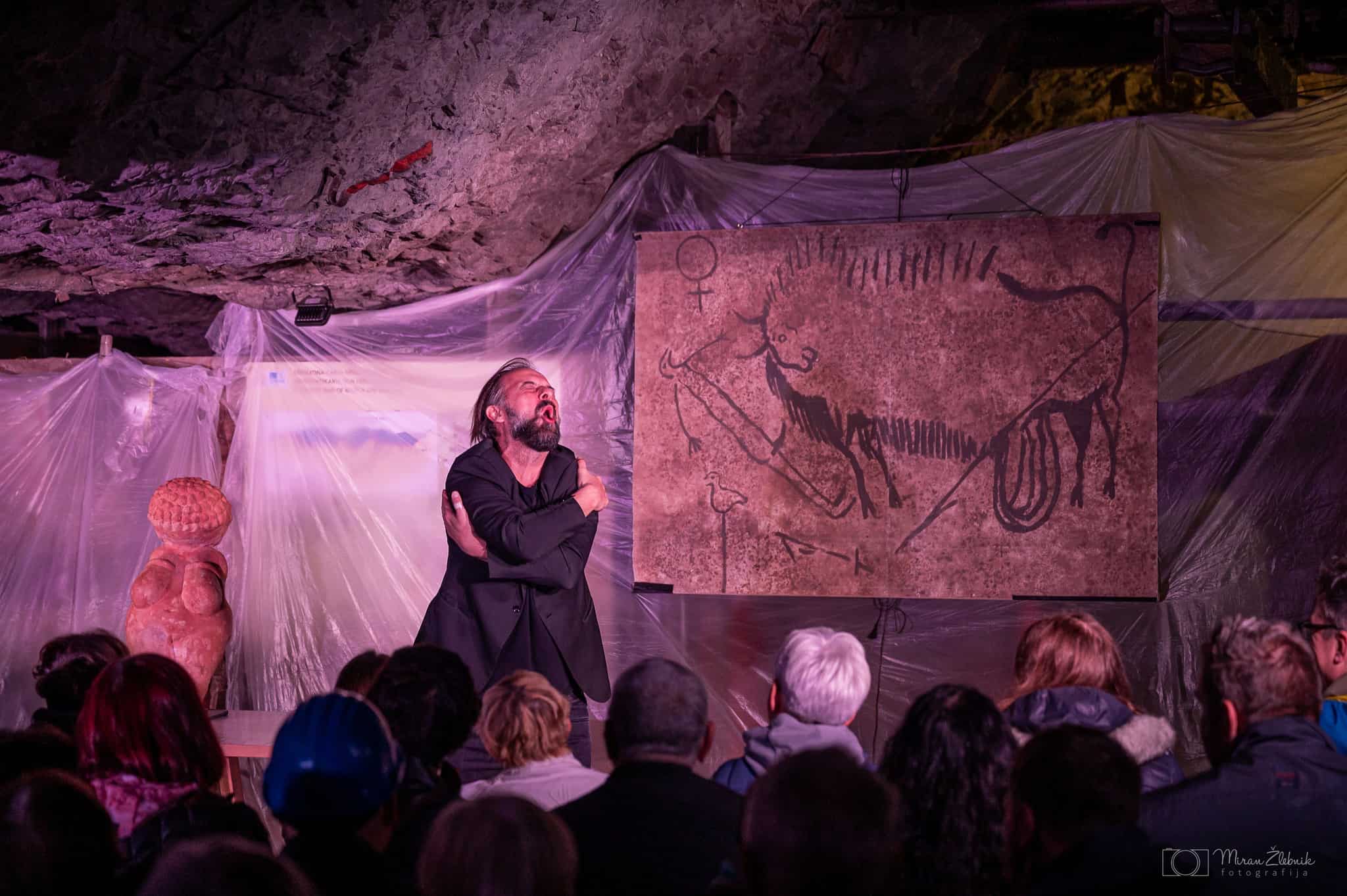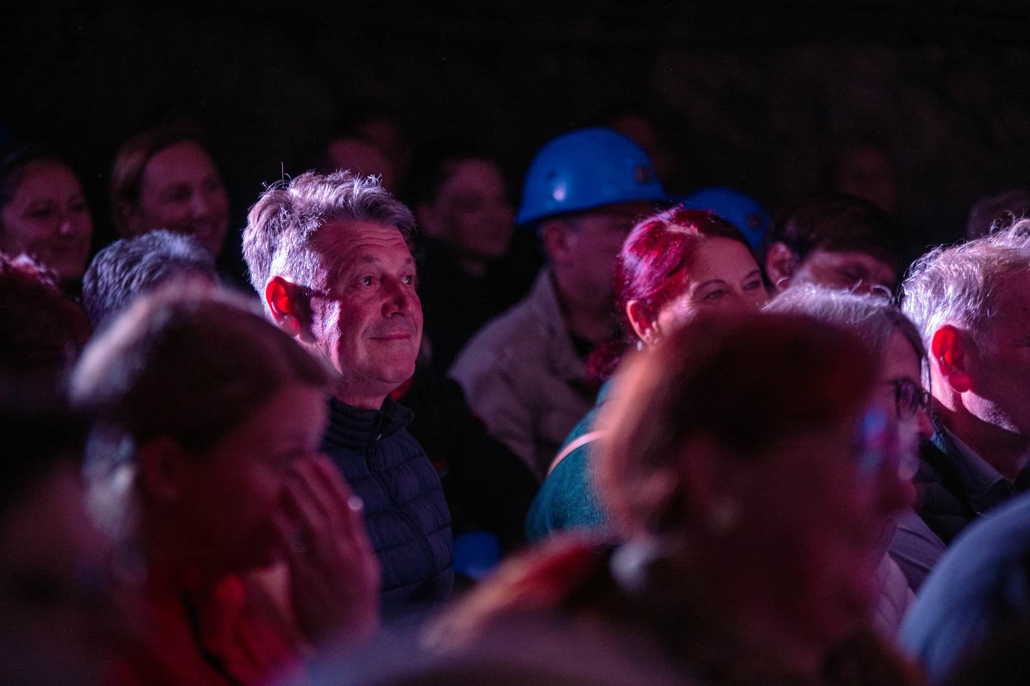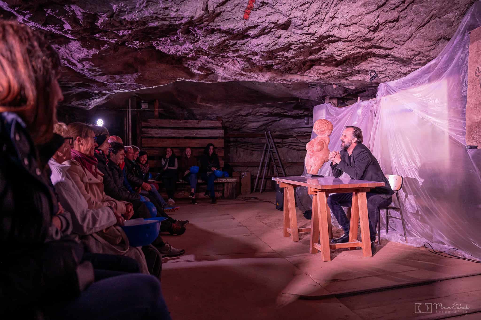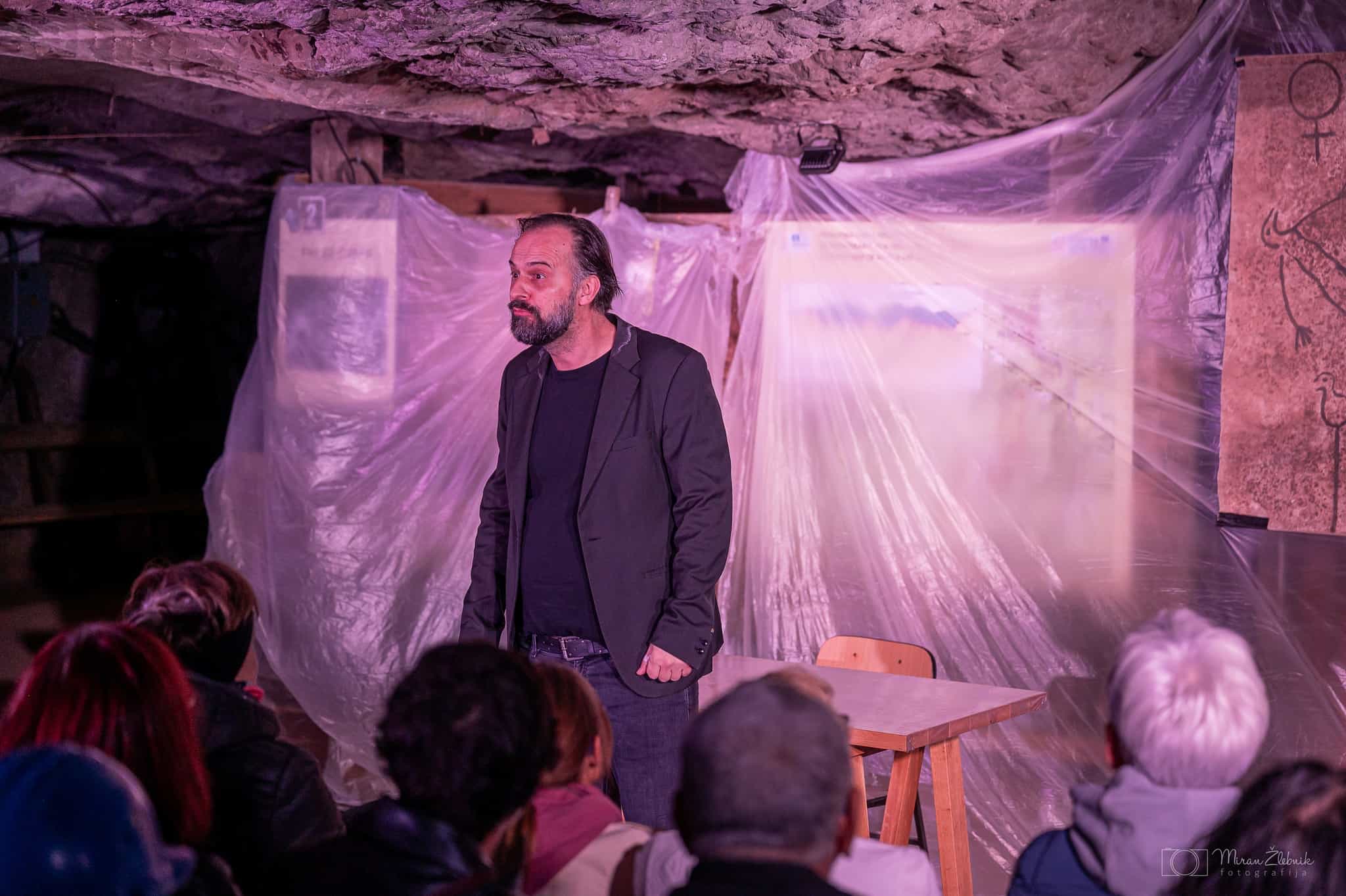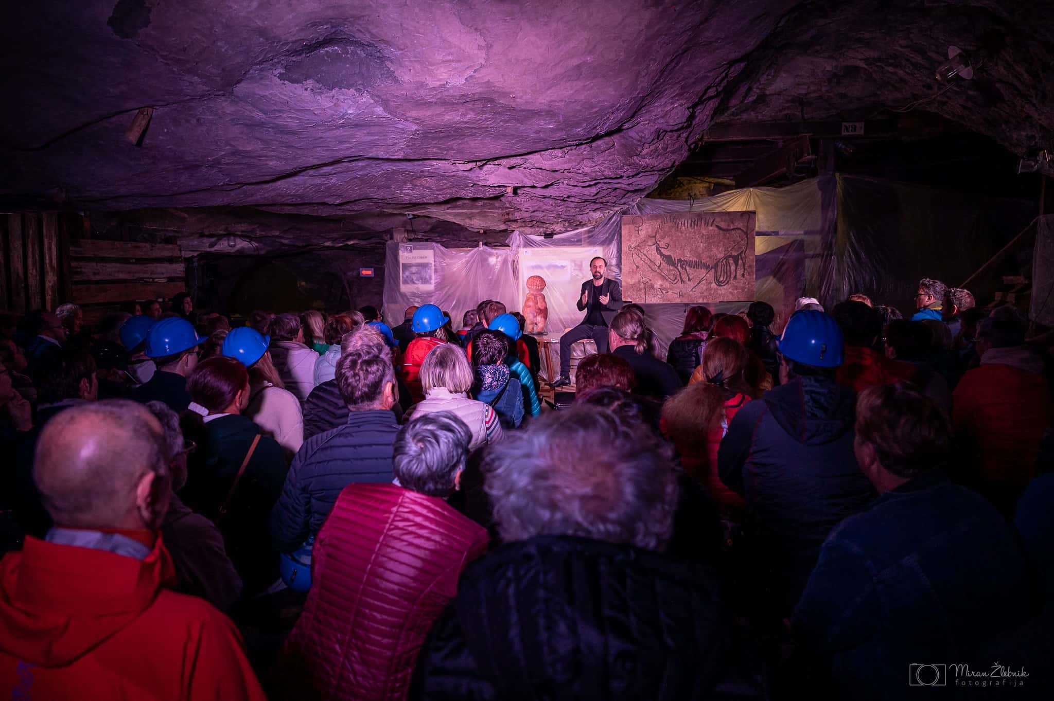 V petek, 13. oktobra 2023 so Narodni dom Mežica in Podzemlje Pece skupaj izpeljali kulturno-zabavni večer z monokomedijo Uroša Fürsta Jamski človek na unikatnem prizorišču “frlez cimer” na postaji Moreing več kot 500 metrov pod površjem.