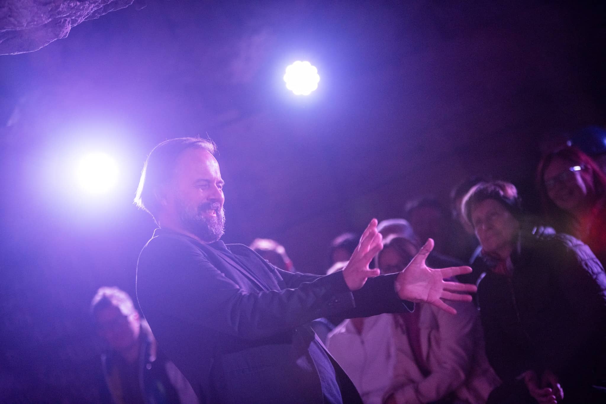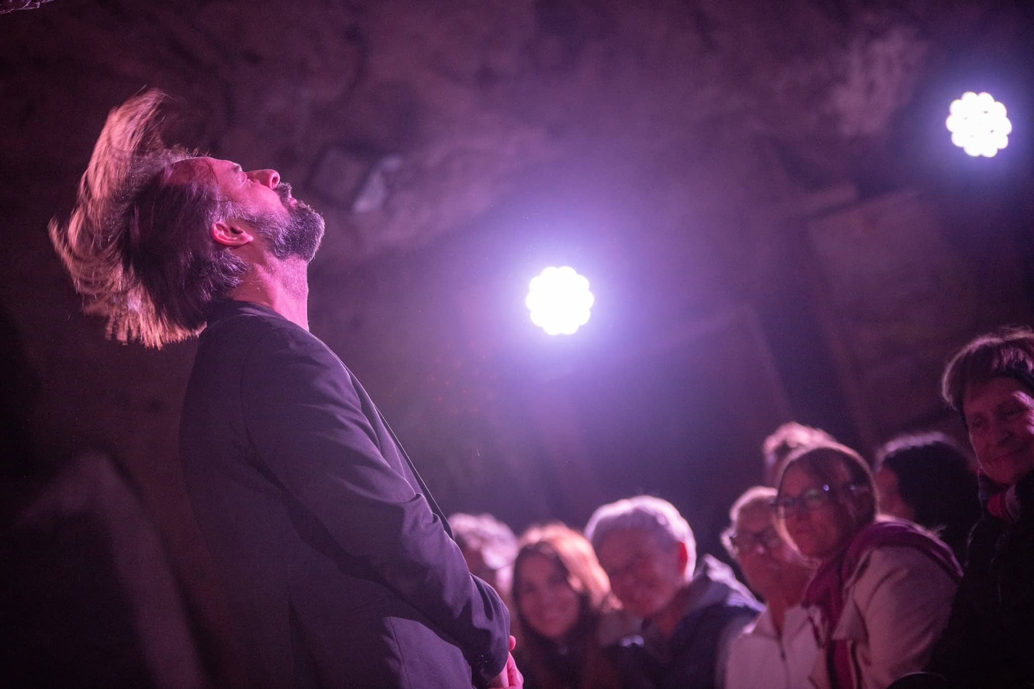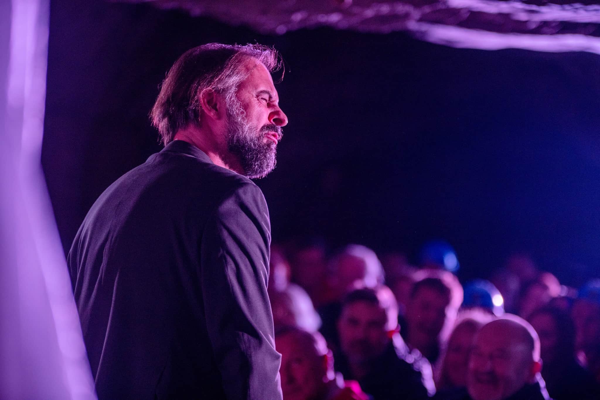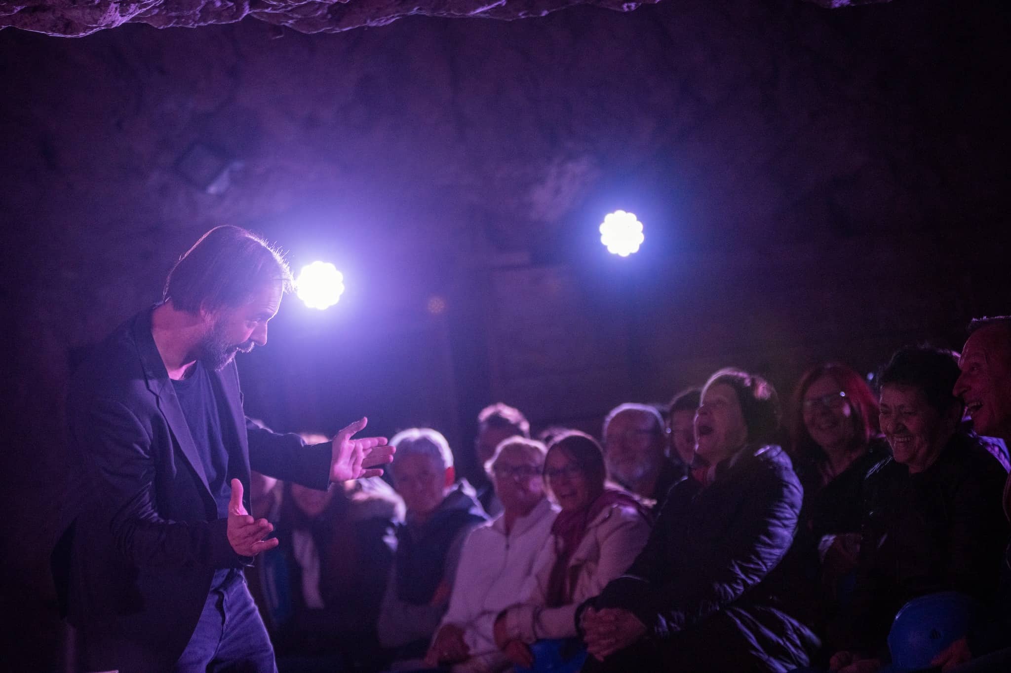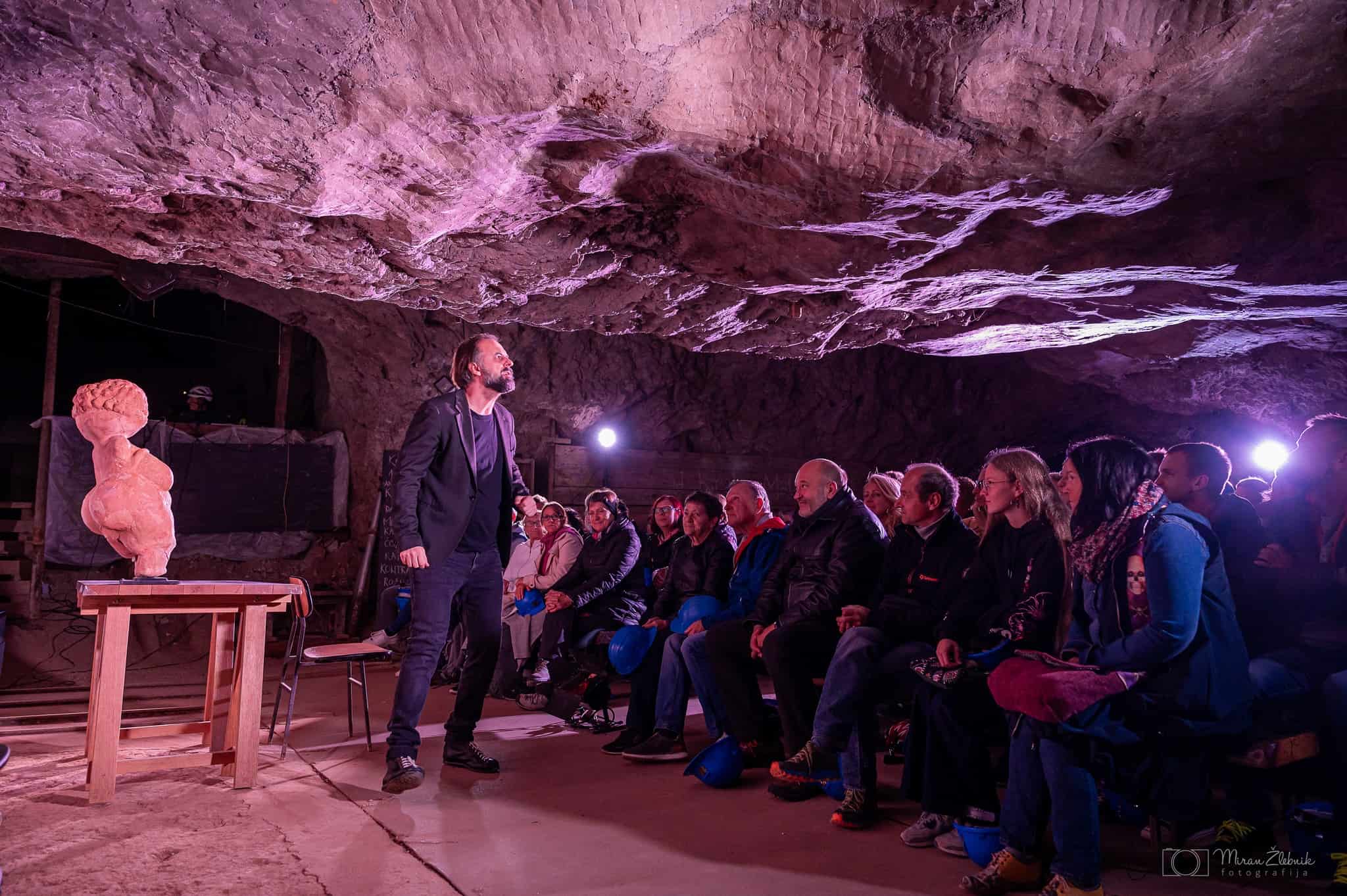 V petek, 13. oktobra 2023 so Narodni dom Mežica in Podzemlje Pece skupaj izpeljali kulturno-zabavni večer z monokomedijo Uroša Fürsta Jamski človek na unikatnem prizorišču “frlez cimer” na postaji Moreing več kot 500 metrov pod površjem.