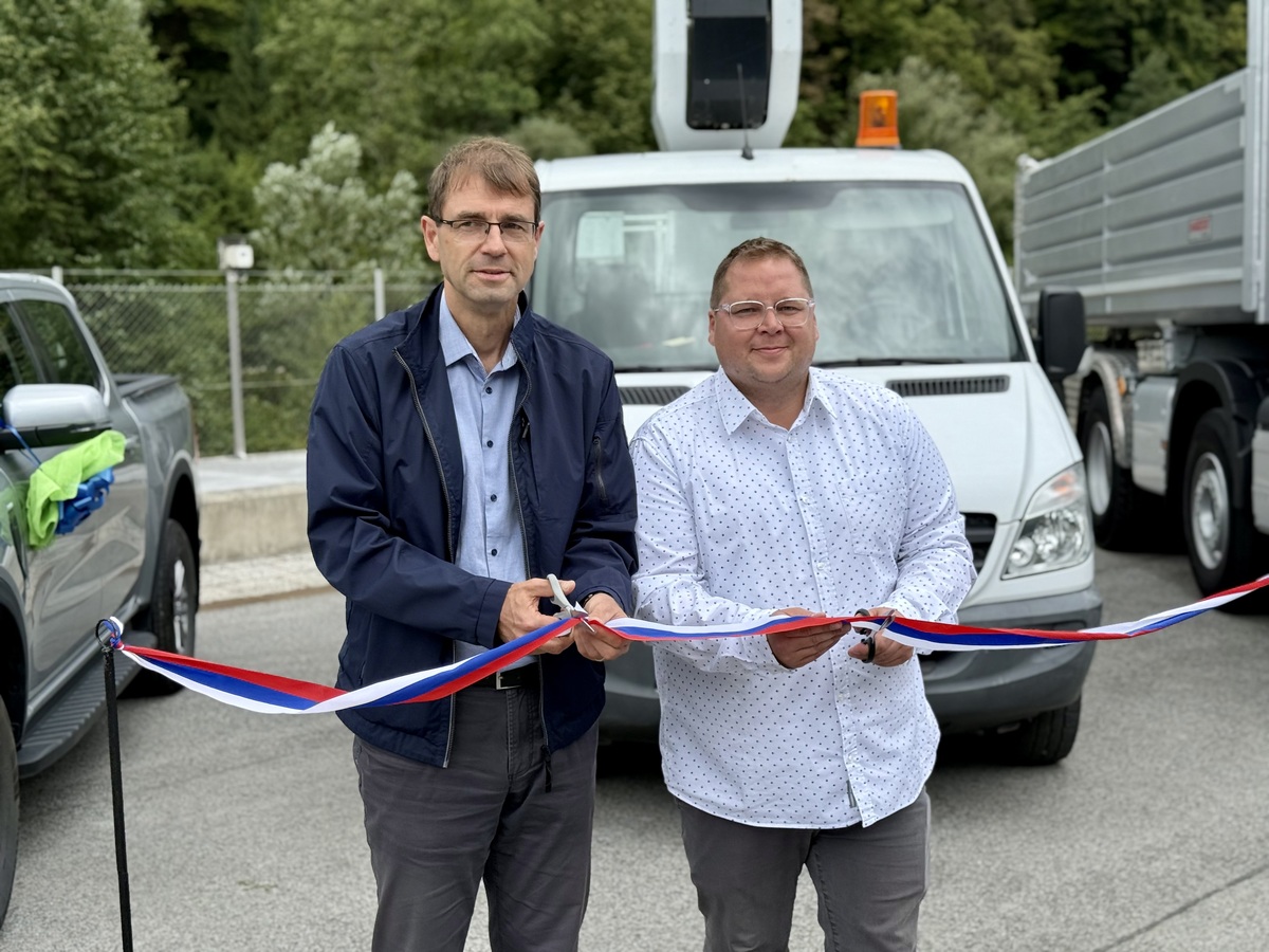Mehanizacijo sta s simboličnim prerezom traku namenu in uporabi predala župan Občine Ravne na Koroškem, dr. Tomaž Rožen in direktor JKP Ravne na Koroškem d. o. o., Miha Horvat.