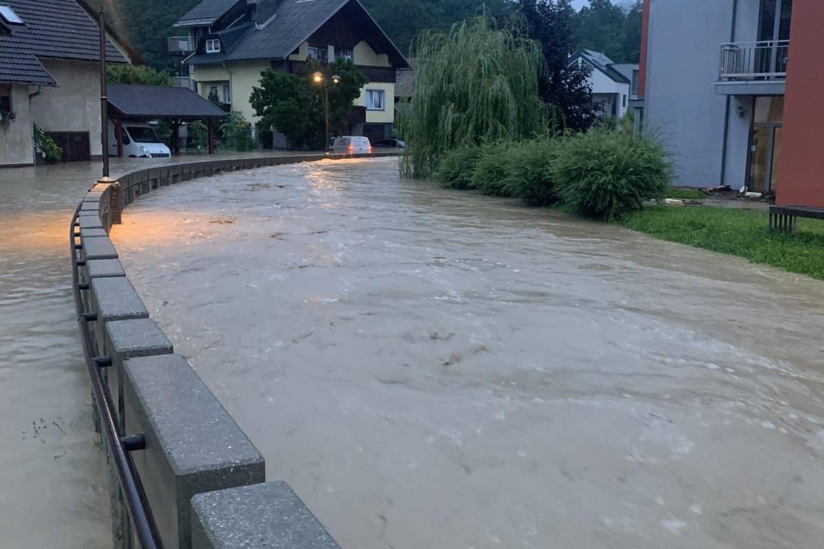 Ravne na Koroškem: mesto je pod vodo, zaprte so vse glavne prometnice, evakuirali so osem občanov, ostali so brez pitne vode. Meža še narašča.