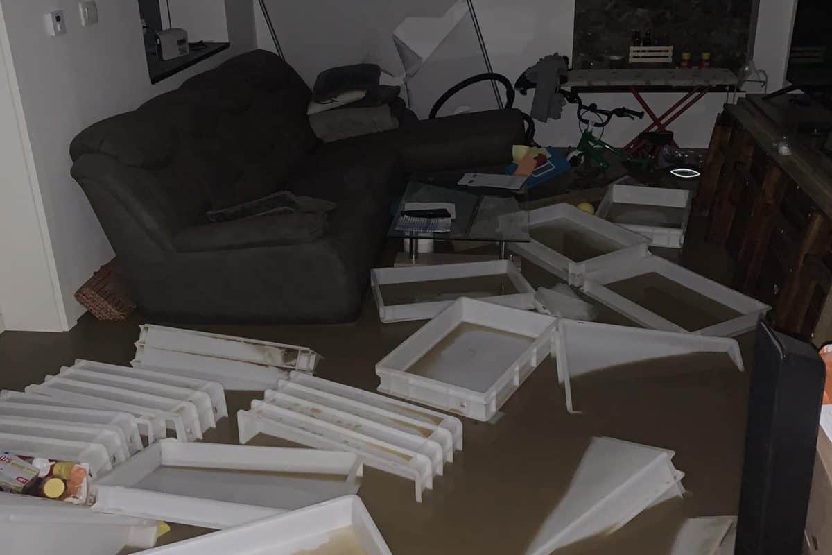 V Tolstem vrhu pri Ravnah na Koroškem pa voda naraslega potoka ogroža hišo.