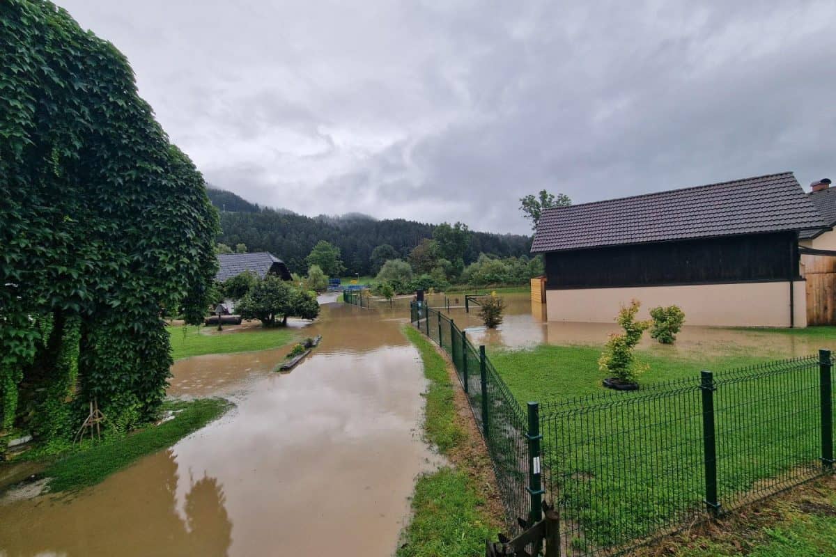 Na Mariborski cesti v Dravogradu meteorna voda ogroža stanovanjsko hišo. Tam je meteorna voda podrla betonsko škarpo in odnaša cesto. Zajezen je Ojstriški potok na Podgradu. Večja količina blata, kamenja in vode pa je na regionalni cesti v Svetem Boštjanu.