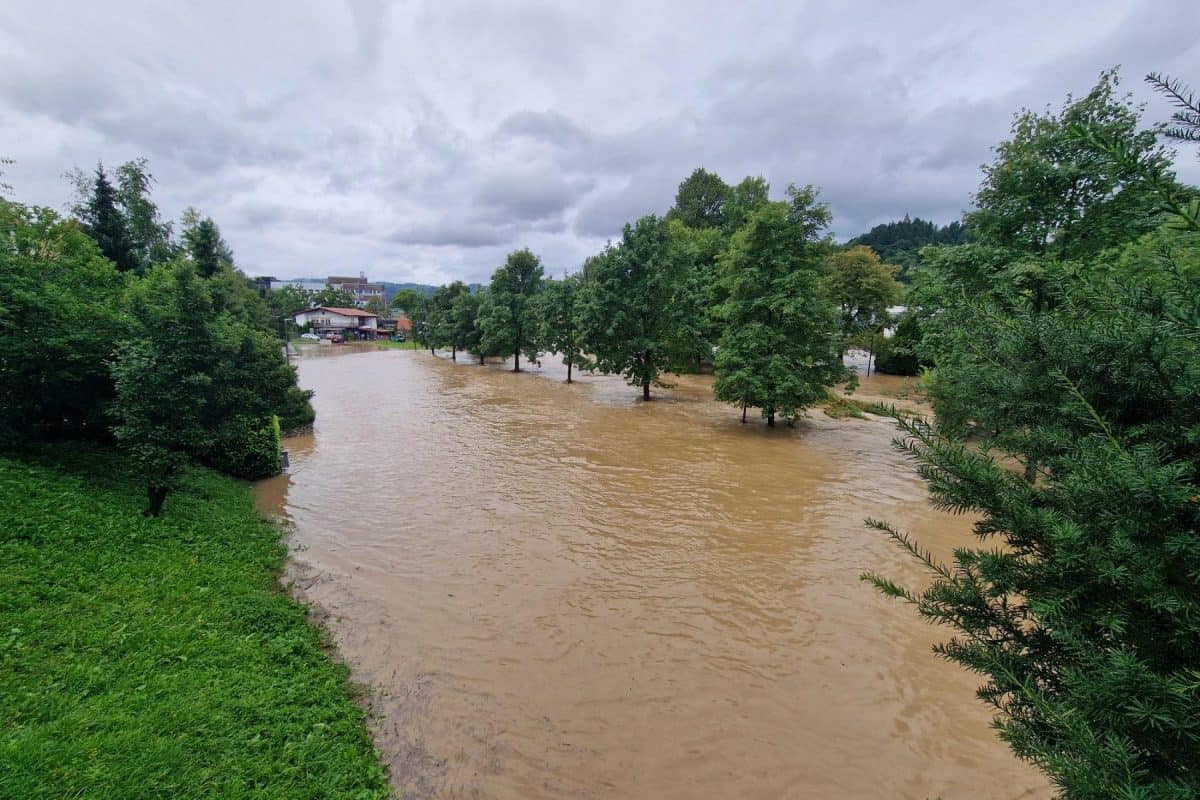 Dravograd: poplavlja Meža in odnaša vse pred seboj, ljudje v strahu, da bo bregove prestopila še Drava