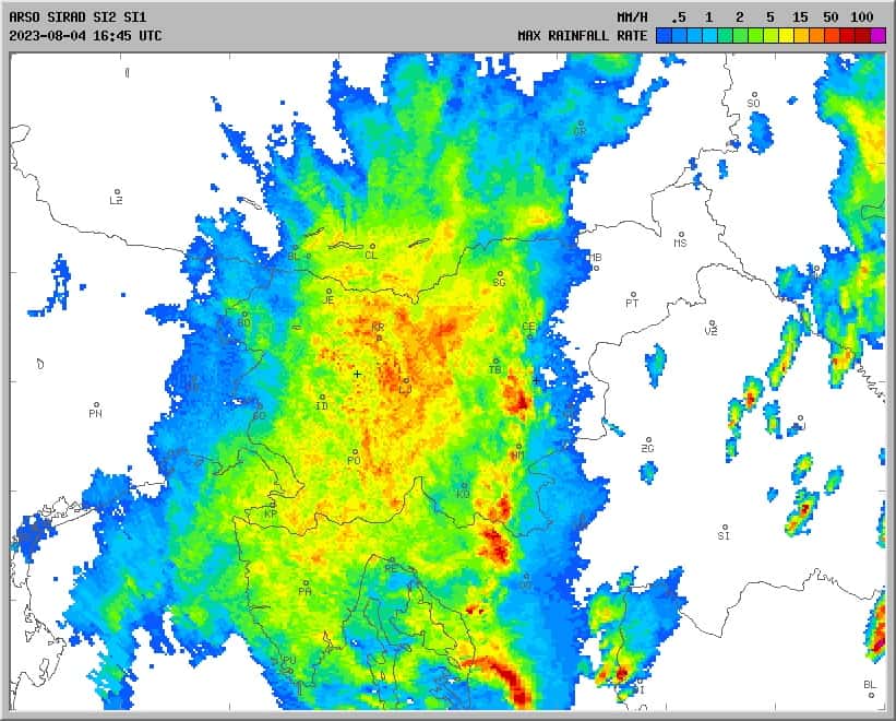 18:56: Kot kaže se ponovno proti Koroški pomika pas močnega deževja.