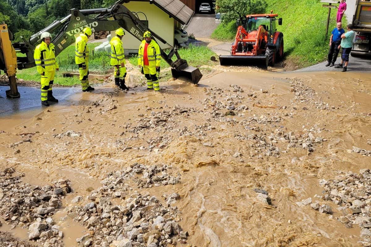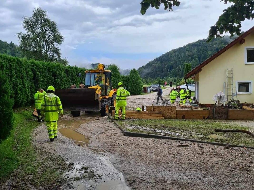 Prav tako so podobno sporočilo s slikami zapisali tudi gasilci PGD Prevalje: "Danes tako kot praktično vsak dan od 13.7. v gasilskem domu v znamenju intervencij. Pošteno utrujeni, naveličani, a uigrani smo od jutranjih ur pomagali občanom ob neurju, ki je zajelo našo občino. Na več lokacijah po občini smo odstranjevali podrta drevesa, črpali vodo, preusmerjali hudournike, izdelovali protipoplavne zaščite...Hvala JKP Log za pomoč z delovnim strojem."