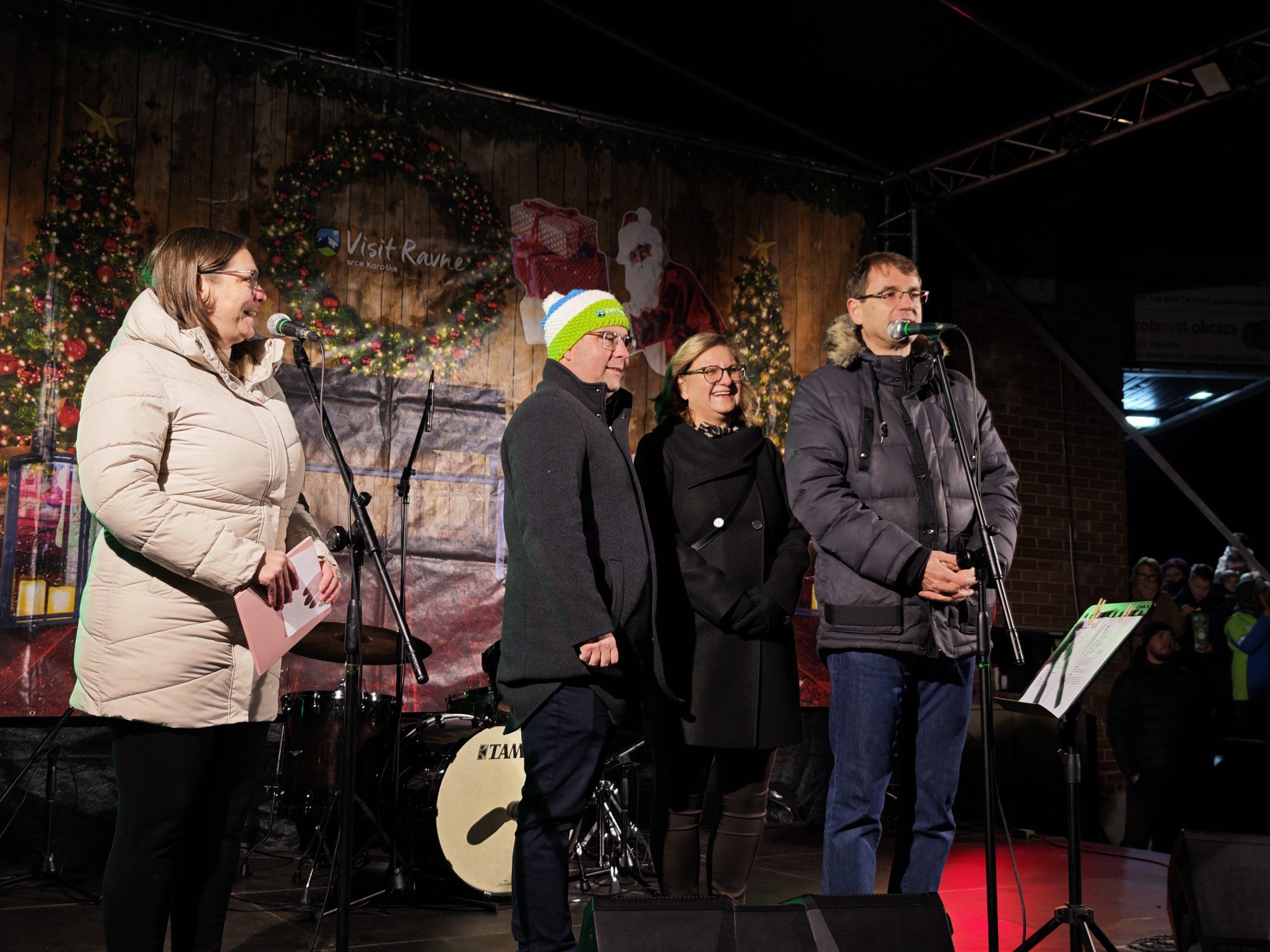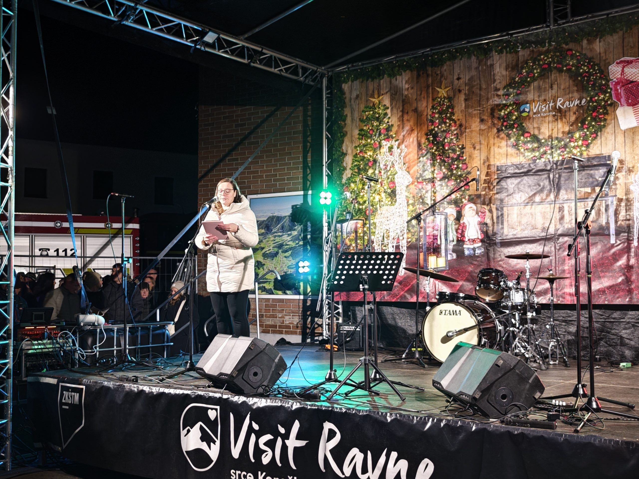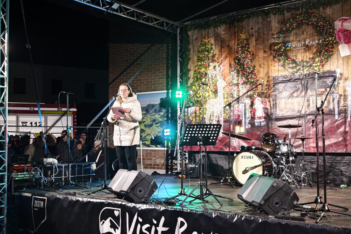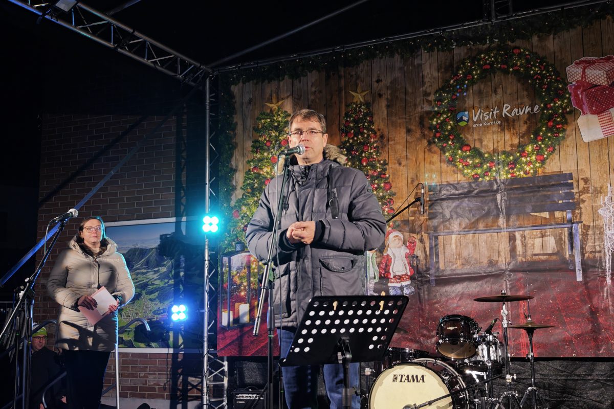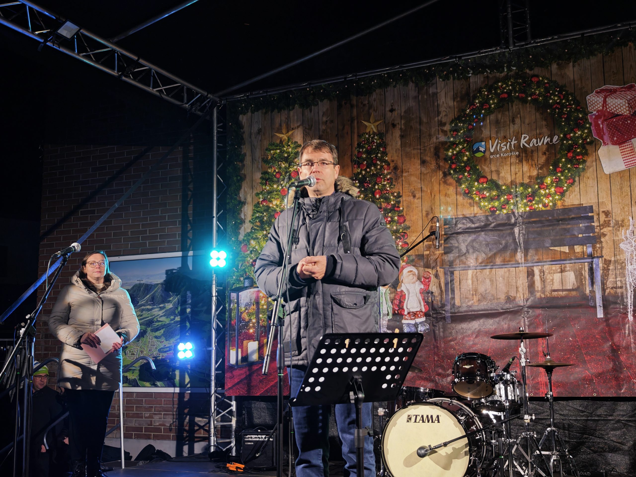 Zbrano množico sta ob začetku dogodkov Čarobnega decembra na Ravnah nagovorila tudi župan občine, dr. Tomaž Rožen in direktor ZKŠTM, Dejan Pandel, ki sta se vsem zbranim zahvalila, da so se zbrali v tako številčni množici. Vsem sta zaželela lep začetek najbolj prazničnega in čarobnega izmed vseh mesecev in zbrane povabila, da bi se še večkrat v tem decembru srečali na prizorišču na mestnem platoju. Zbrane pa je pozdravila tudi Metka Apohal, občinska svetnica, ki je skupaj z županom Roženom in Pandelom odštevala zadnjih deset sekund pred prižigom prazničnih lučk.