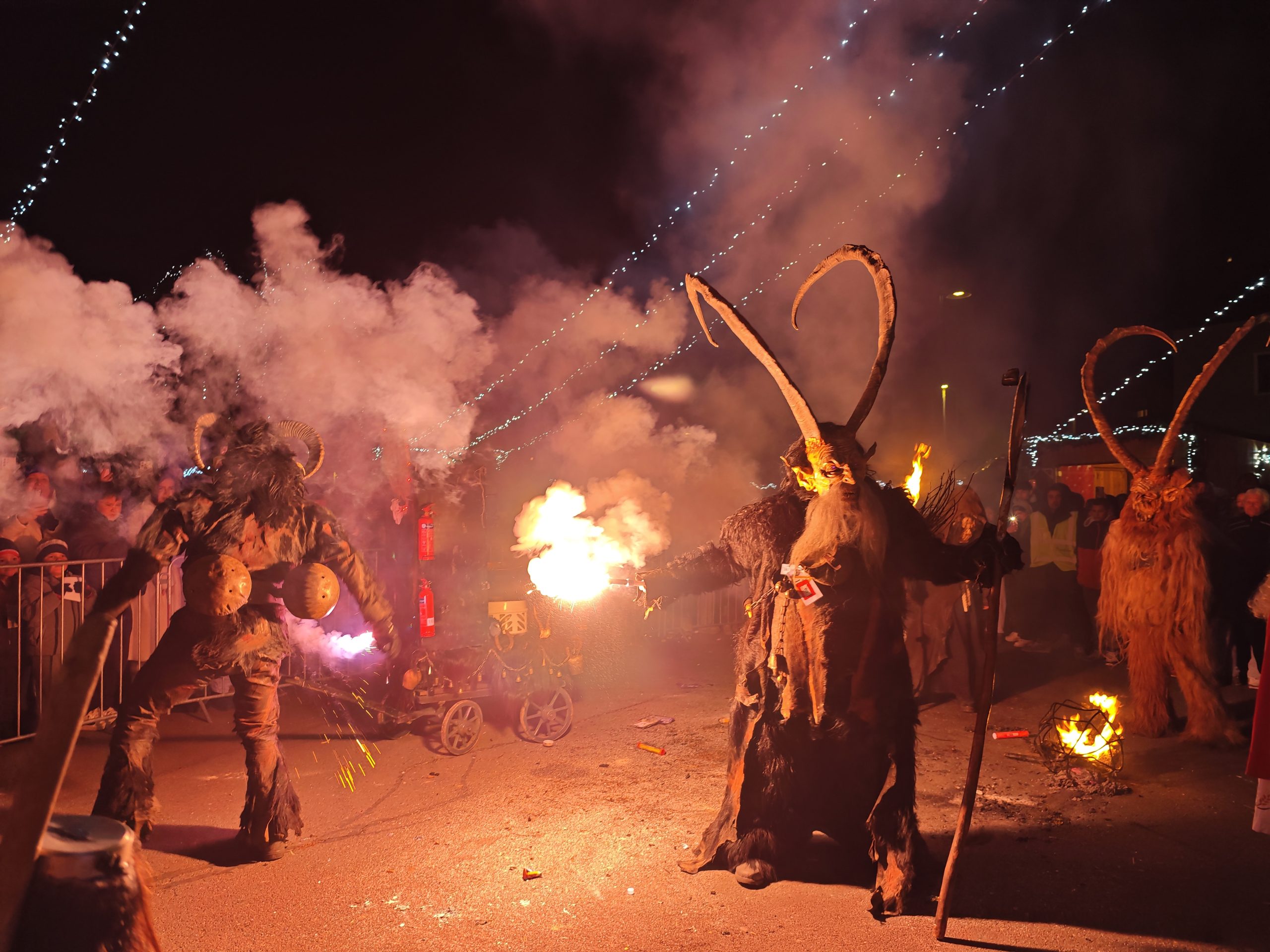 Za prav poseben, ognjeni spektakel pa so poskrbeli Krampusi, ki so na Ravne prišli iz Tallacha v sosednji Avstriji. Rote Teufel Tallach so s svojimi strašnimi pojavami nagnali nekaj strahu v kosti obiskovalcev, a se je kaj hitro izkazalo, da nikogar ne bodo odnesli, saj so bili vsi občani na Ravnah očitno dovolj pridni.