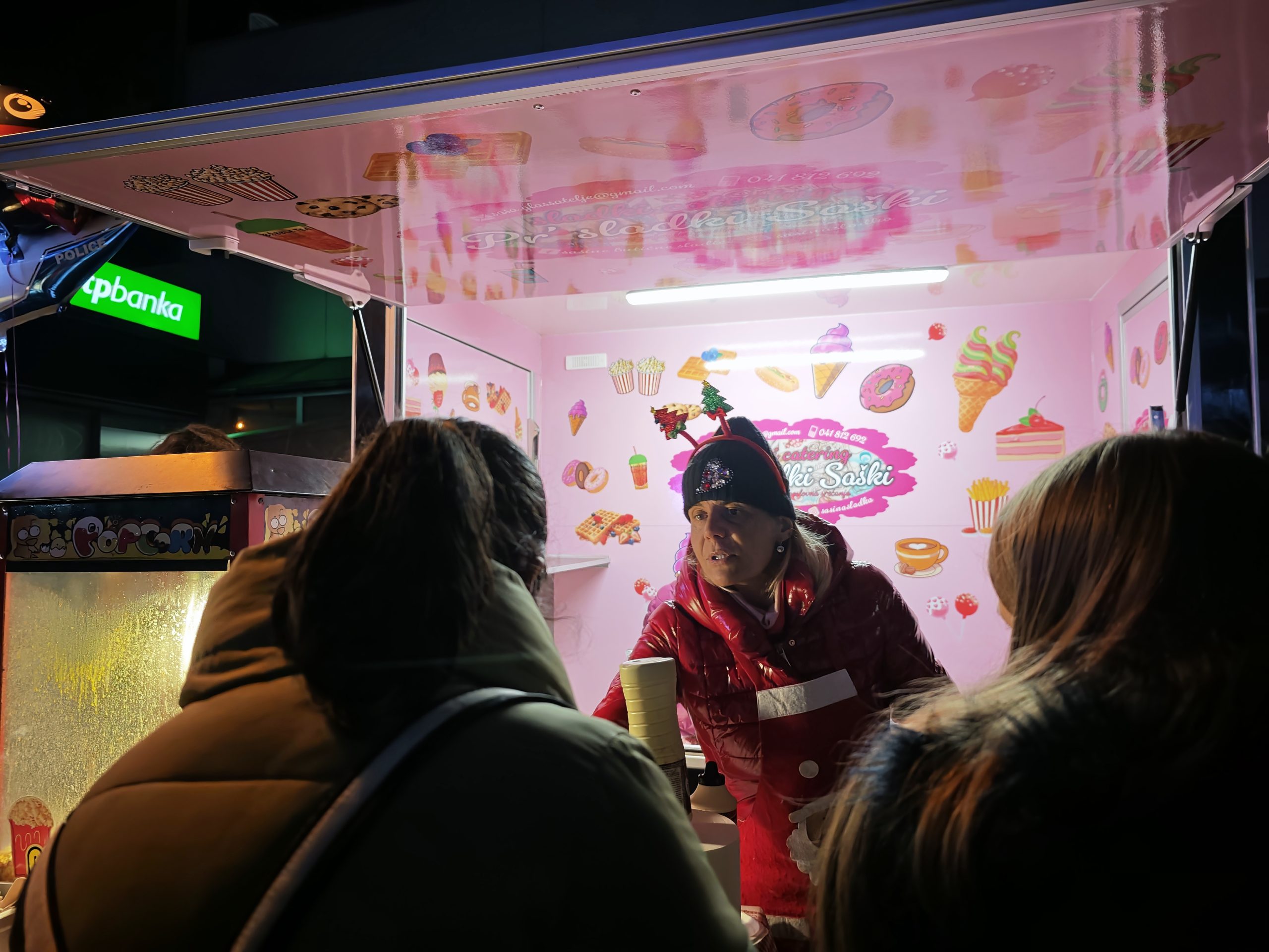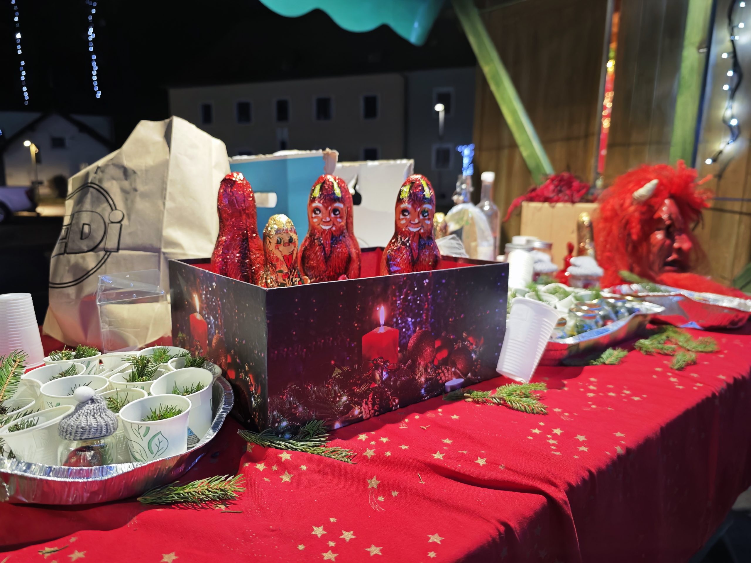 Za sladkosnede je na slavnostnem pričetku Čarobnega decembra poskrbela stojnica Pr’ Sladki Saški, ki je množico razvajala s palačinkami, vaflji, šmornom, vročo čokolado in peno. In tudi za tiste bolj žejne je bilo dobro poskrbljeno, saj so ob jurčkih dišali zakuhanček in vroč čaj s cimetom. Prav posebna poslastica pa je bil Tajflgravž, ki ga je zvaril sam peklenšček iz Prežihovega Pekla.