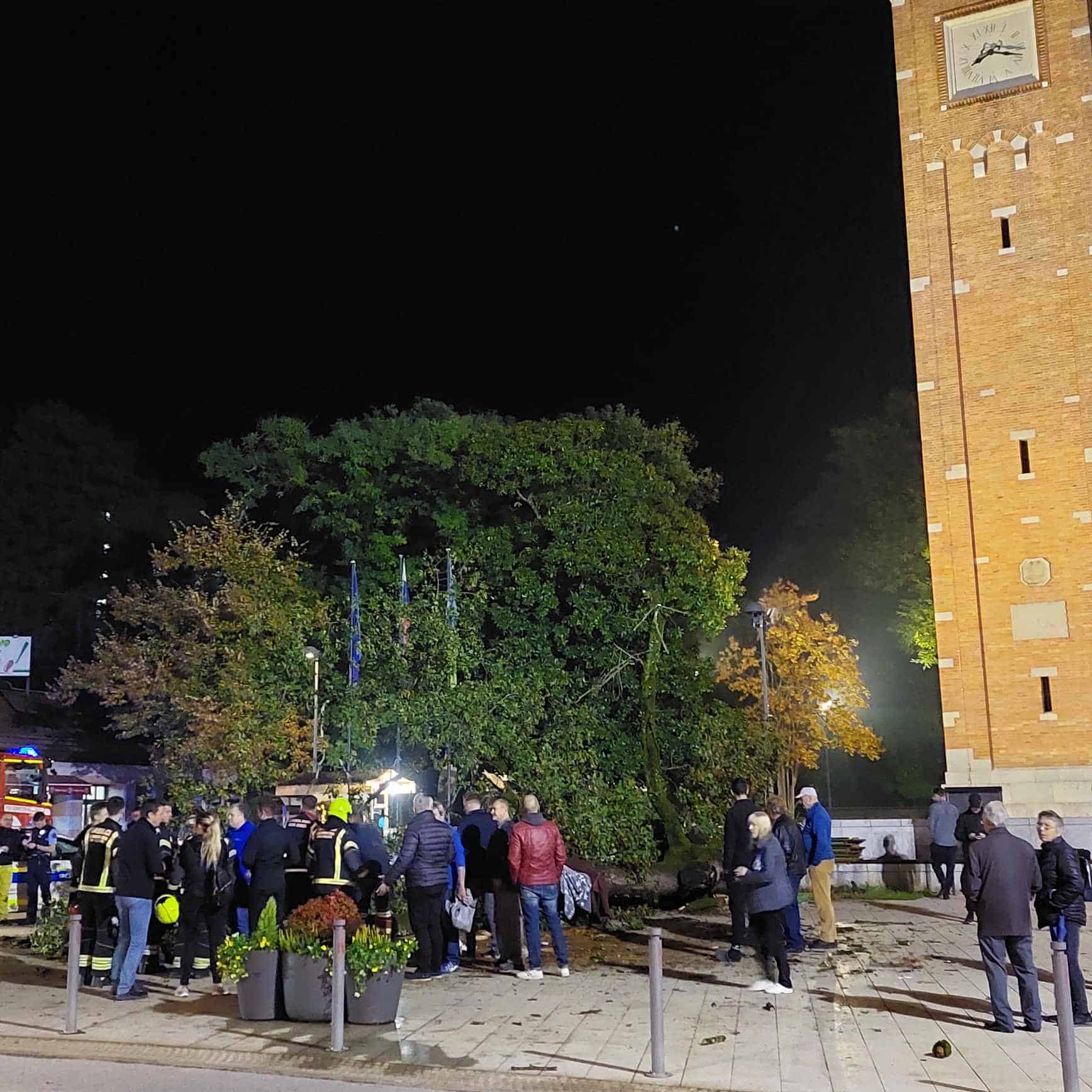 Na trgu v Šempetru pri Gorici je danes, 10. novembra 2023, potekalo Martinovanje. Veselo druženje se bi naj po neuradnih podatkih sprevrglo v nočno moro, saj se je podrlo drevo. Starejšo gospo naj bi oživljali.