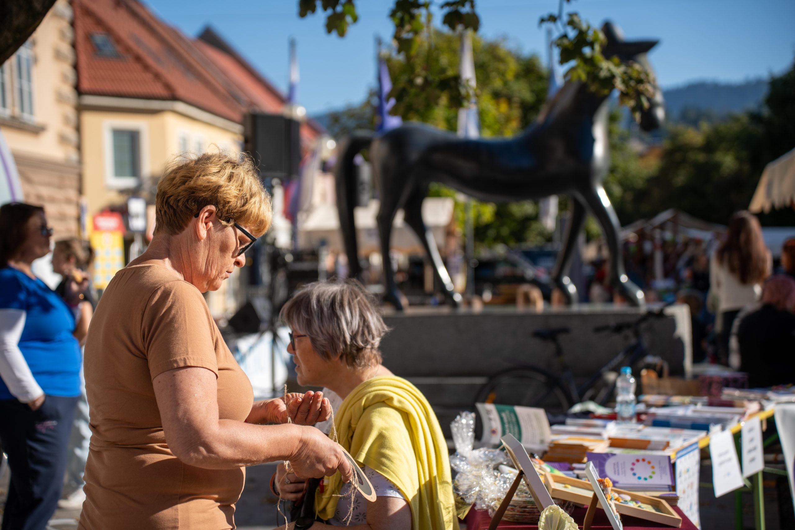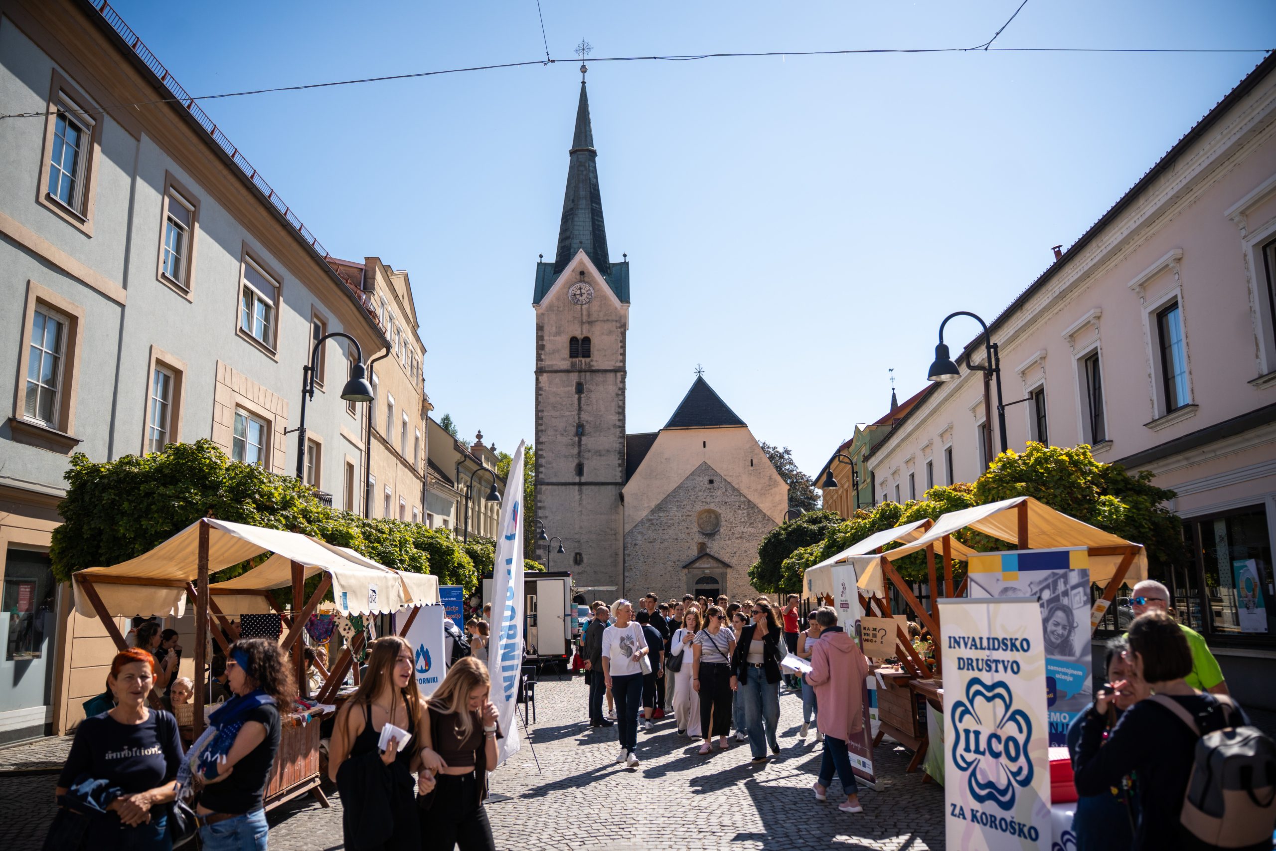 V središču Slovenj Gradca je danes že od jutra živahno. Od 9. ure dalje poteka 27. Mirovniški festival in 18. Festival drugačnosti, s katerima v mestu glasniku miru obeležujejo svetovni dan miru.