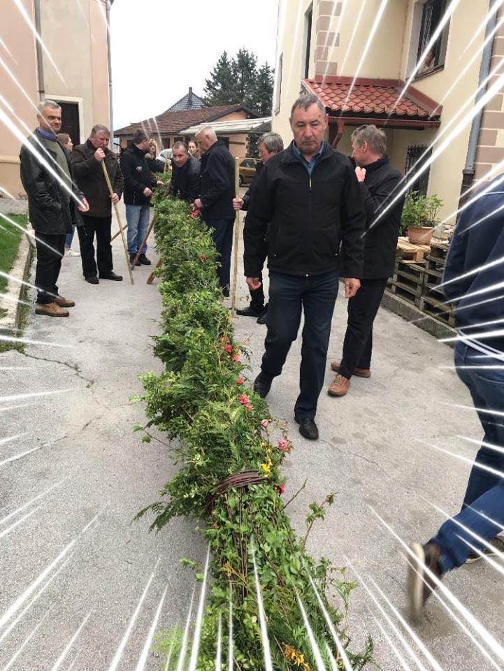 Posebej veselo pa je bilo na Dobravi ravno minuli konec tedna, ko so že tradicionalno k blagoslovu nesli kar 20-metrski pegl, ki ga je s skupnimi močmi izdelalo približno 30 članov društva, pri čemer ne gre zgolj za ohranjanje tradicije, ampak tudi za druženje.