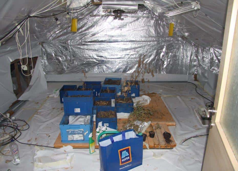 Na podstrešju stanovanjske hiše so našli prostor prirejen za gojenje konoplje in dobrih 11 kg posušene konoplje. Na bližnjem vrtu in v rastlinjaku so našli še 90 sadik konoplje, visokih okoli 2 m.