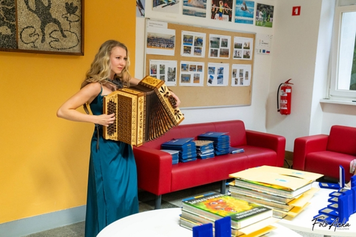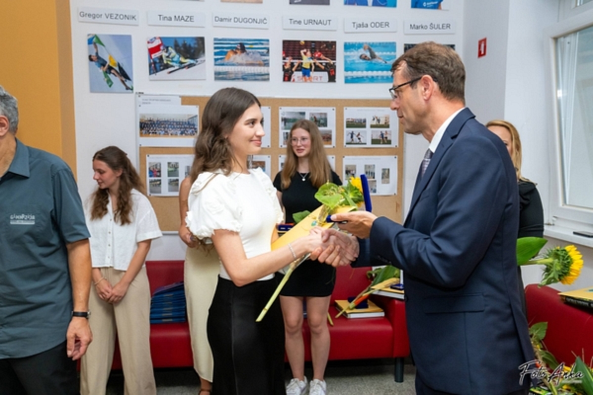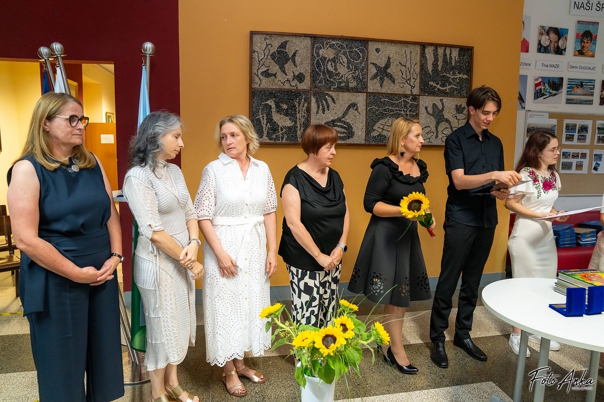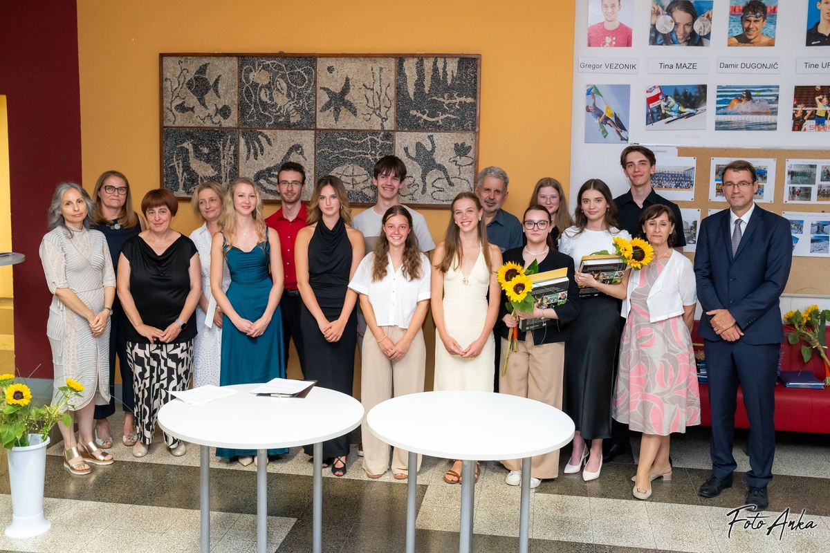Prireditev ob podelitvi spričeval so sooblikovali maturantke in maturanti Jan, Lucija in zlata maturantka ter izjemna, večkrat nagrajena harmonikarka, Danaja.