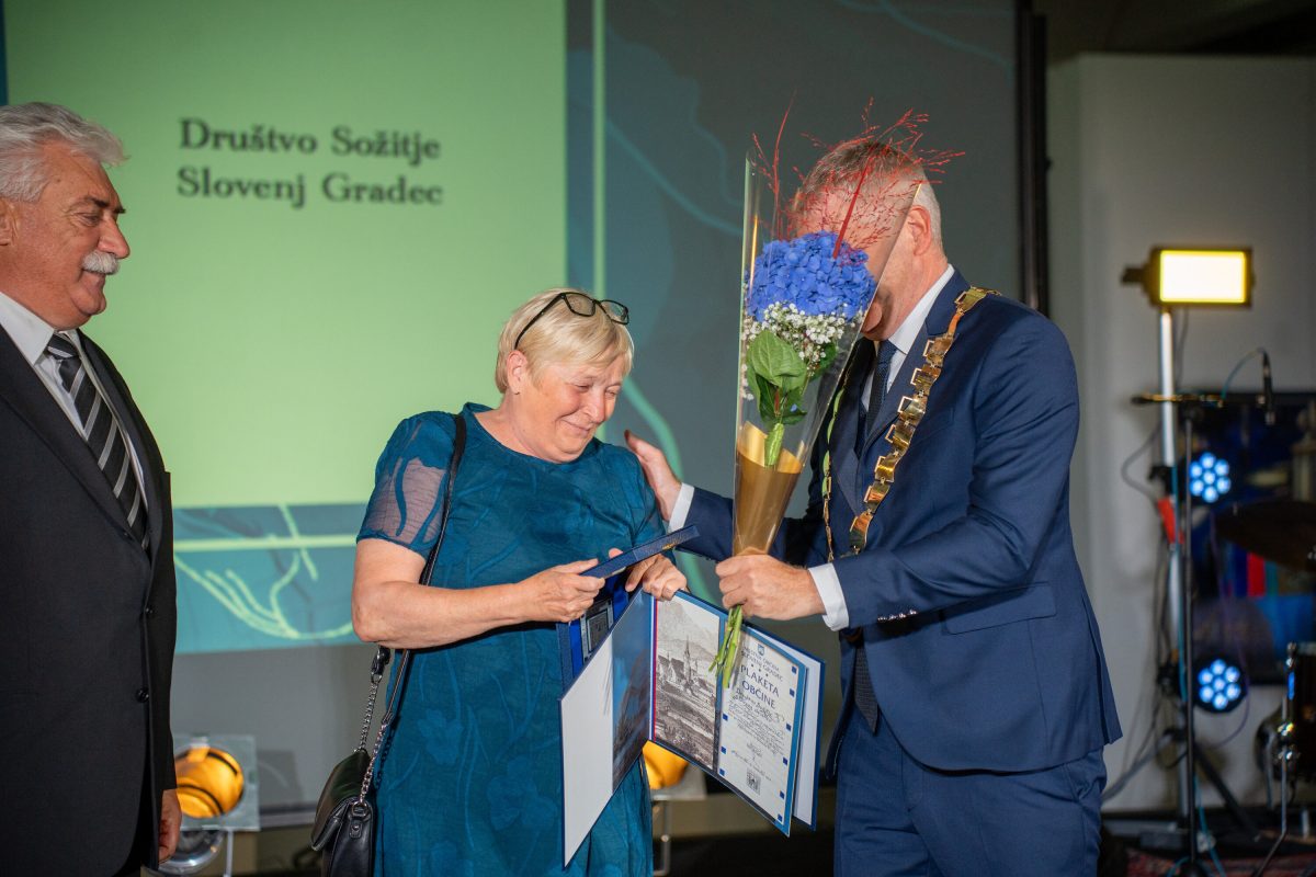 Plakete so prejeli Društvo Sožitje Slovenj Gradec, ki se že vrsto let predano posveča delu z osebami s posebnimi potrebami, Marija Pečolar za dolgoletno prostovoljno delo in prizadevanja na področju sociale ter Srednja zdravstvena šola Slovenj Gradec za pomemben prispevek k izobraževanju v lokalnem in širšem prostoru.