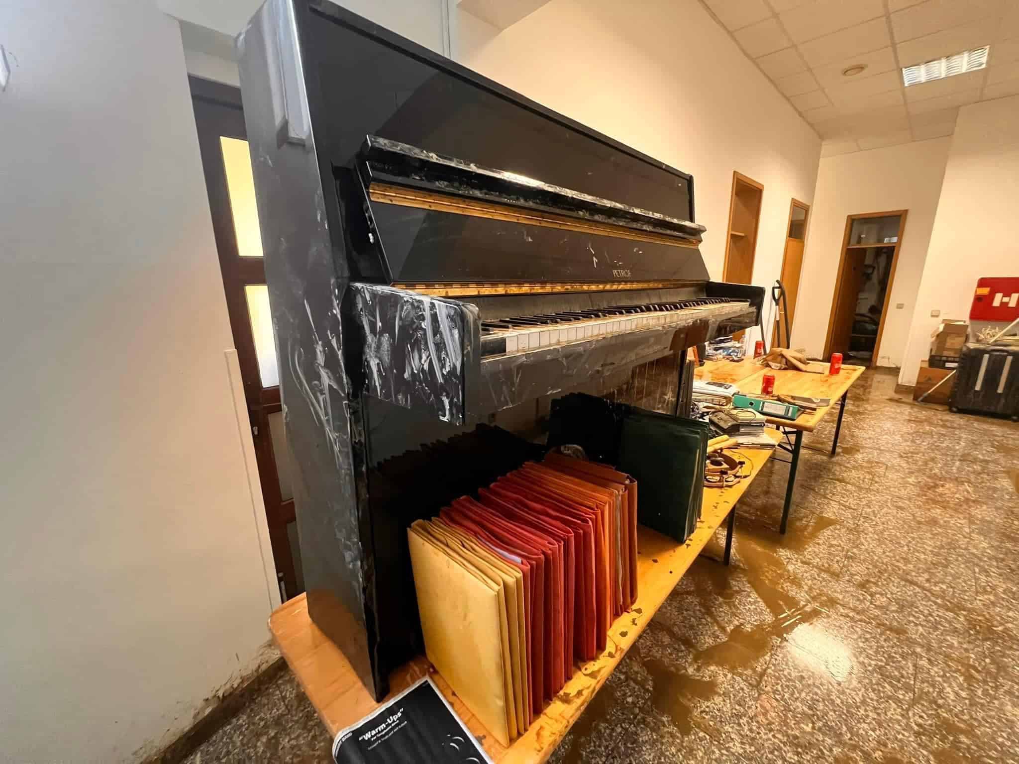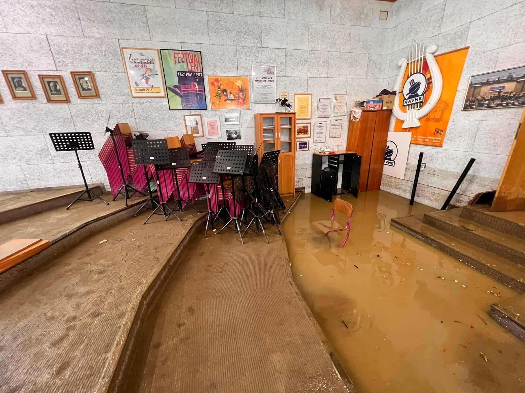Danes pa je bilo potrebno sprejeti kruto realnost o neizmerni moči vode. Hermanova/mladinska dvorana je najbolj poškodovana, uničen je tudi spodnji del arhiva not, večina rokopisov … Veliko dela jih čaka, da bodo zadeve spravili v normalne tire, a volja ostaja in v teh težkih časih ni predaje.