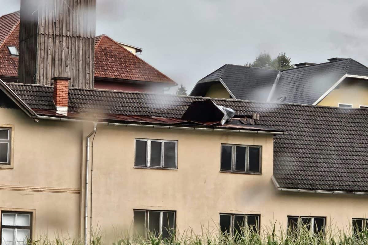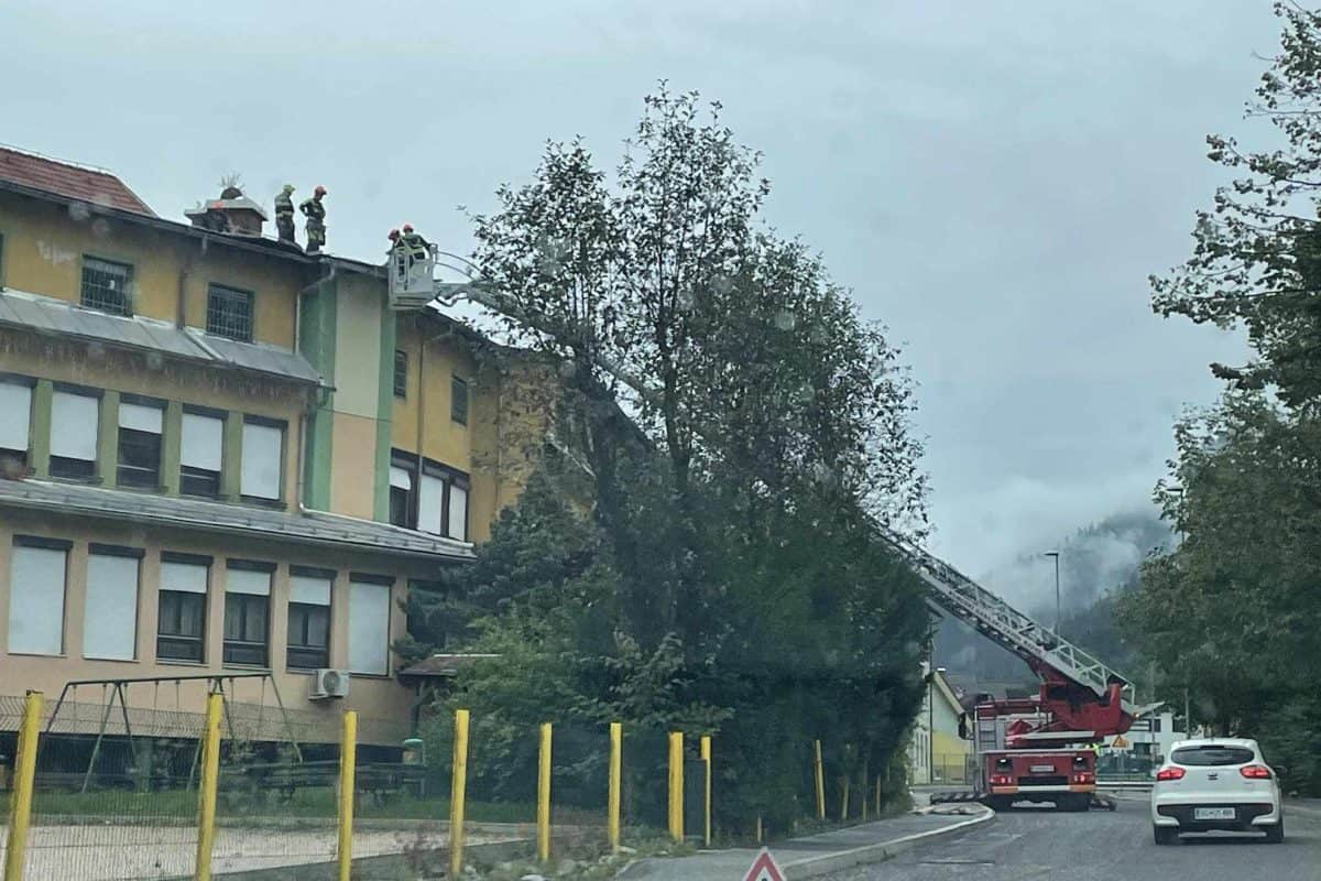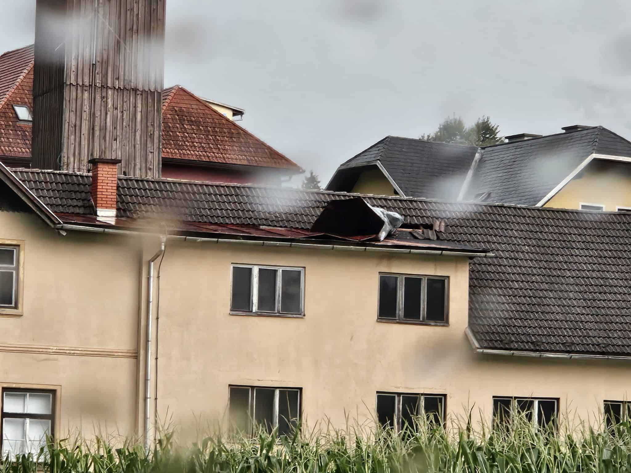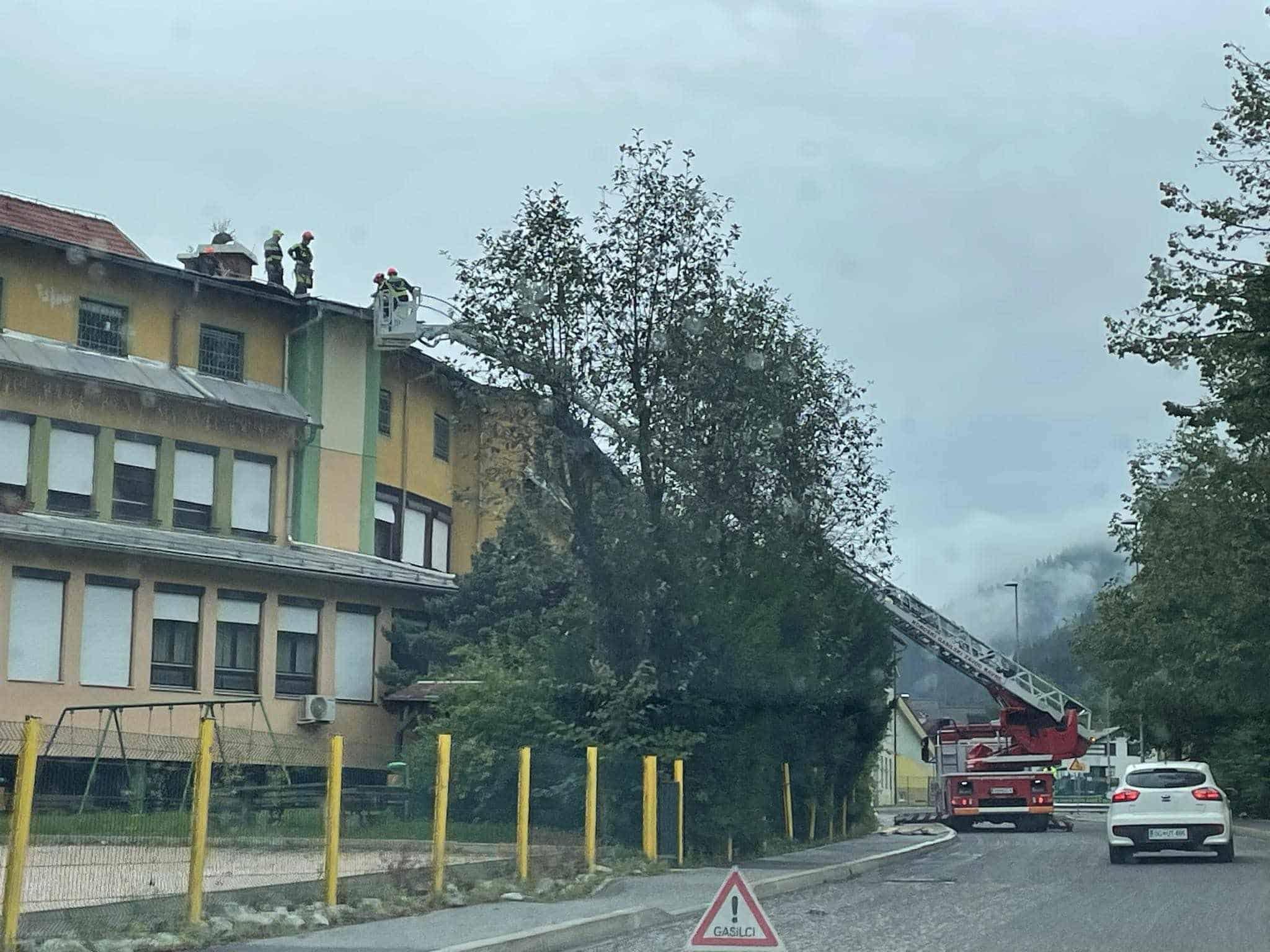 V Črni na Koroškem gasilci popravljajo streho na CUDV