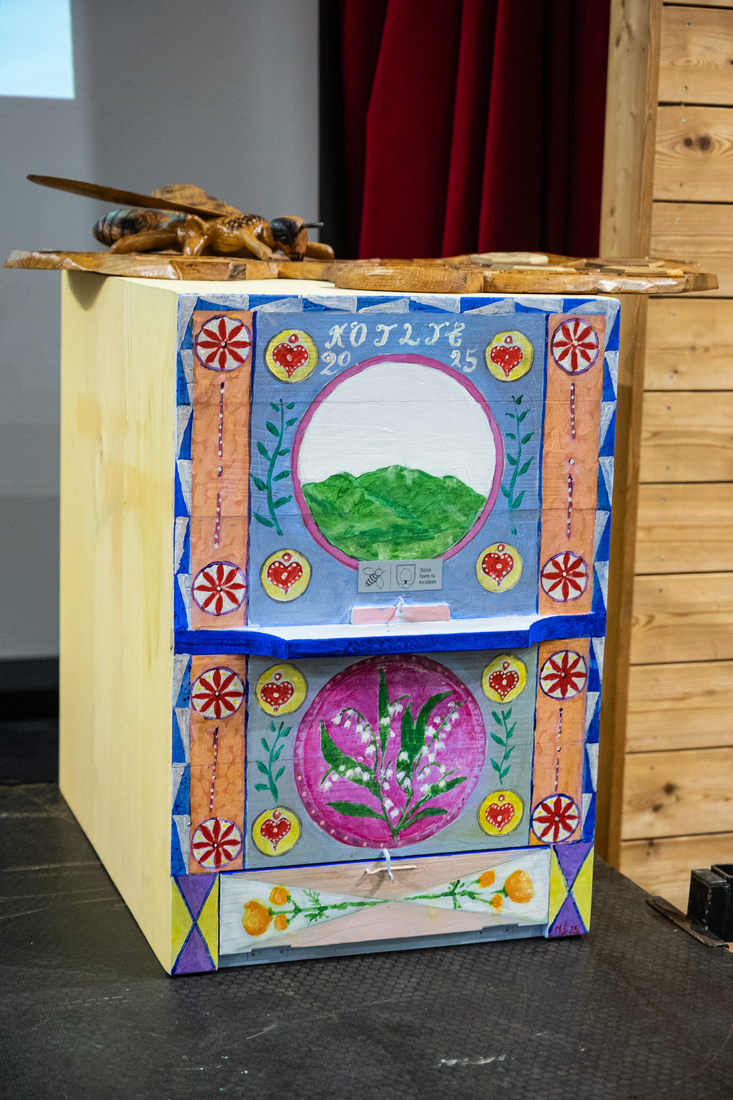 Sledila je predaja panja Čebelarskega Društva Kotlje, županu Občine Ravne na Koroškem dr. Tomažu Roženu, ki mu ga je predal najstarejši član Čebelarskega društva Kotlje Alojz Rožen. Panj je poslikal Akademski slikar Štefan Marflak.