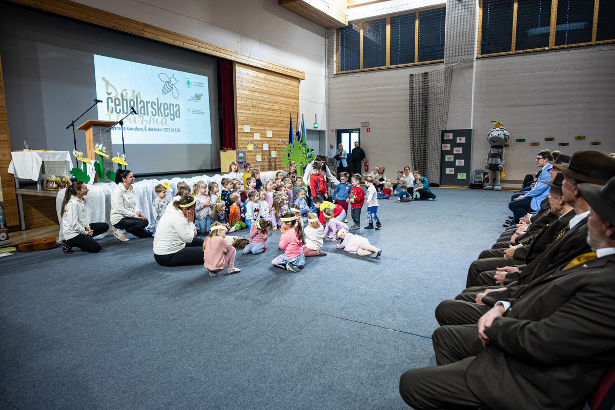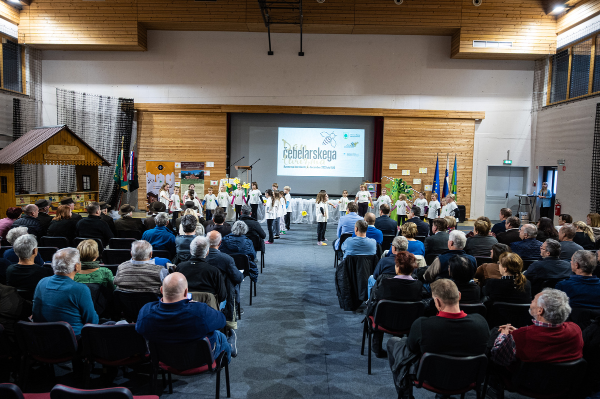 V uvodu so prisluhnili otrokom iz Vrtca Ravne, enote Levi Devžej Kotlje, ki so jih popeljali v njihov majhen svet čebel.