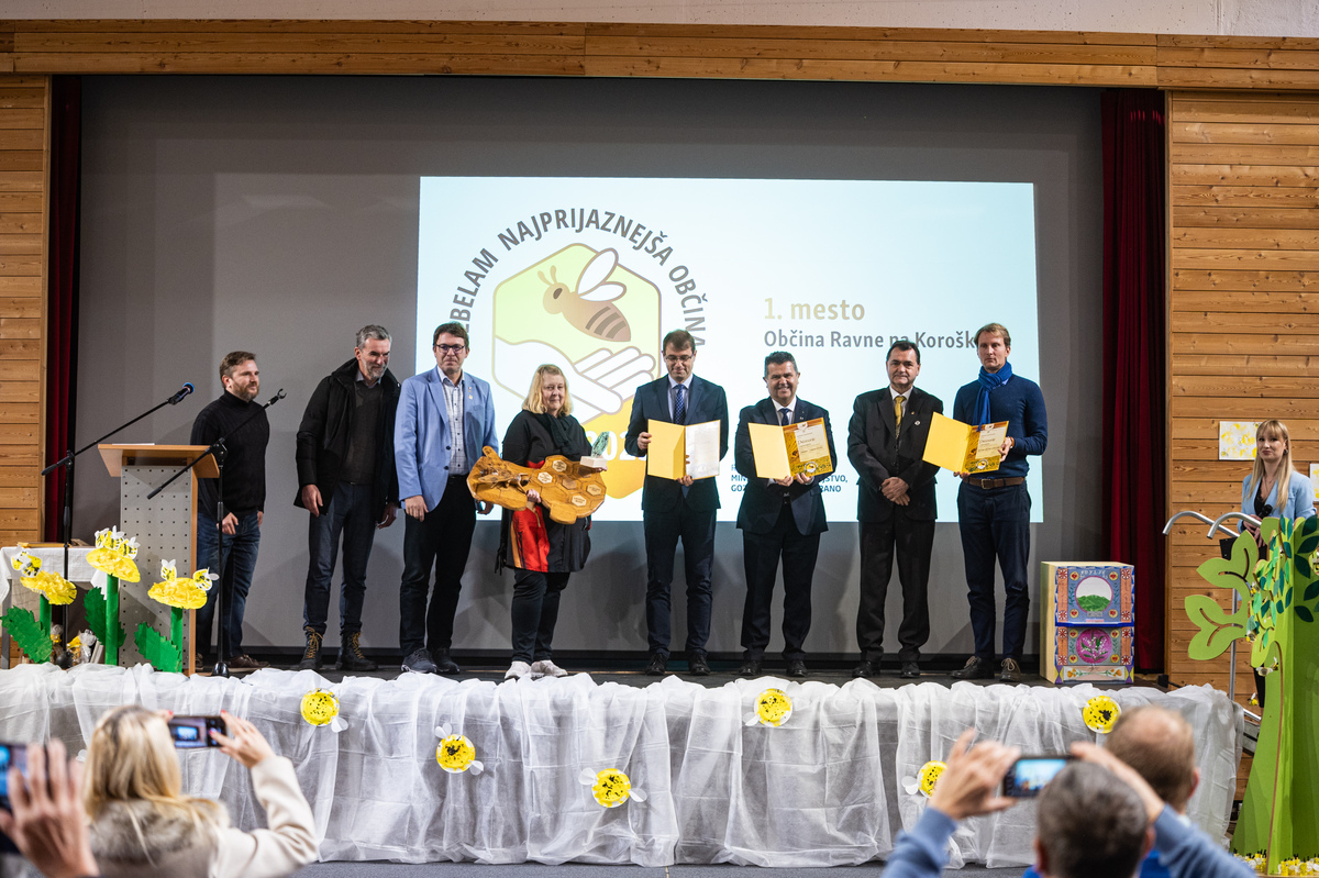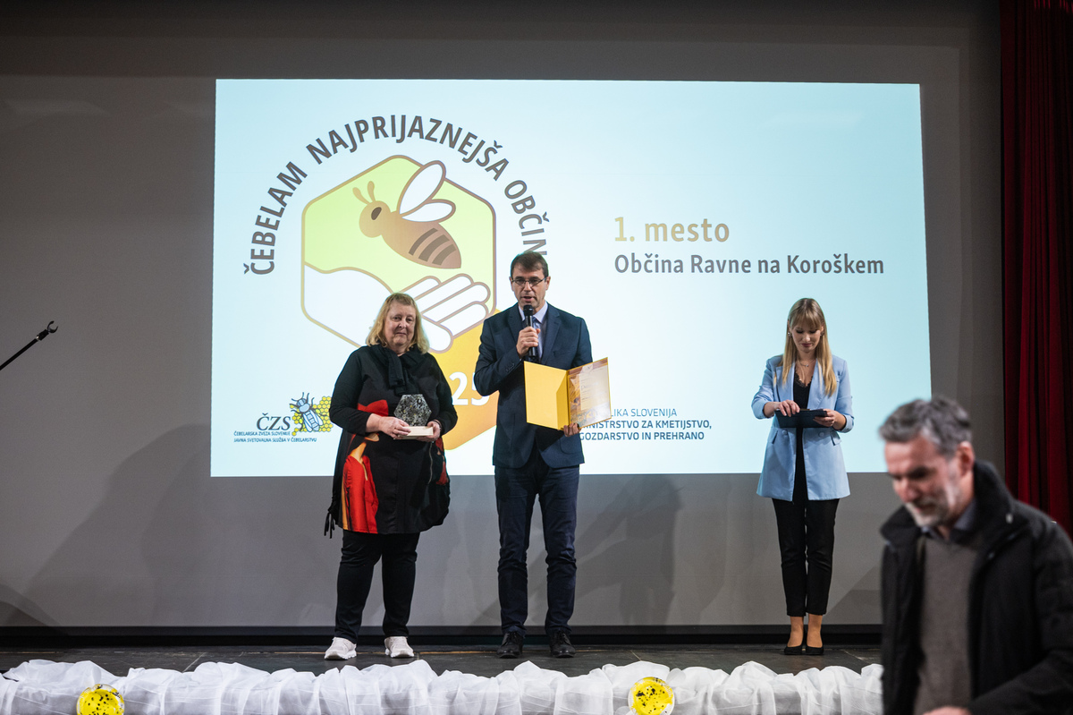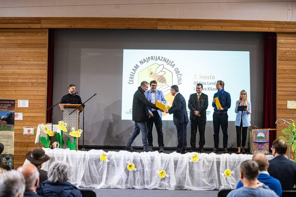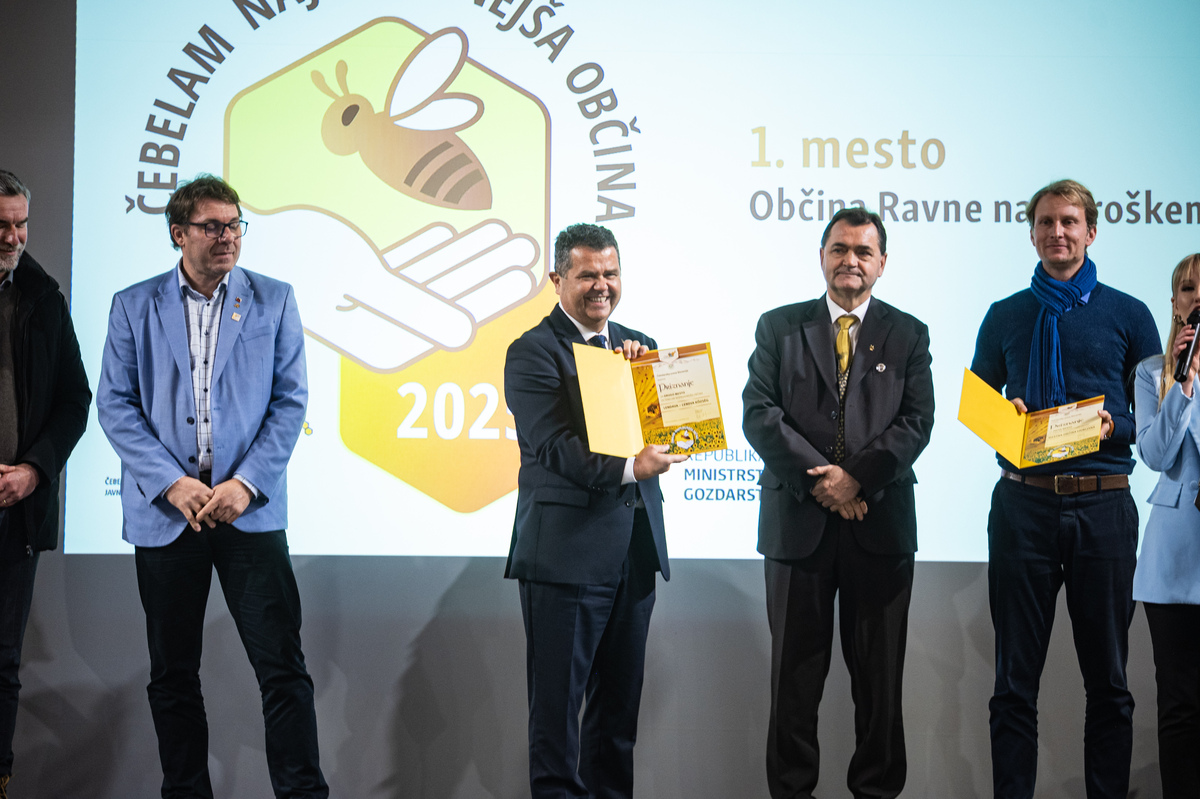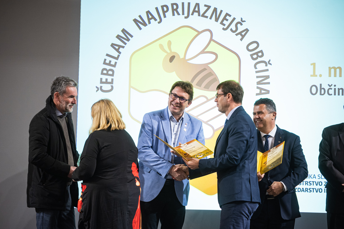 Priznanja sta podelila predsednik Čebelarske zveze Slovenije in Evropske čebelarske zveze Boštjan Noč in Rok Piletič in tako razglasila čebelam najprijaznejšo občino za leto 2025.