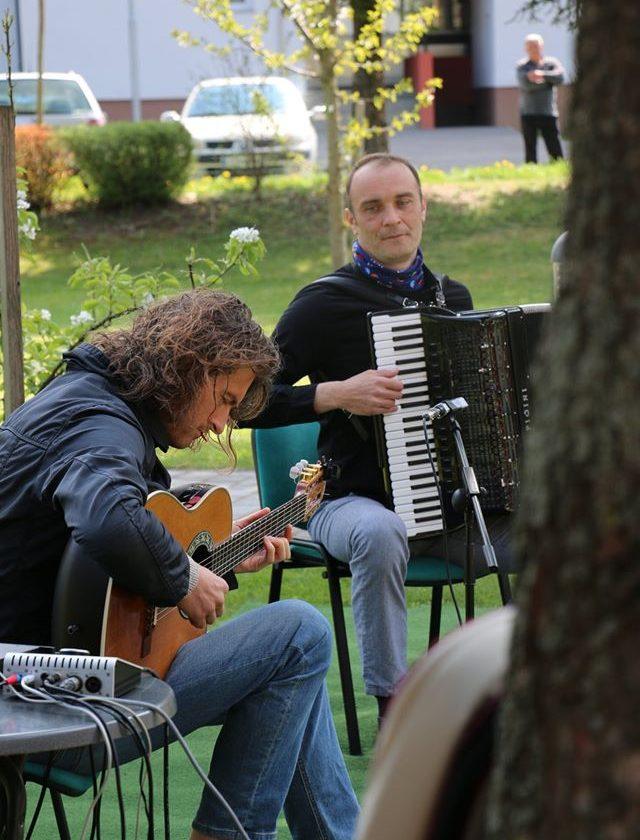 Danes, sedeminštirideseti dan izolacije sta v slovenjgraškem domu starostnikov stanovalcem dan popestrila izjemna glasbenika Andrej Ofak in Borut Mori. Stanovalce je tako na balkone privabila dobra glasba in prijetno sončno vreme.
