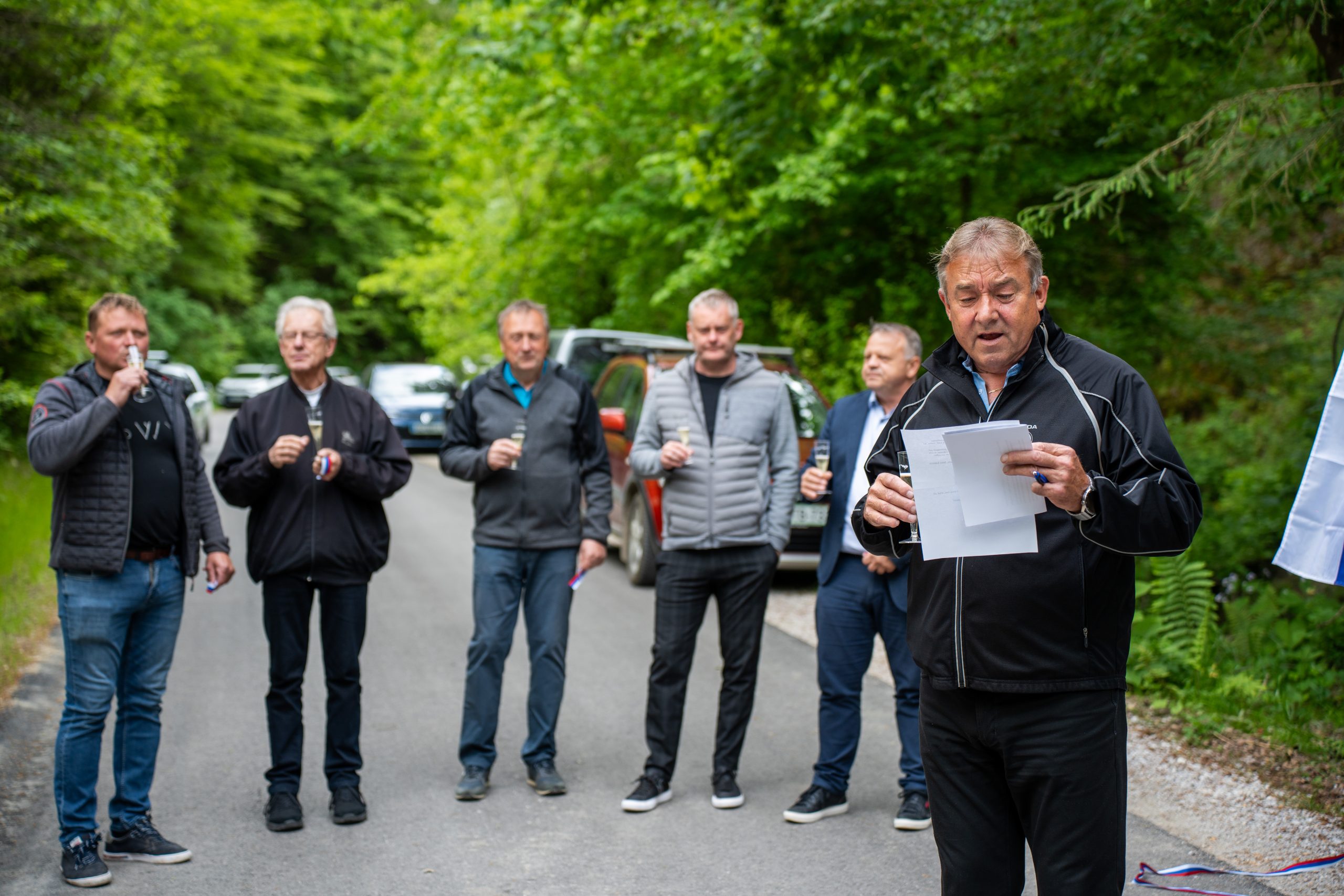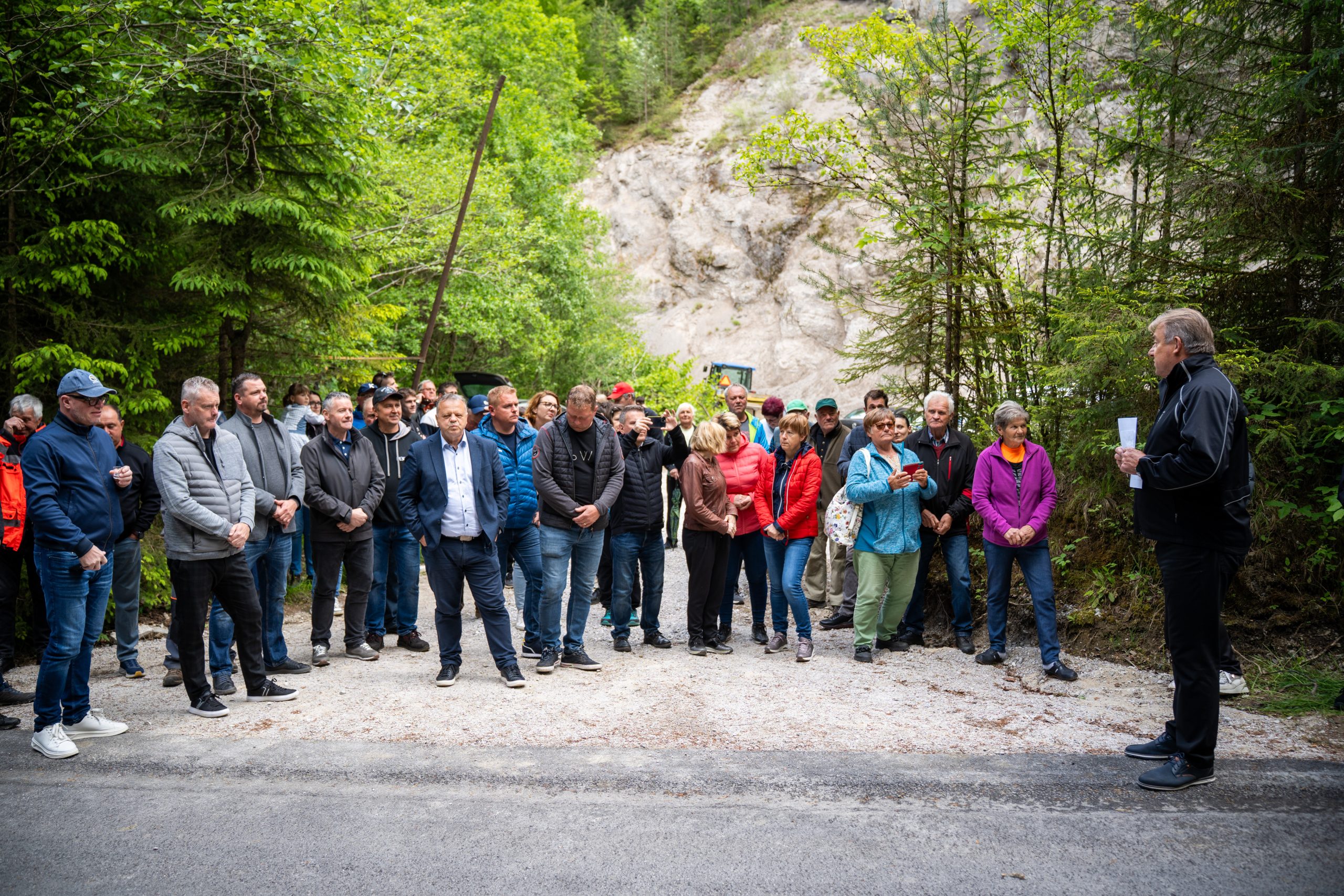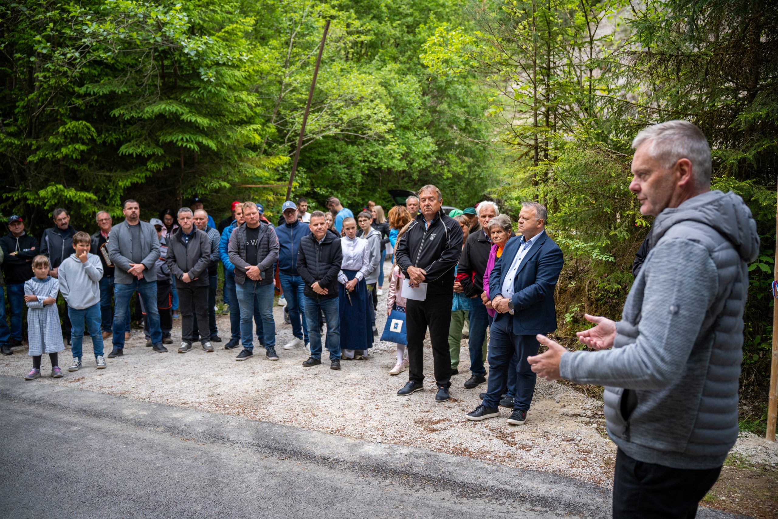 Župan Občine Mislinja Bojan Borovnik je vse zbrane pozdravil, med drugim je še posebej pozdravil župana MO Slovenj Gradec Tilna Kluglerja in dejal, da brez njegove pomoči, ne bi uspeli: "Dolgo časa smo se pogovarjali in se dogovarjali, da bi bila ta cesta asfaltirana. Naravna nesreča, ki se je zgodila leta 2023 je tudi doprinesla, da je cesta danes asfaltirana. Na tem mestu, bi se rad zahvalil vsem krajanom za potrpežljivost ter izvajalcem."