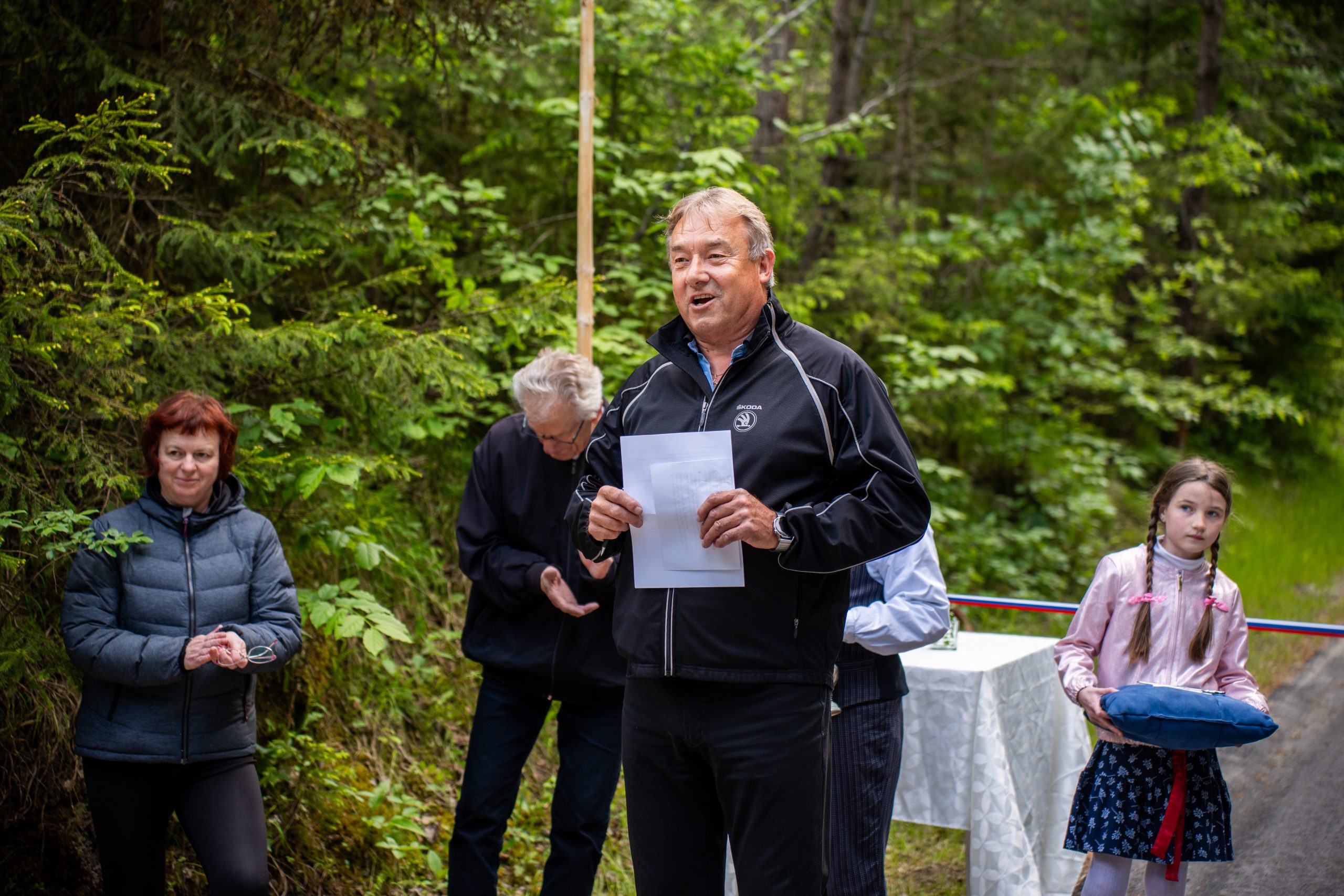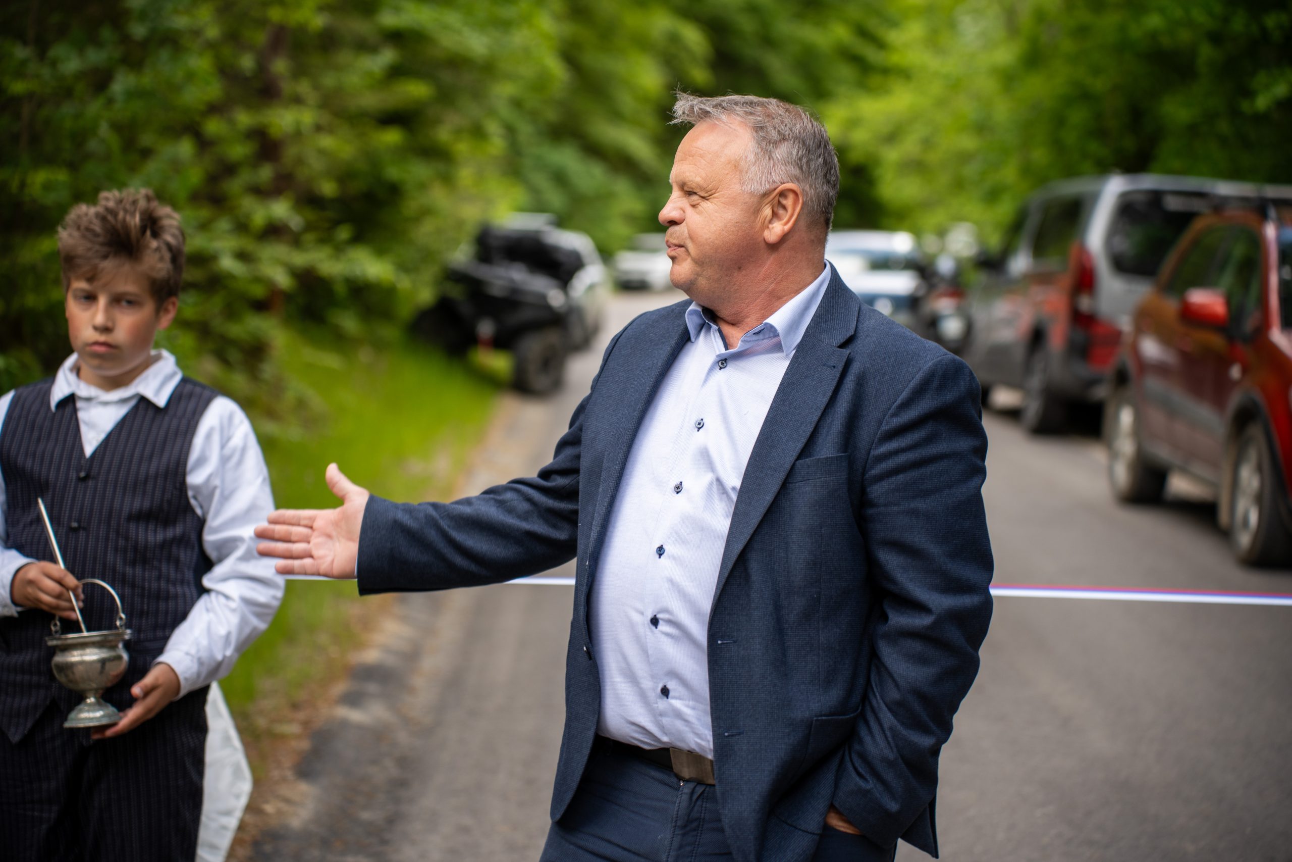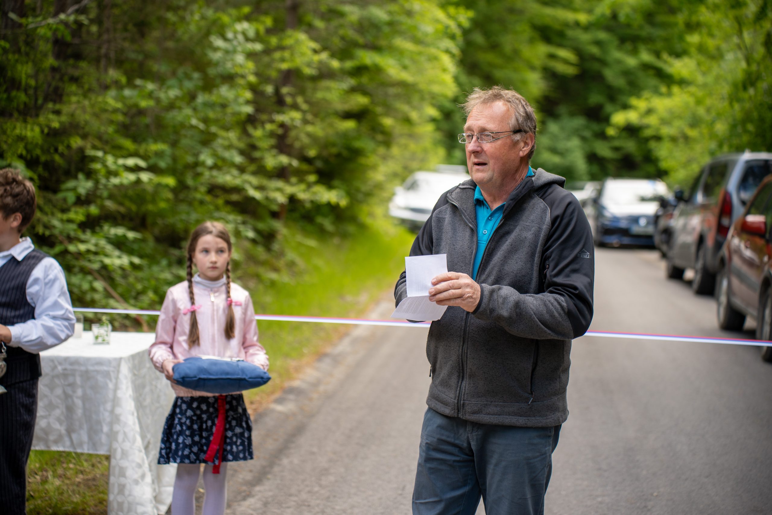 Župan Občine Mislinja Bojan Borovnik je vse zbrane pozdravil, med drugim je še posebej pozdravil župana MO Slovenj Gradec Tilna Kluglerja in dejal, da brez njegove pomoči, ne bi uspeli: "Dolgo časa smo se pogovarjali in se dogovarjali, da bi bila ta cesta asfaltirana. Naravna nesreča, ki se je zgodila leta 2023 je tudi doprinesla, da je cesta danes asfaltirana. Na tem mestu, bi se rad zahvalil vsem krajanom za potrpežljivost ter izvajalcem."