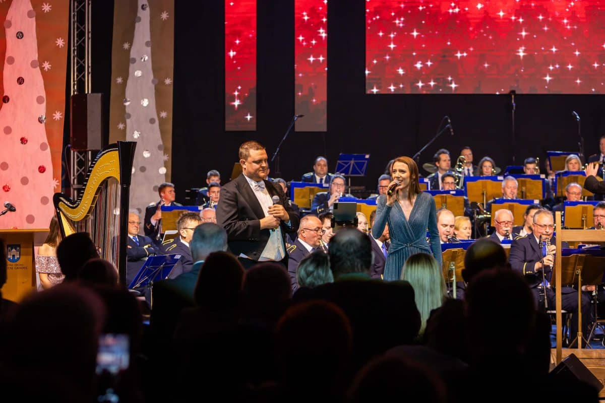 Bogat glasbeni program, ki ga je priredil nepogrešljivi Pihalni orkester Slovenj Gradec in ga tudi tokrat odigral pod budnim očesom maestra Petra Valtla, sta dodatno popestrila vrhunska glasbena gosta in sicer Monika Avsenik Langus ter David Čadež. Njuna vokala sta ob spremljavi domačega orkestra resnično božala srca v dvorani, slišali smo: Sveto noč, Vivo per lei, Tam kjer murke cveto, Nessun dorma in mnoge druge ... Neponovljivi aplavzi navdušenega občinstva kar niso imeli konca.