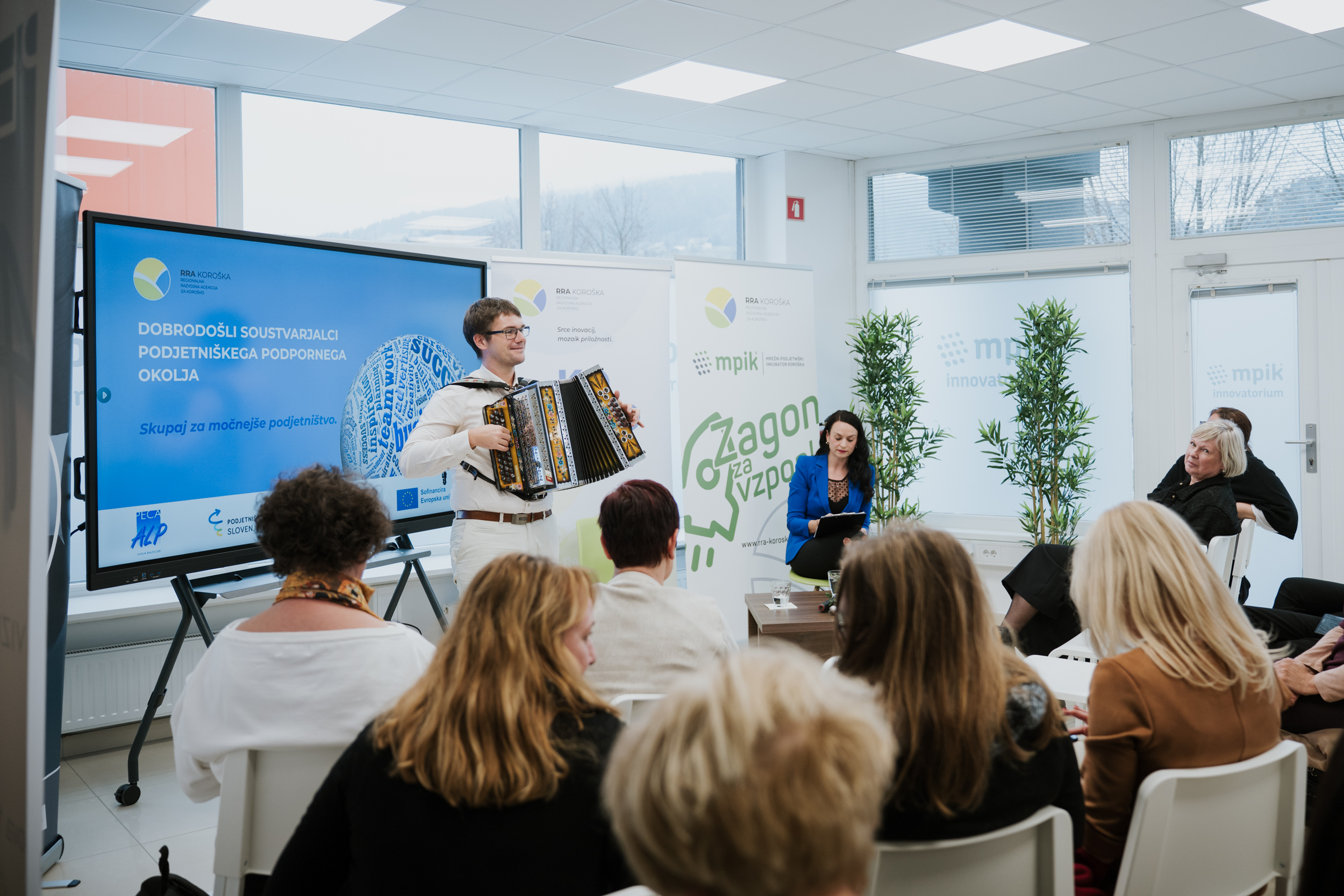 Udeleženci so imeli priložnost prisluhniti navdihujoči podjetniški zgodbi proaktivnega in uspešnega podjetnika Primoža Gamsa, prokurista podjetja Dogs4motion d.o.o.. Njegova zgodba je navdih in primer dobre prakse, ki dokazujeta, kako je mogoče z veliko truda, predanosti in volje uspeti ter zrasti s pomočjo koroških podpornih programov. Sledila je razprava predstavnikov podpornih organizacij, ki so osvetlili aktualne izzive, potrebe in priložnosti za prihodnji razvoj podjetništva v regiji.